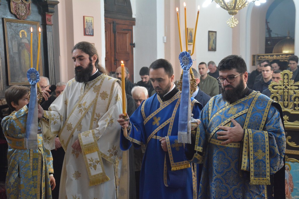 Његовом Преосвештенству су саслуживали Архијерејски намесник орашачки, протојереј-ставофор Мићо Ћирковић, Архијерејски намесник опленачки, протојереј-ставрофор Миладин Михаиловић, протонамесници Александар Миловановић и Иван Теодосић, јереји Милош Митровић и Милош Мијатовић, протођакон Иван Гашић, јерођакон Јован Прокин и ђакон Александар Бабић.