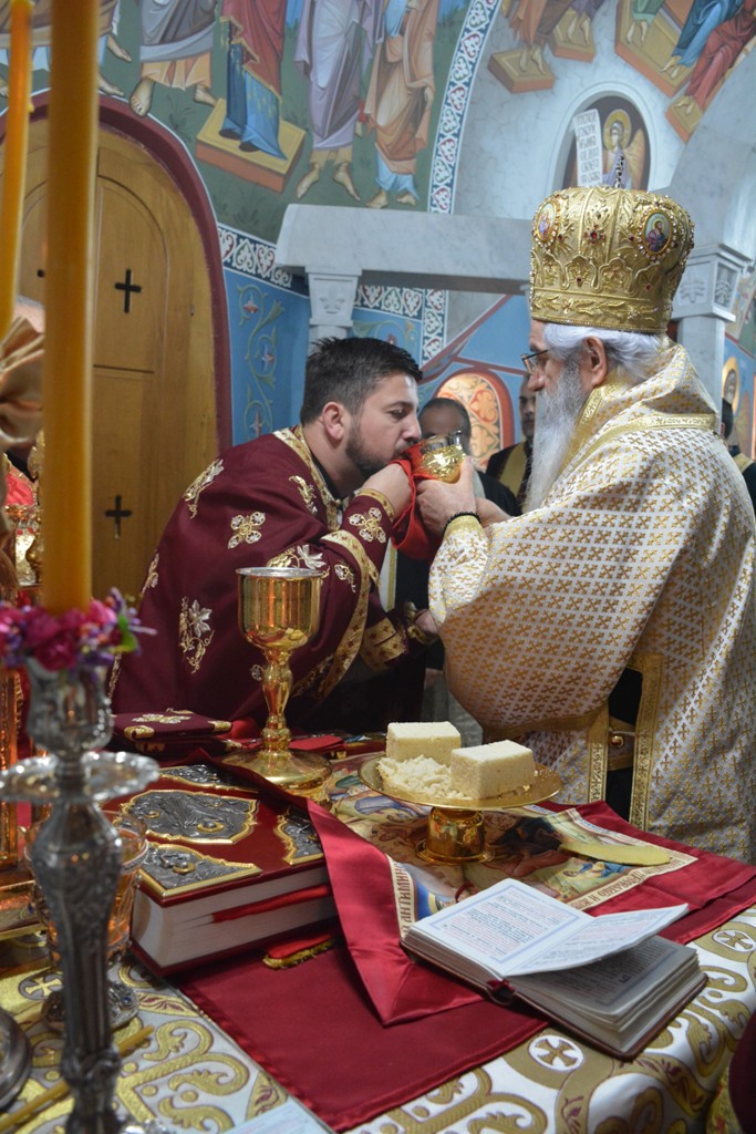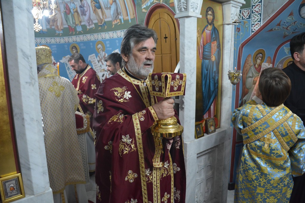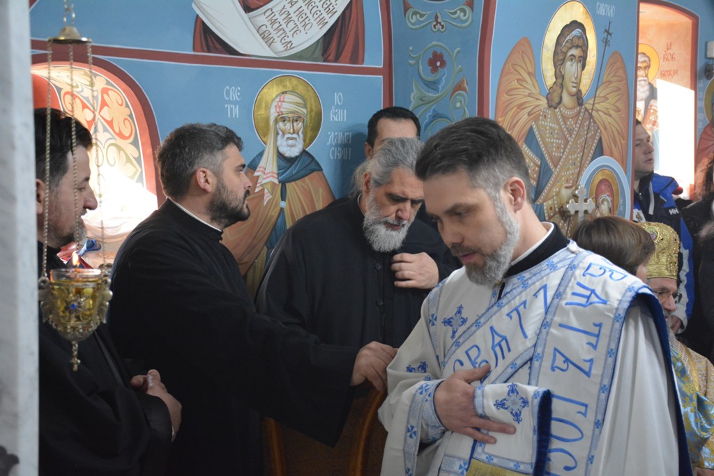 Његовом Преосвештенству саслуживали су: архијерејски намесник орашачки протојереј-ставрофор Мићо Ћирковић, архијерејски намесник опленачки протојереј-ставрофор Миладин Михаиловић, протојереј Милован Ранковић, јереј Рашко Стјепановић, ђакони Стеван Илић и Александар Бабић.