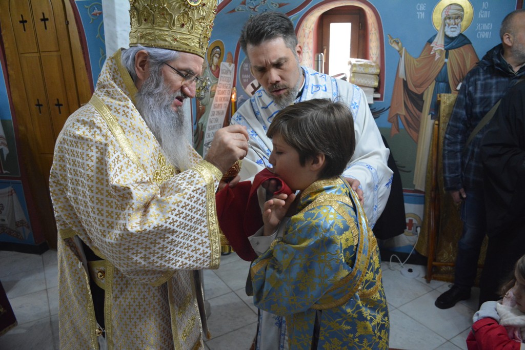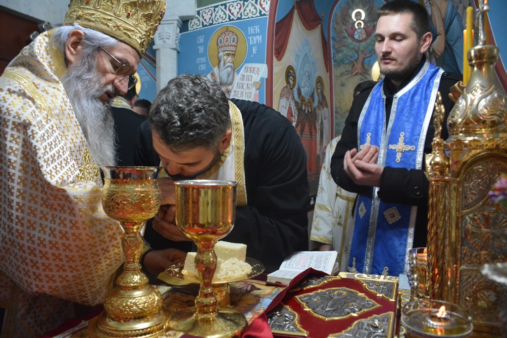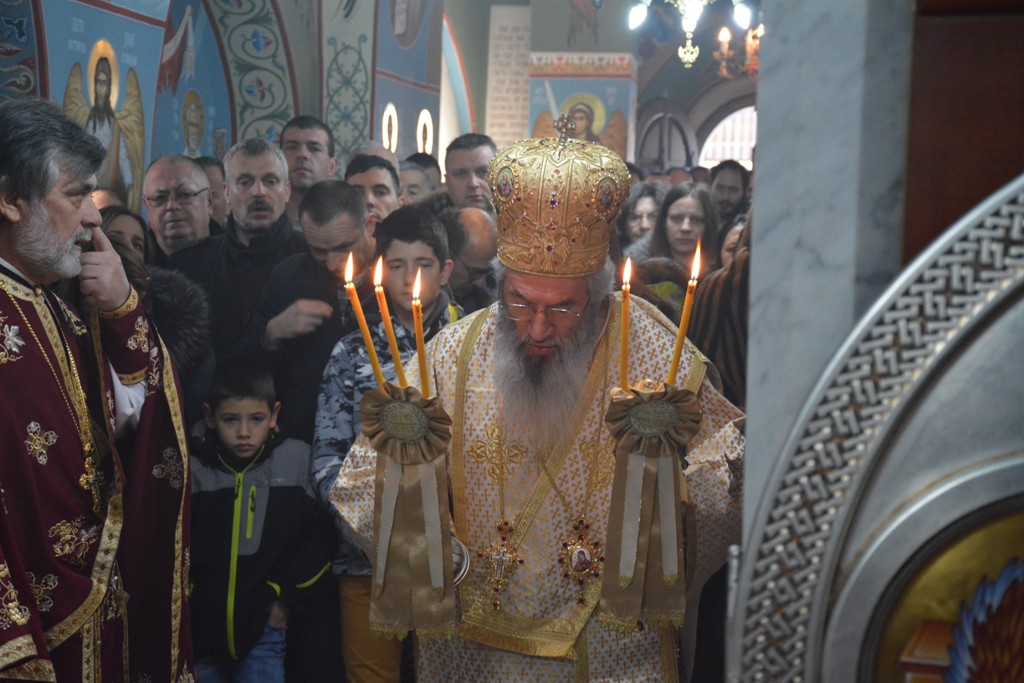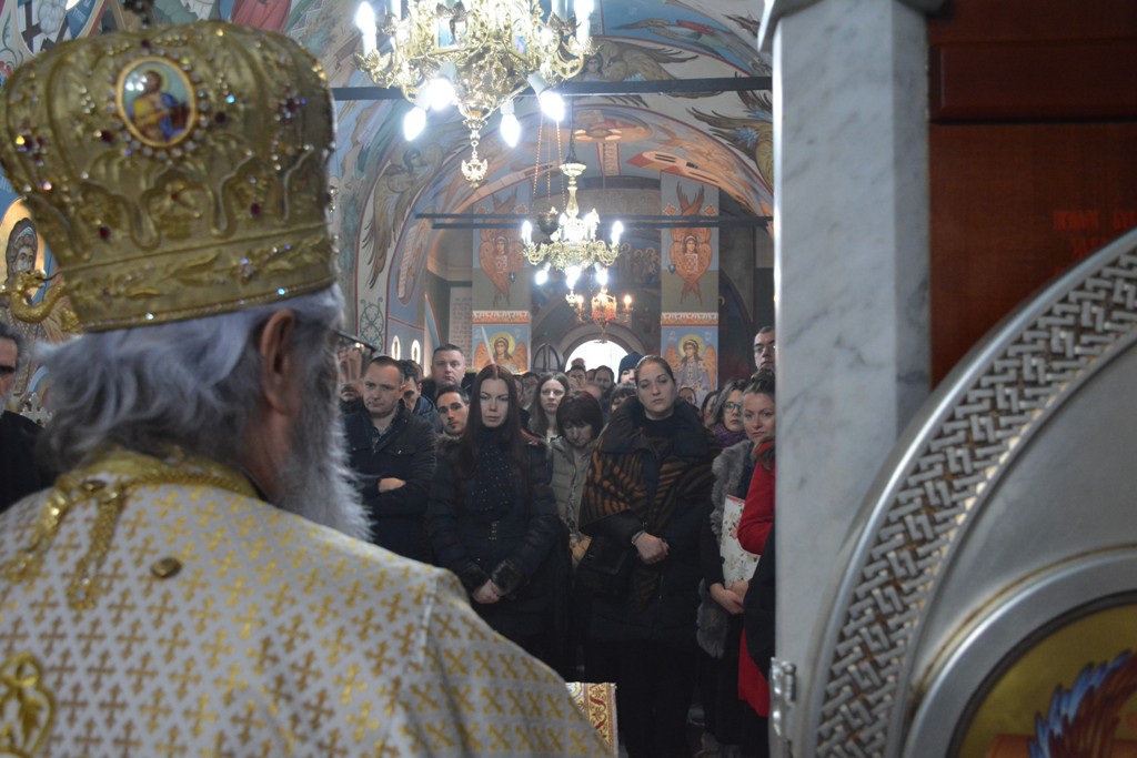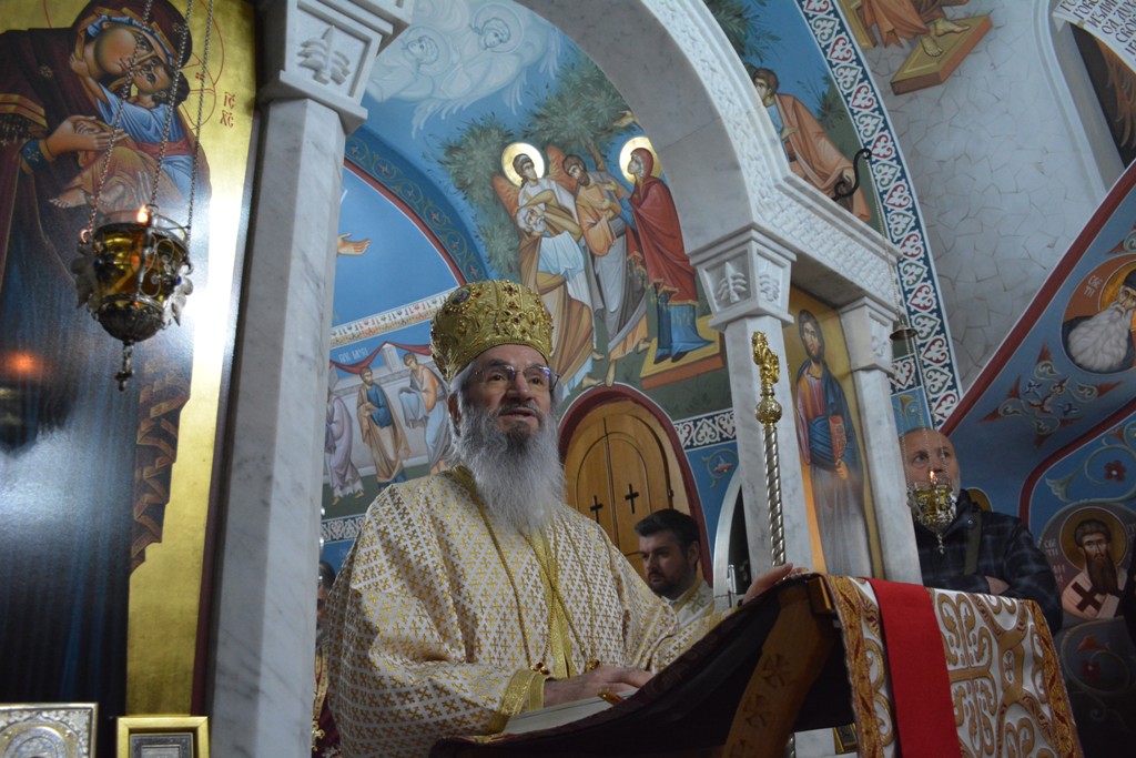 Након читања Светог Јеванђеља Епископ Јован нас је подсетио значају припремних недеља пред Велики и Часни Пост. У својој беседи се осврнуо на постојање две врсте људи у Цркви, као што нас поучава и Свето Јеванђеље о царинику и фарисеју. “Оно на шта треба да посебно обратимо пажњу јесте да постимо, али да то буде и пост душе, тј. да се уздржавамо од лошег делања и од гордости. Наша душа почиње од данас да пости”, рекао је Владика поделивши са верницима и речи светог Јустина Ћелијског који каже: “Наше тело је харфа, а душа је свирач”, чиме је желео да нам приближи важност обједињености поста. “Морамо увек имати на уму да Господ увек види и гледа наша срца. Ми смо ти који одлучујемо кога ћемо угостити у нашим срцима, да ли ће то бити Бог, или пак онај други. Господ нас подсећа својим речима да он стоји код врата нашег срца и ако отворимо он ће се у њега уселити. Овим чином се показује Божије стрпљење јер он чека човекову слободну вољу коју му је дао да он сам одлучи да ли ће Га примити у своје срце. Молитва коју произносимо Богу ако је проткана гордошћу, није молитва већ се то претвара у грех. Како молитва може да буде узвишена, исто тако може бити и лажна. Другим људима не требамо судити, да не би и нама било суђено, јер каквим судом судимо, таквим судом ће нам се и судити”, истакао је Епископ Јован.