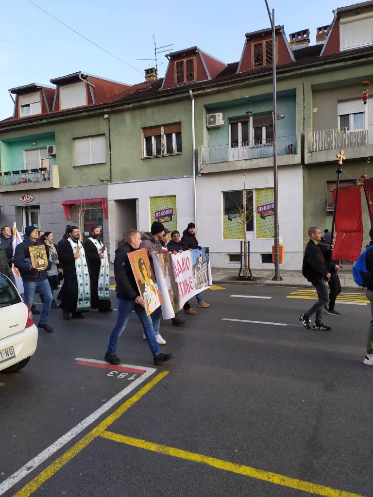Из Аранђеловца се у раним јутарњим сатима за Орашац упутила литија сачињена од свештенства и верног народа, која је у молитвеној атмосфери са црквеним барјацима и иконама стигла у Орашац пред сами почетак свете архијерејске Литургије.