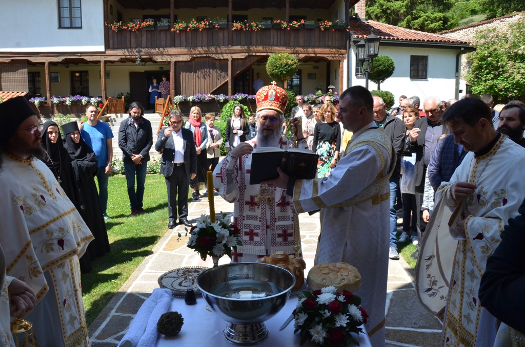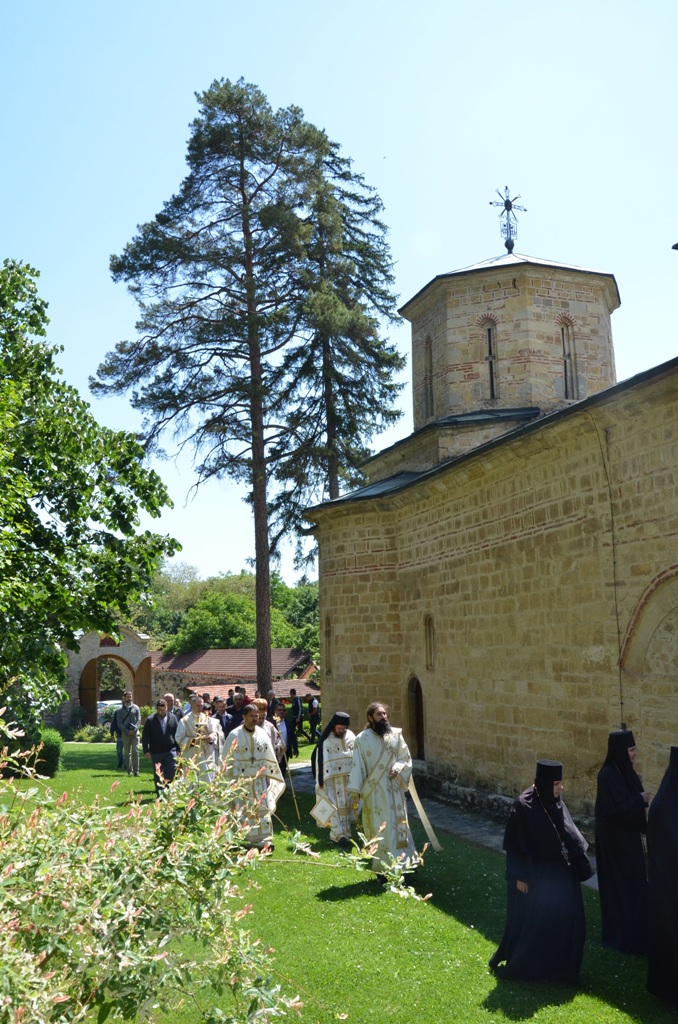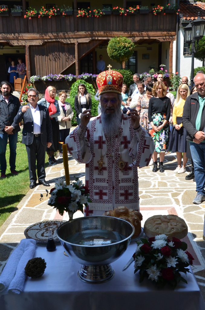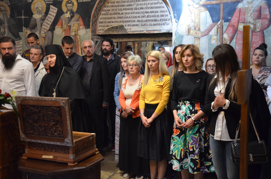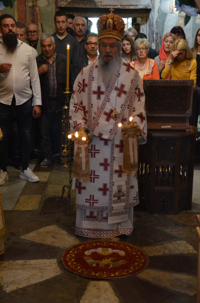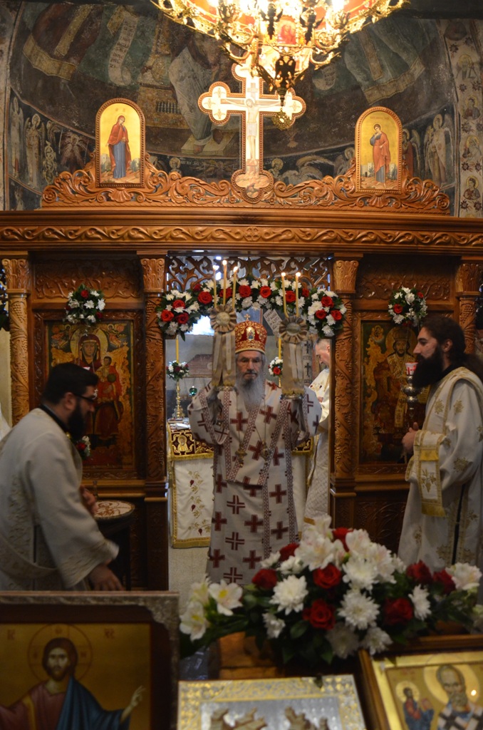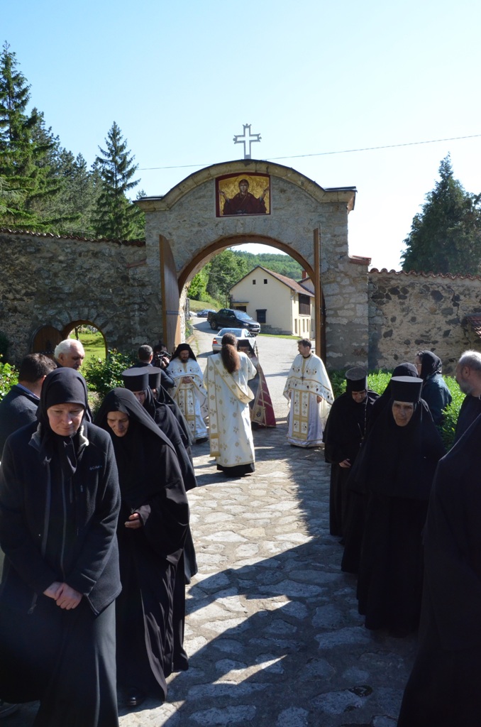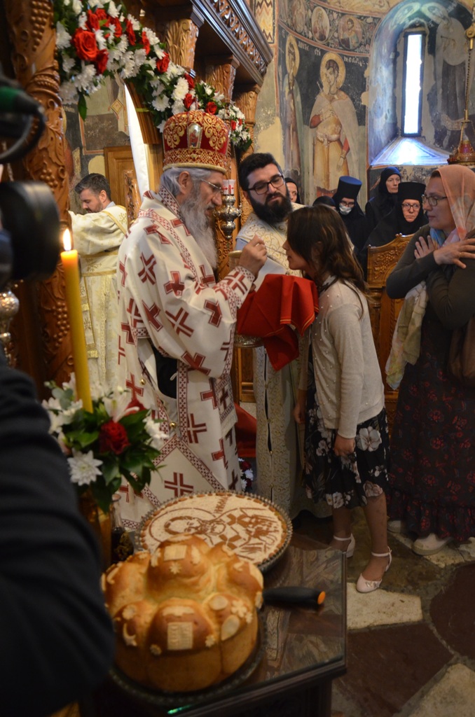После прочитаног Јевађелског зачала, Владика се обратио надахнутом беседом сабраним верницима подсећајући их да се и даље налазимо у попразнинству Васкрсења Господњег, који је највећи и најрадоснији празник, а потврда томе је што је и после празновања Васкрса, свака недеља је посвећена Васкрсу, то јест сваке недеље празнујемо малу Пасху. Још је указао на превелику љубав Божију према људском роду, која се потврђује кроз Његово оваплоћење, трпљење, страдање и васкрсење. А светитељ кога слави ова света обитељ у којој смо сабрани управо слави сведока Васкрсења Христовога. Те сваки хришћанин који верује у Васкрсење Христово, и у своје васкрсење, који верује у живот Будећег века и живи распетим и Васкрслим Христом јесте и он сведок Ваксрсења Христовог.