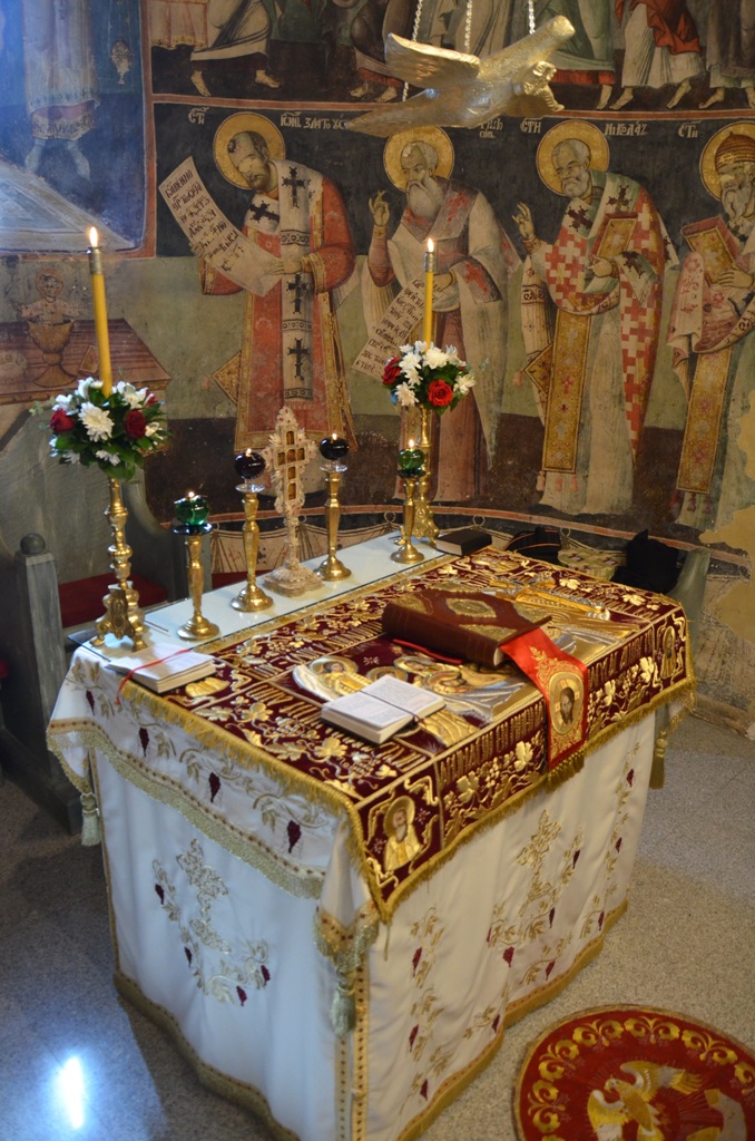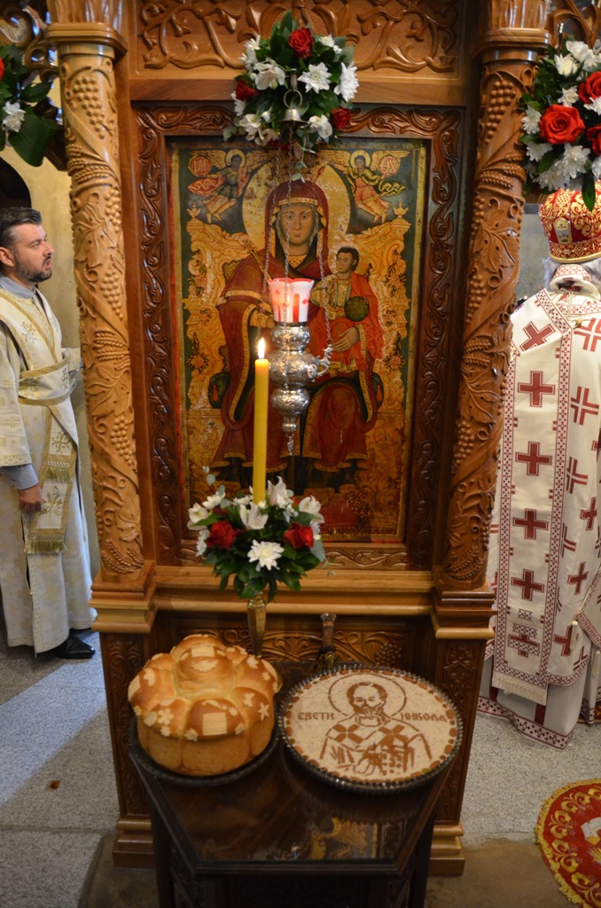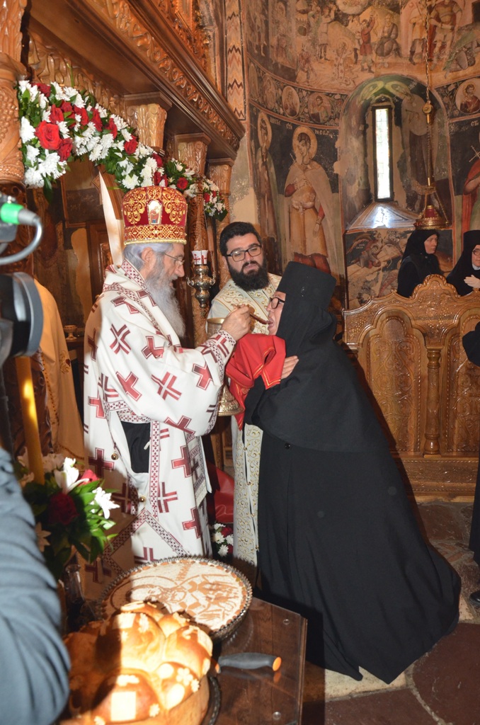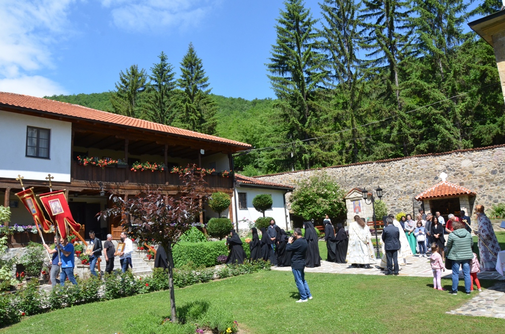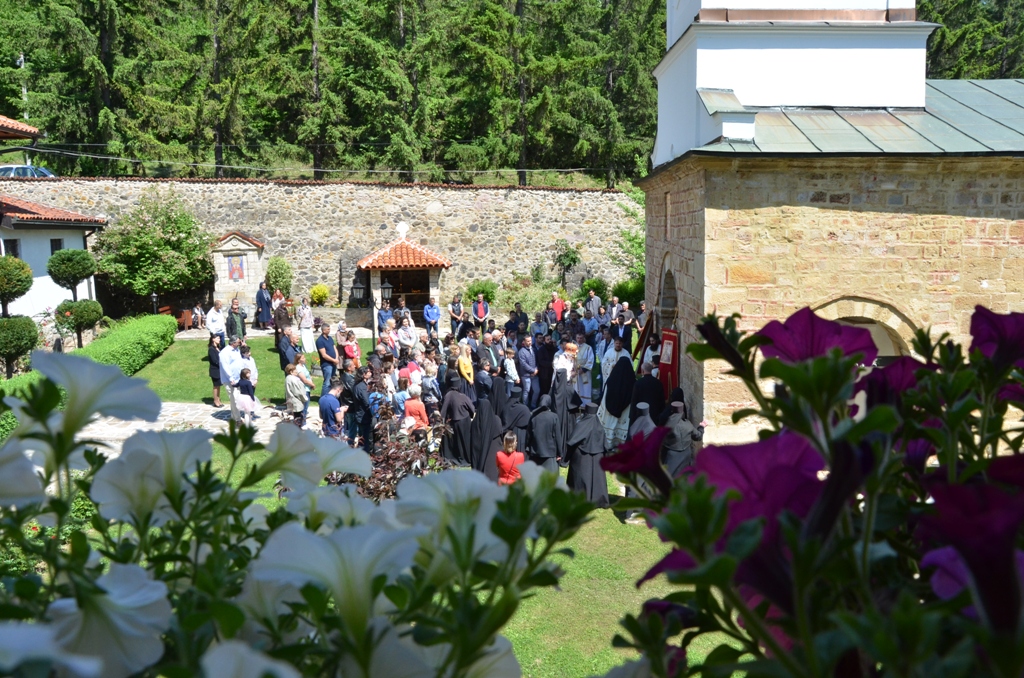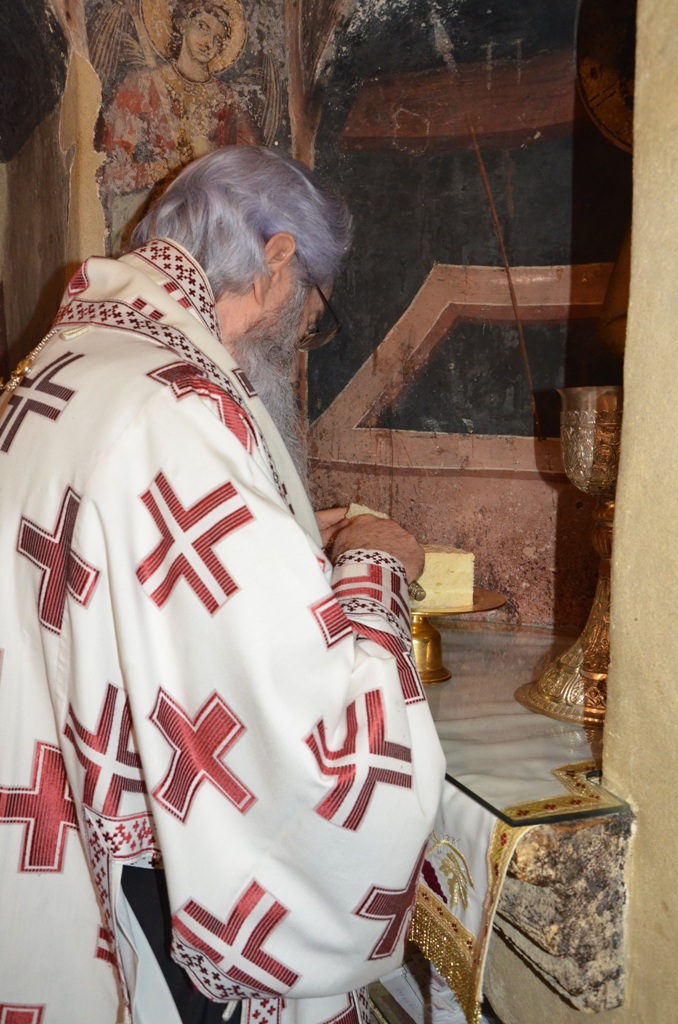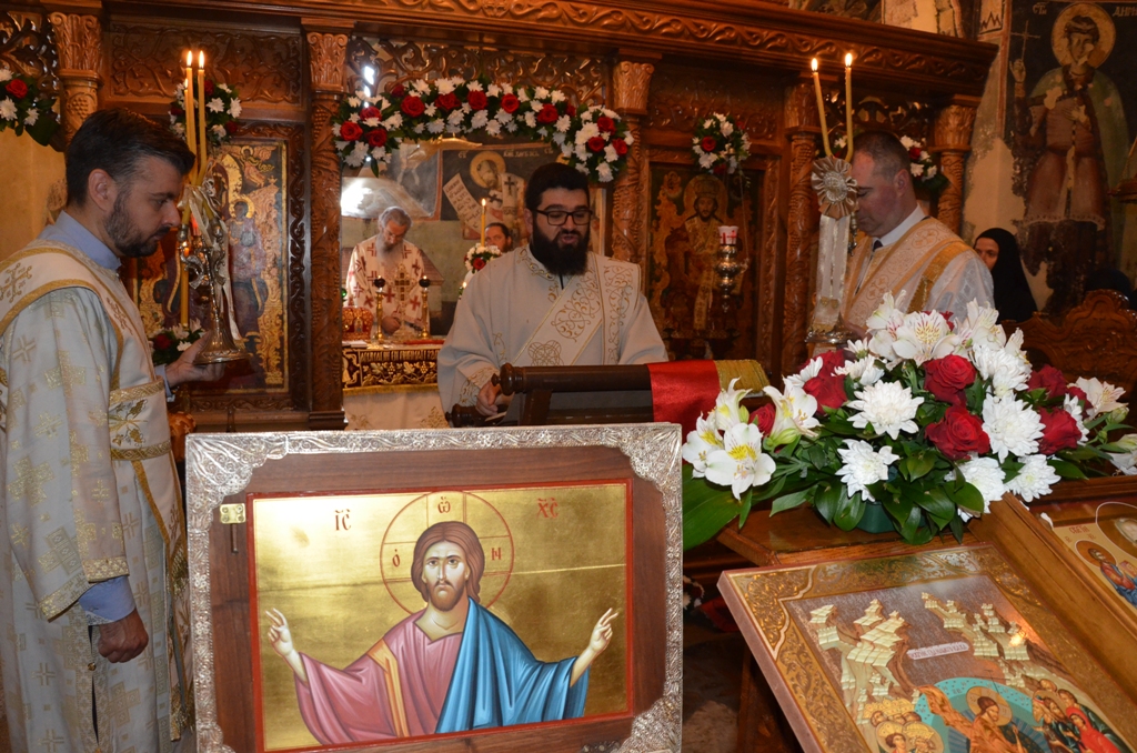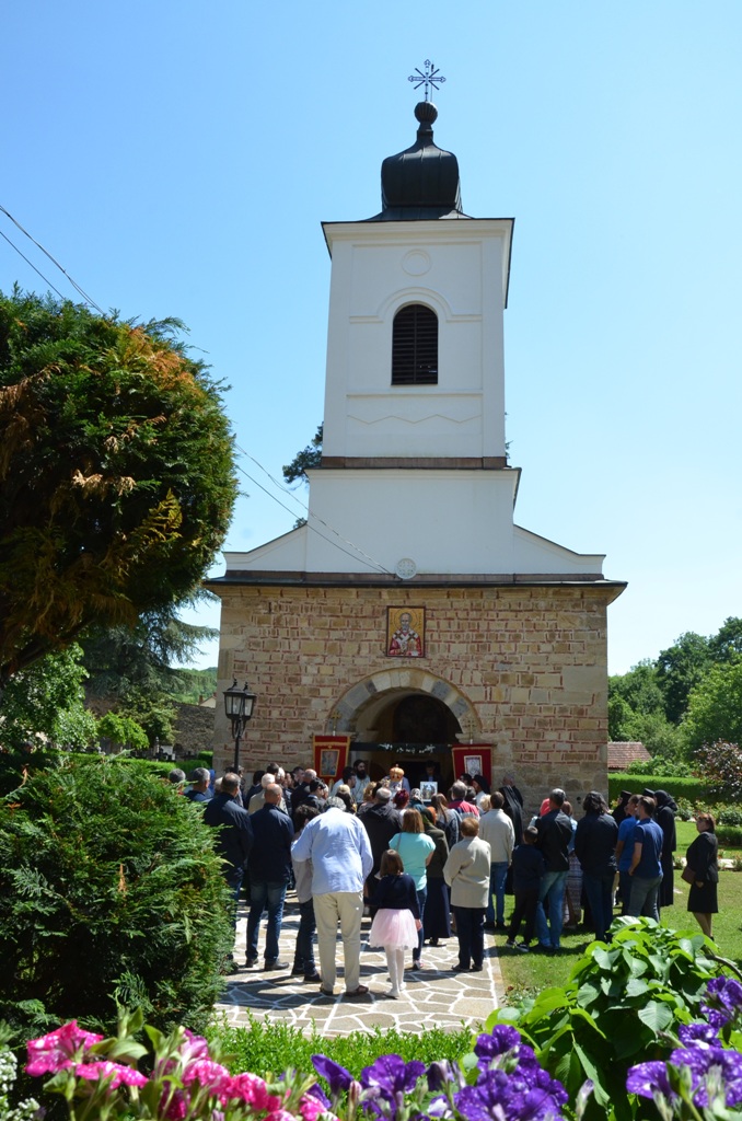После прочитаног Јевађелског зачала, Владика се обратио надахнутом беседом сабраним верницима подсећајући их да се и даље налазимо у попразнинству Васкрсења Господњег, који је највећи и најрадоснији празник, а потврда томе је што је и после празновања Васкрса, свака недеља је посвећена Васкрсу, то јест сваке недеље празнујемо малу Пасху. Још је указао на превелику љубав Божију према људском роду, која се потврђује кроз Његово оваплоћење, трпљење, страдање и васкрсење. А светитељ кога слави ова света обитељ у којој смо сабрани управо слави сведока Васкрсења Христовога. Те сваки хришћанин који верује у Васкрсење Христово, и у своје васкрсење, који верује у живот Будећег века и живи распетим и Васкрслим Христом јесте и он сведок Ваксрсења Христовог.
