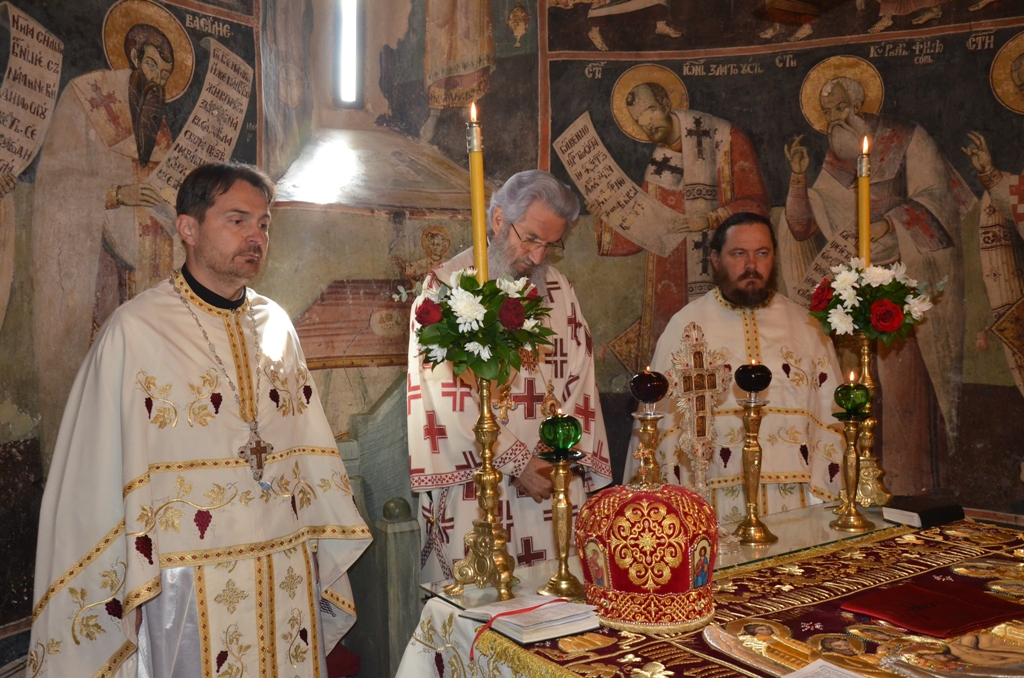 Епископу су саслуживали јеромонах Доситеј (Радивојевић) игуман манастира Ћелије колубарске, протојереј-ставрофор Рајко Стефановић архијерејски намесник крагујевачки, протођакон Иван Гашић и јерођакон Јован (Прокин), уз прислуживање чтечева Марка Нешића и др Марка Петровића.