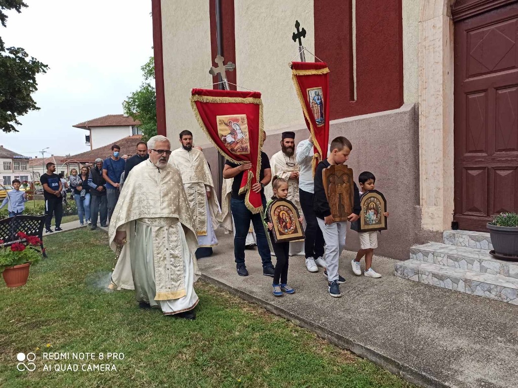 Након прочитаног јеванђелског зачала надахнутом беседом се верном народу обратио протонамесник Дејан Шишковић. У беседи је отац Дејан истакао важност светих апостола у цркви као и њихов допринос ширењу Христове науке и указао на то да су они поставили темељ вере који ми морамо да наставимо да зидамо нашом вером и угледањем на светитеље Цркве Божије. Оно што је посебно нагласио отац Дејан јесте да се једино у цркви налази спасење и живот вечни те да ми сваки пут савршавајући свету Литургију имамо доживљај Царства Небеског.