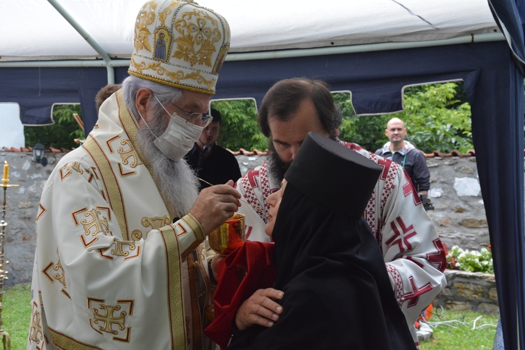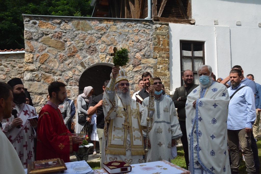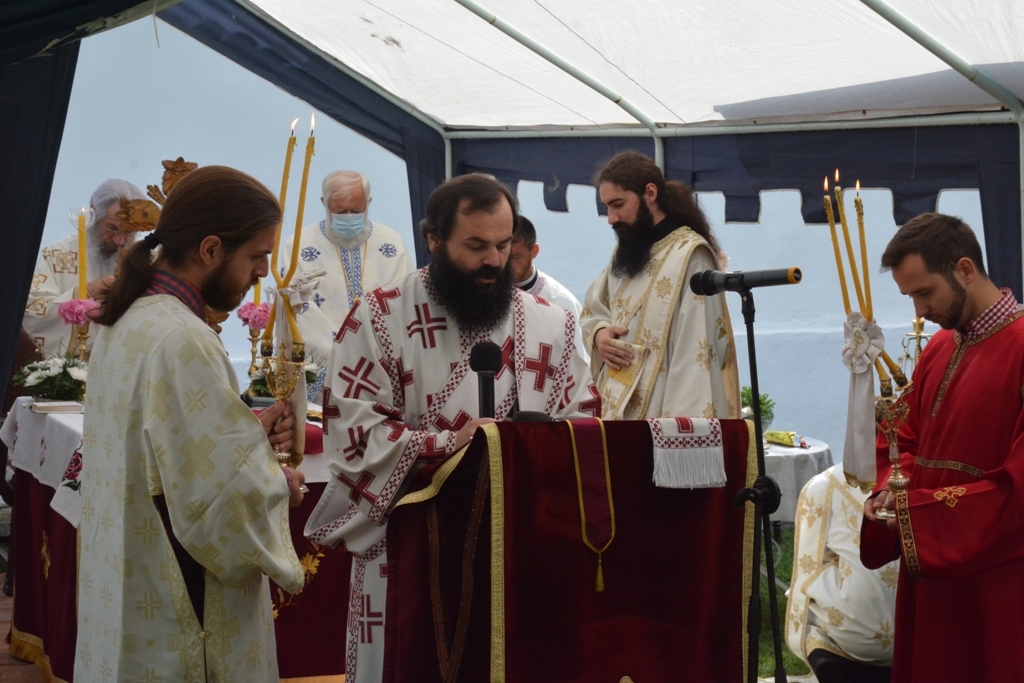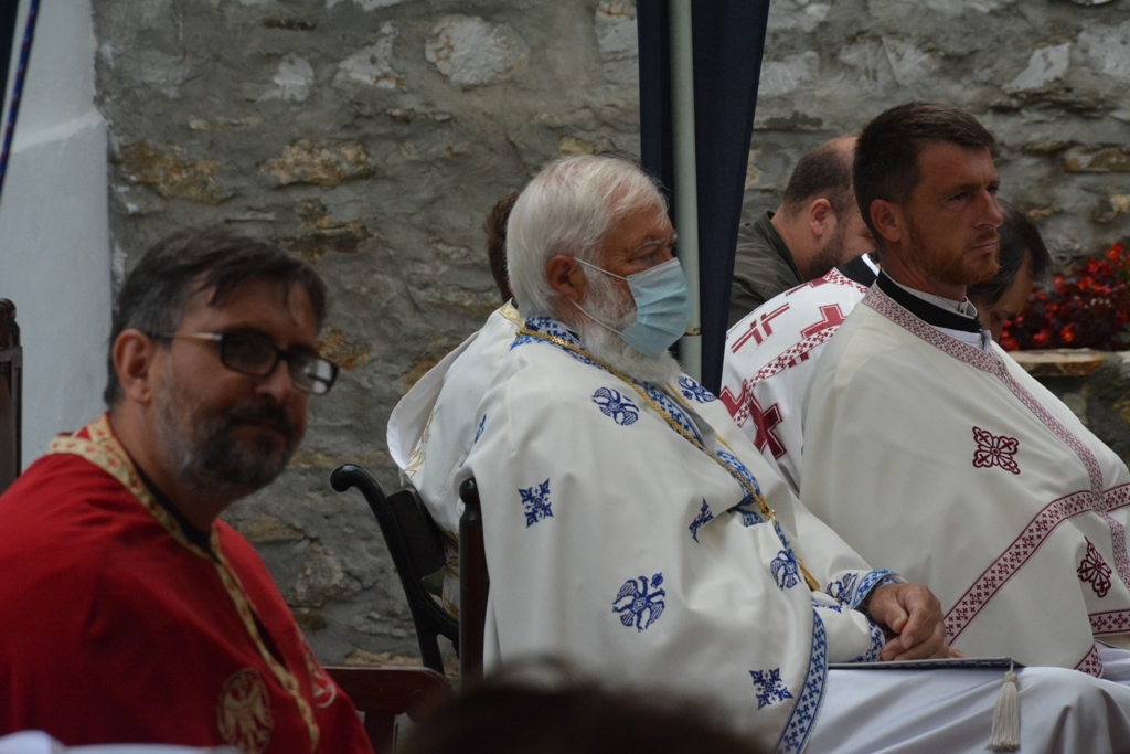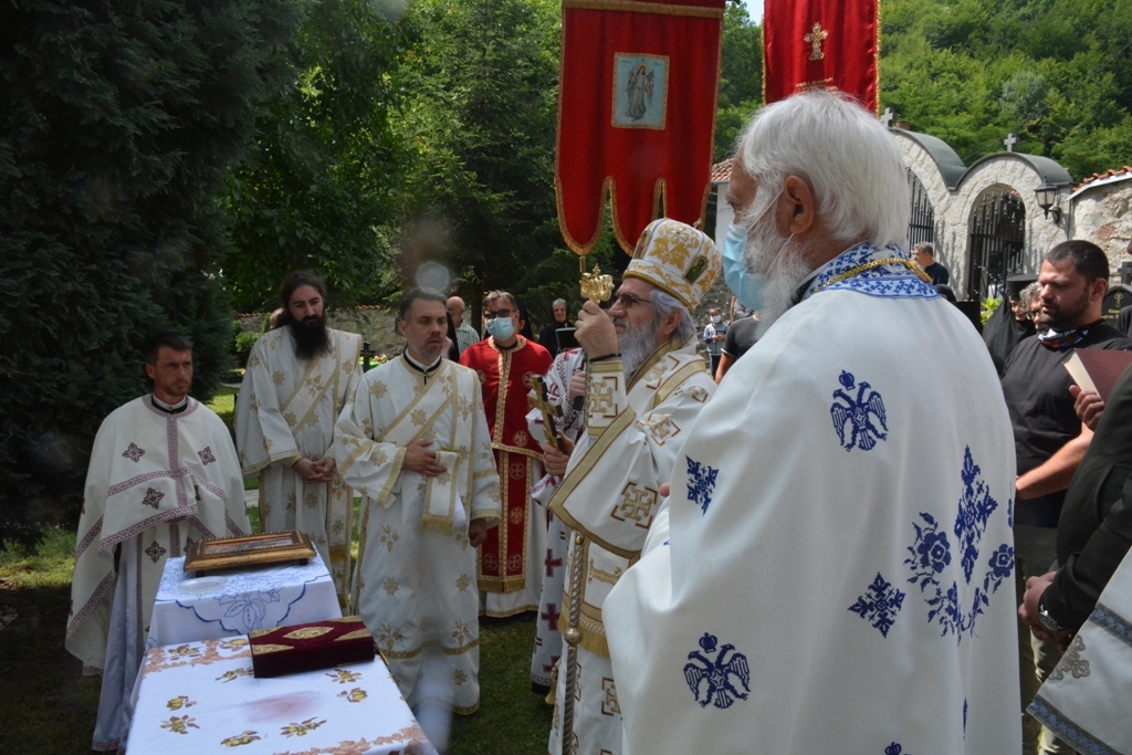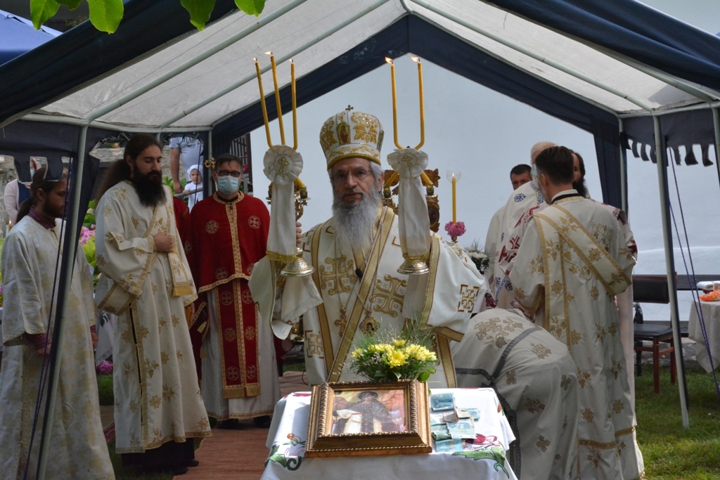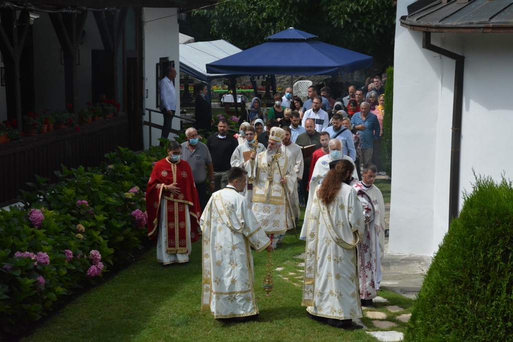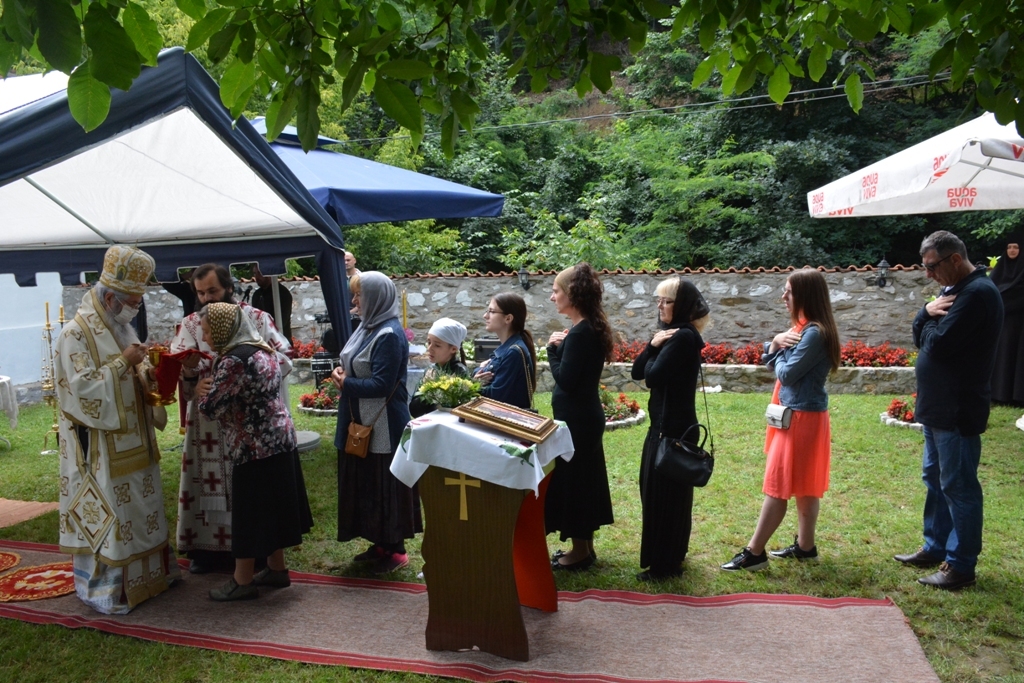 Након прочитаног јеванђелског зачала беседио је владика Јован. На самом почетку Преосвећени владика честитао је храмовну славу настојатељици манастира монахињи Евгенији и свима који су данас дошли у ову свету обитељ, а затим је подсетио све на важност послушности у Цркви Божијој: “Браћо и сестре, ми данас треба да затражимо помоћ од Анђела Божијих. Они су нам потребни да би нас чували, водили и руководили. А кога воде и руководе Свети Анђели? Оне који слушају. Зато у данашњем Јеванђељу Господ каже: “Ко вас слуша Мене слуша, а ко слуша Мене, слуша Онога који је мене послао.” У овој реченици сажет је сав наш хришћански живот. Ако слушамо, бићемо спасени”. Затим је владика говорио о важности чврсте и праве вере. “Шта је вера? Свети Апостол Павле каже: “Вера је извесност онога чему се надамо”. Вера је и доказивање Онога кога не видимо, а што више доказујемо својим животом Онога кога не видимо, ми Га све више видимо. Вера је и одговор човека на потребу да буде спасен. Господ у Јеванђељу каже: “Ко верује тај ће се спасити”. Вера је стална веза човека са Богом и та веза ће учинити да се у дубини нашег срца и сретнемо са Богом”, закључио је на крају владика Јован.
