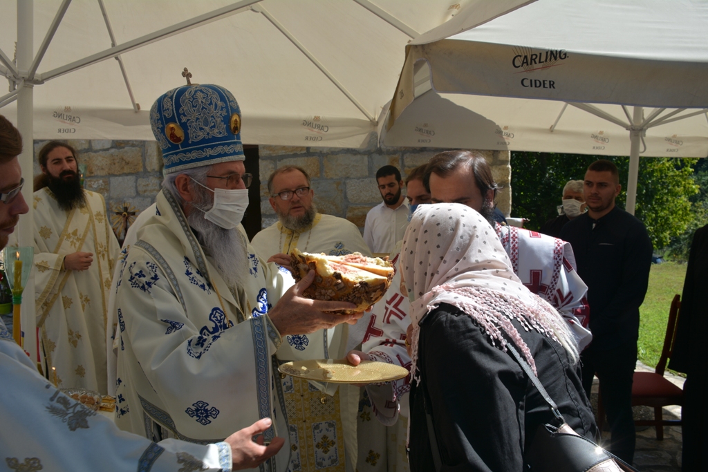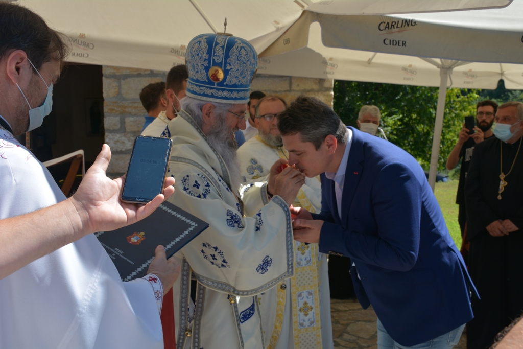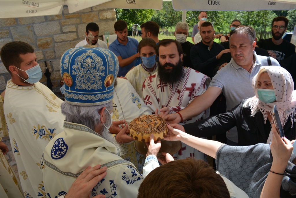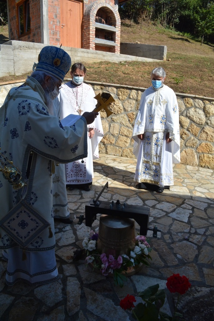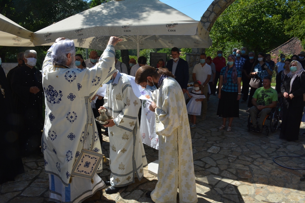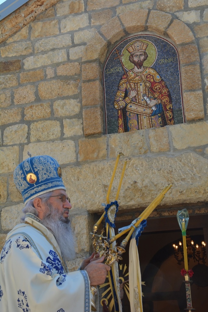 Након Свете Литургије и резања славског колача, Његово Преосвештенство Епископ шумадијски Г. Јован, заблагодарио је Господу који нас је све сабрао у овоме Светоме храму, и додао да се данас радује и Свети деспот Стефан што је овај храм који је васкрсао после више стотина година, храм који је био толико дуго у земљи, поново угледао небо, угледао људе, и што се у њему поново врши Света Литургија. Благодарећи Господу и Светом деспоту Стефану заблагодаримо и овде пристуним људима који су себе уткали у заједницу Цркве Христове и Цркве Божије у Шумадији, поручио је Епископ Јован.
