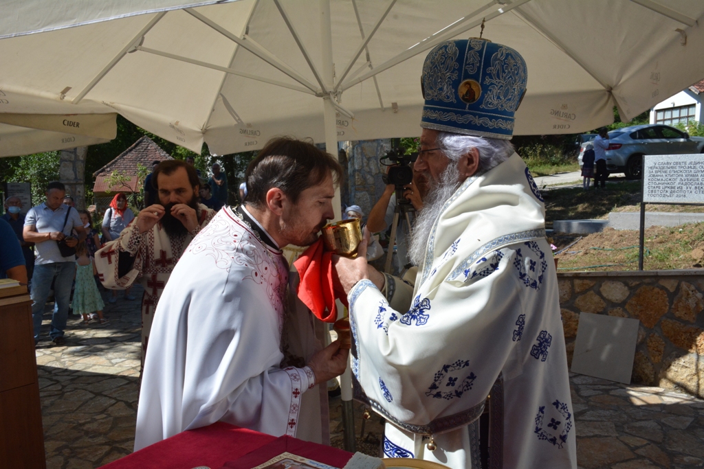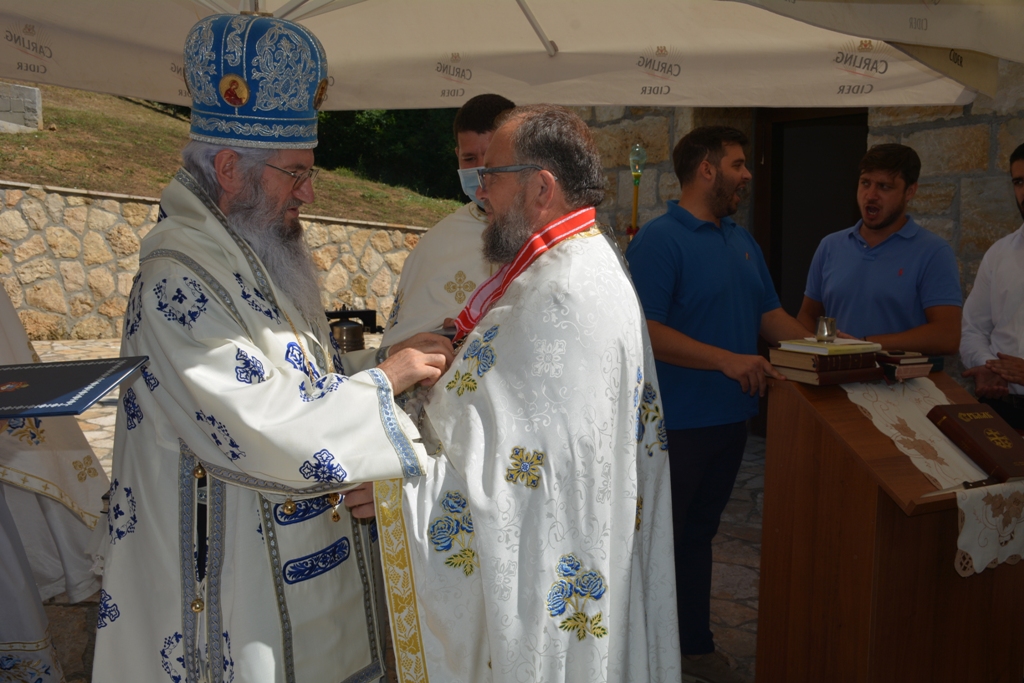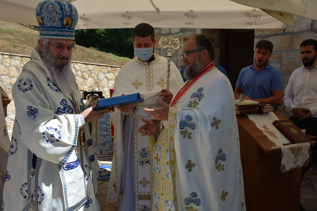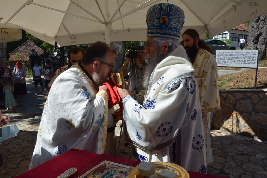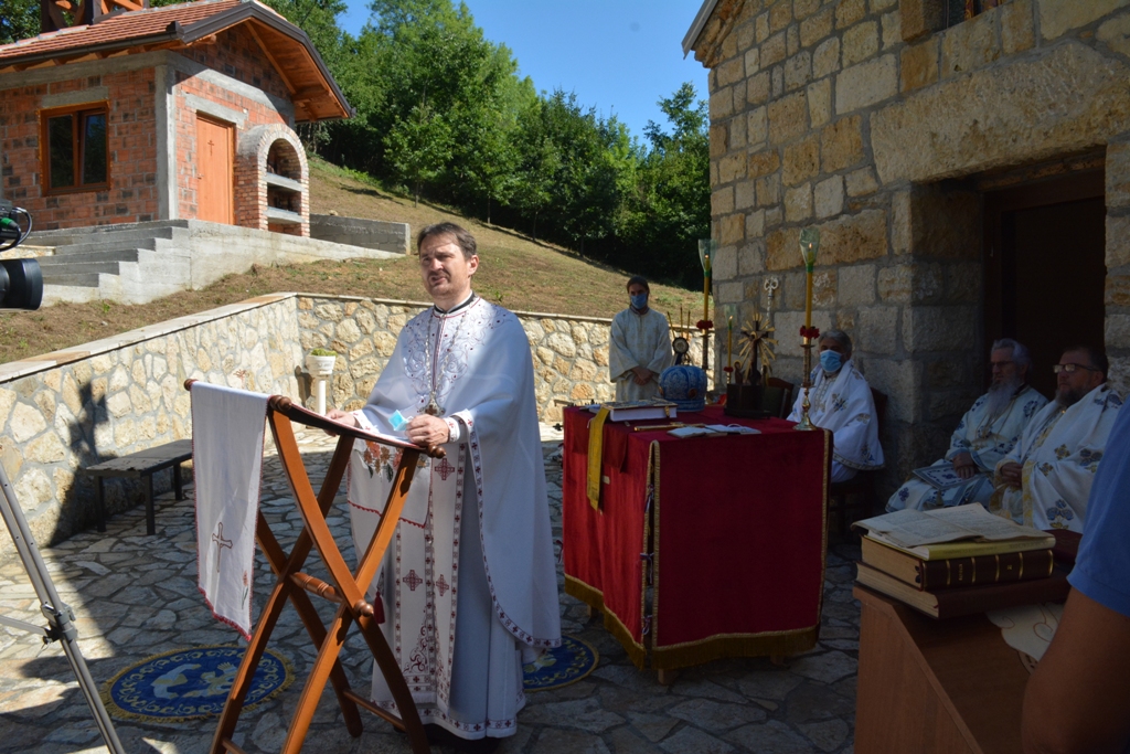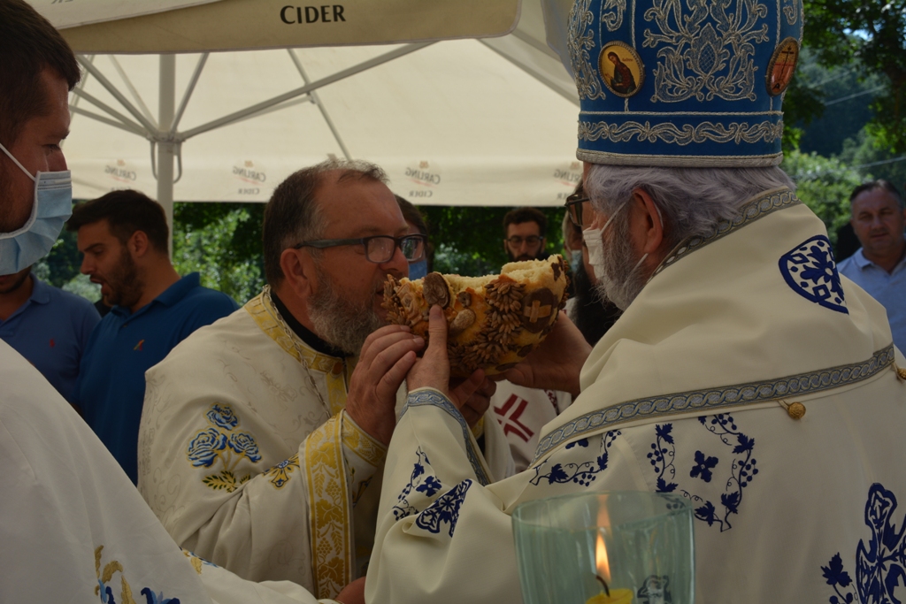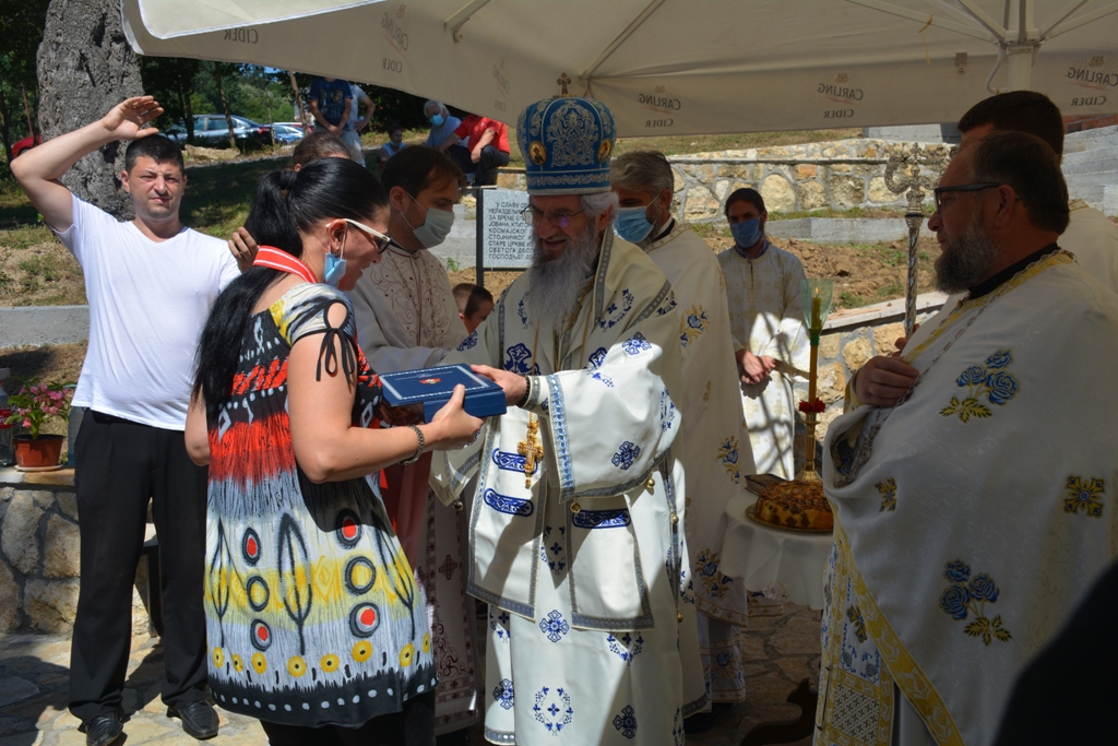Након Свете Литургије и резања славског колача, Његово Преосвештенство Епископ шумадијски Г. Јован, заблагодарио је Господу који нас је све сабрао у овоме Светоме храму, и додао да се данас радује и Свети деспот Стефан што је овај храм који је васкрсао после више стотина година, храм који је био толико дуго у земљи, поново угледао небо, угледао људе, и што се у њему поново врши Света Литургија. Благодарећи Господу и Светом деспоту Стефану заблагодаримо и овде пристуним људима који су себе уткали у заједницу Цркве Христове и Цркве Божије у Шумадији, поручио је Епископ Јован.