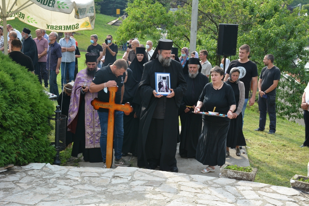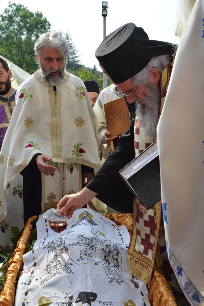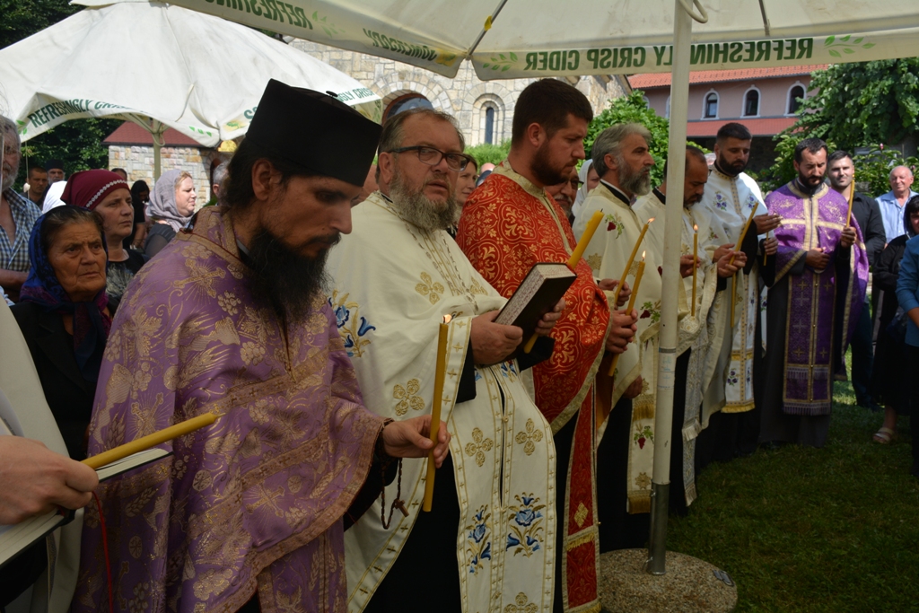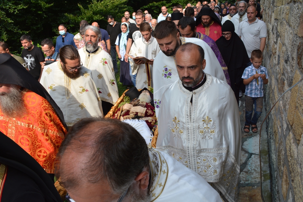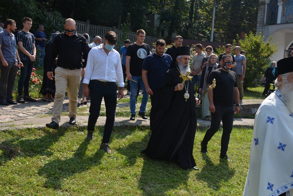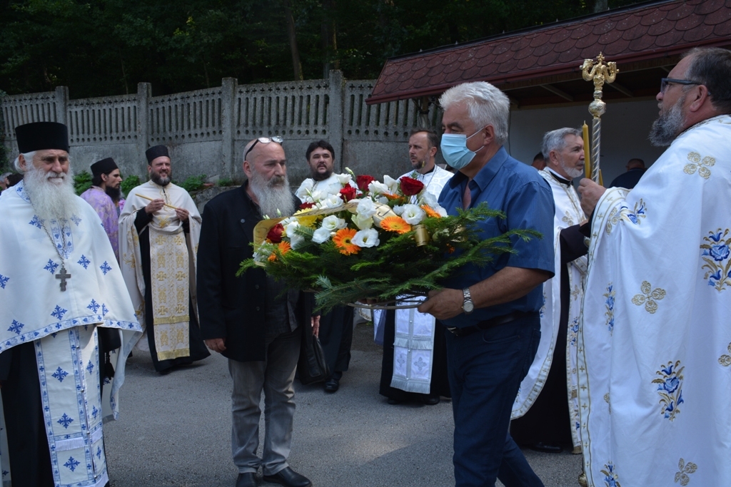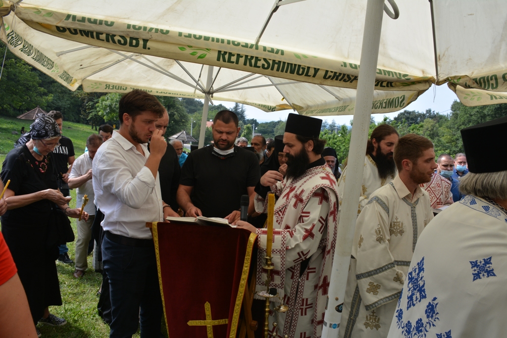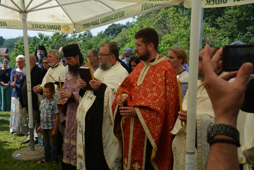 Началствовао је јеромонах Петар (Драгојловић) игуман манастира Пиносава, а саслуживали су јеромонах Дионисије настојатељ манастира Св. Петке у Сибници, свештеници Горан Лукић и Никола Симић и јерођакон Јован (Прокин) и ђакон Филип Јовановић, рекао је за Радио "Слово љубве" свештеник Марко Стевановић парох поповићки.