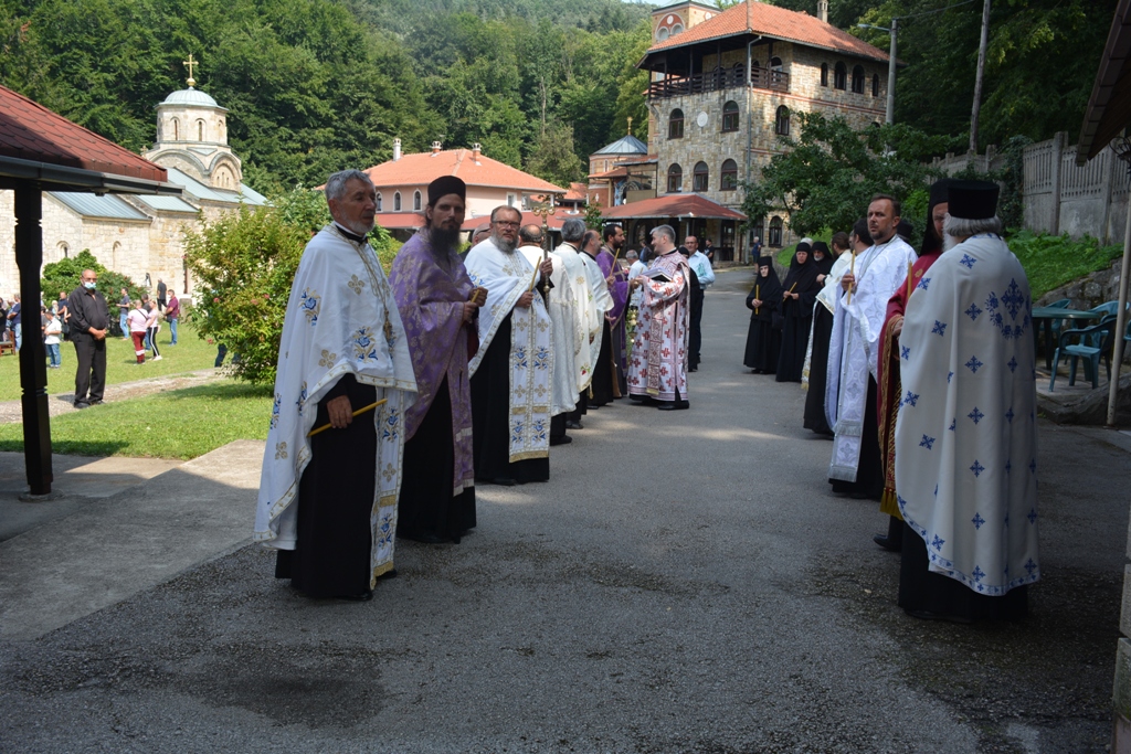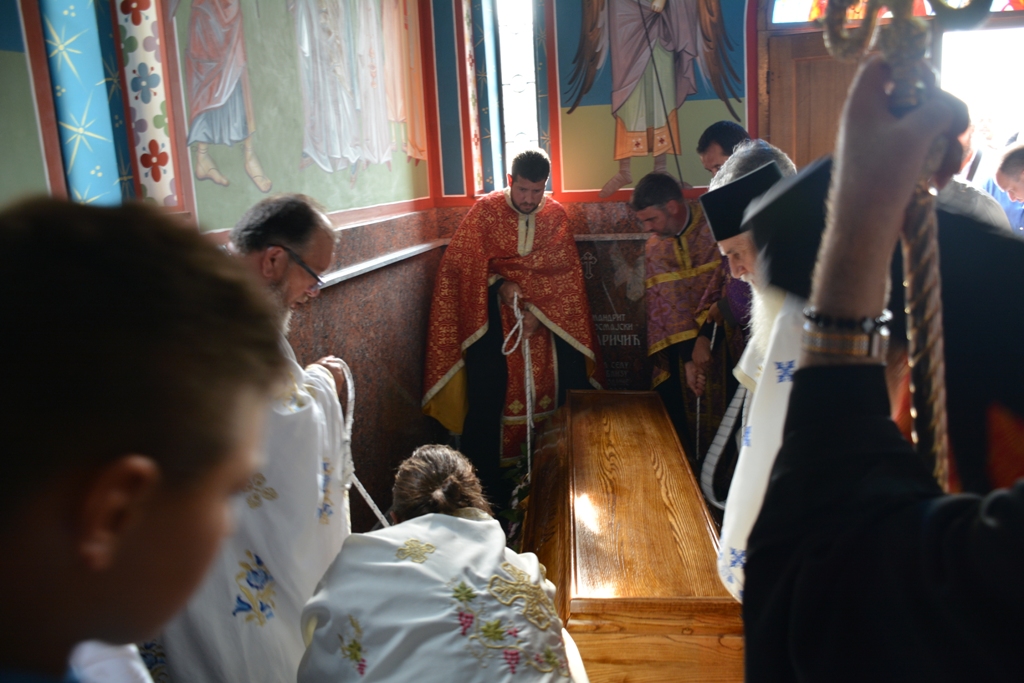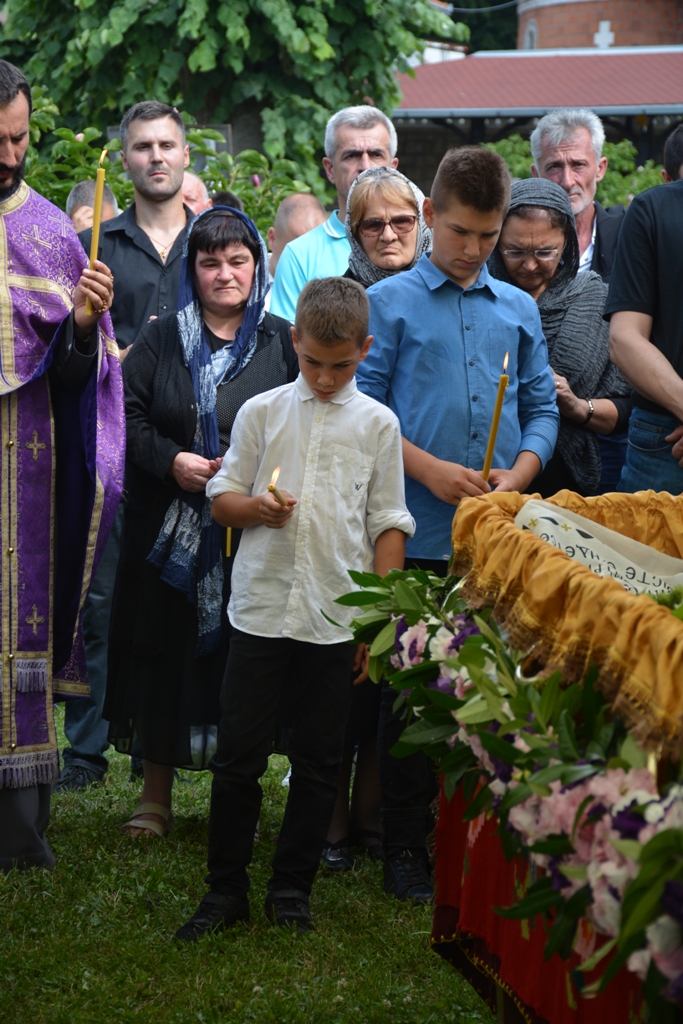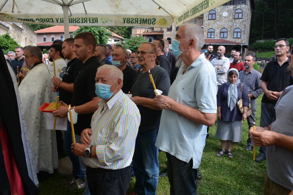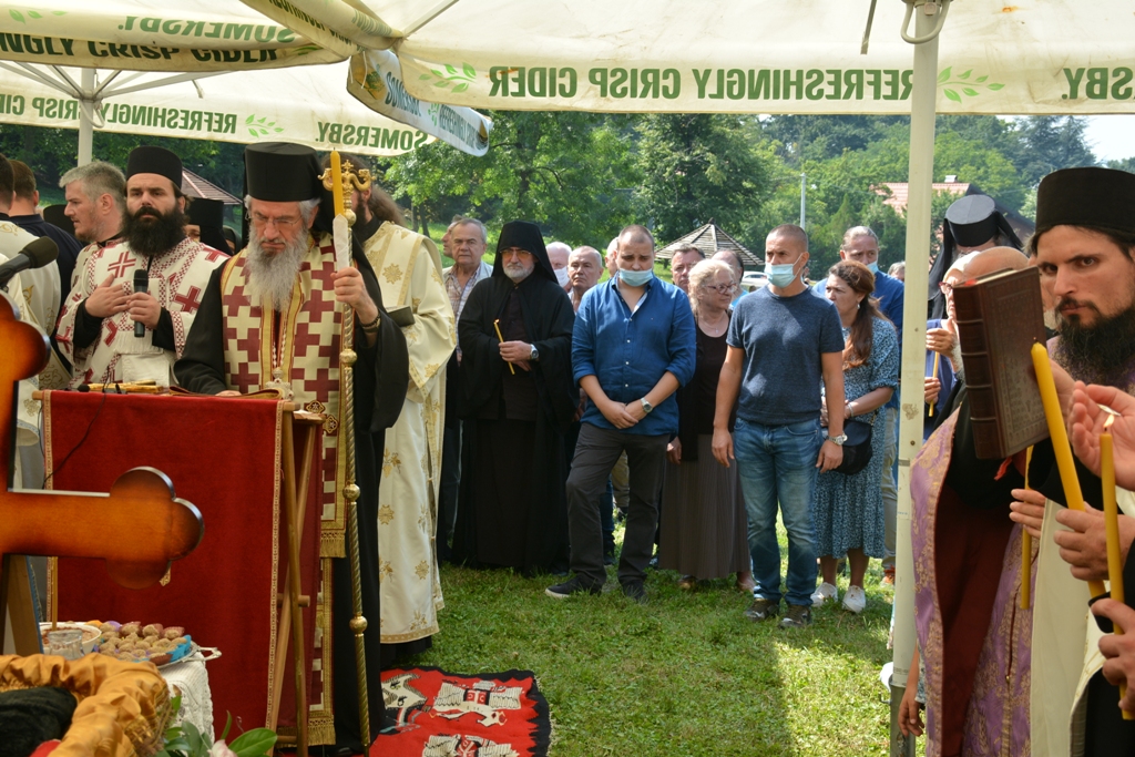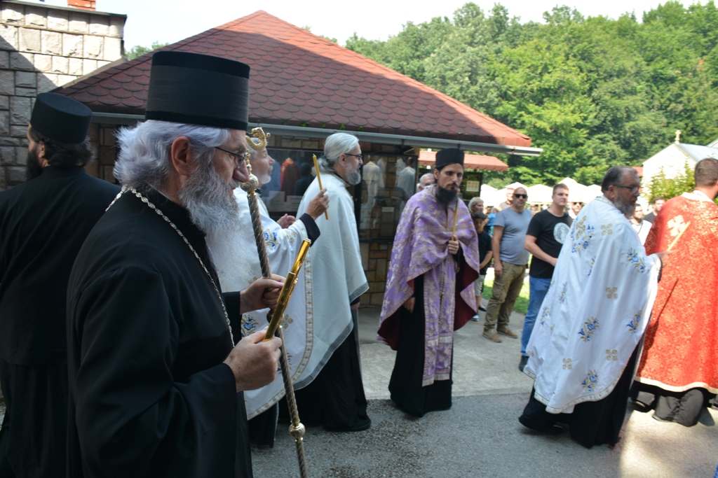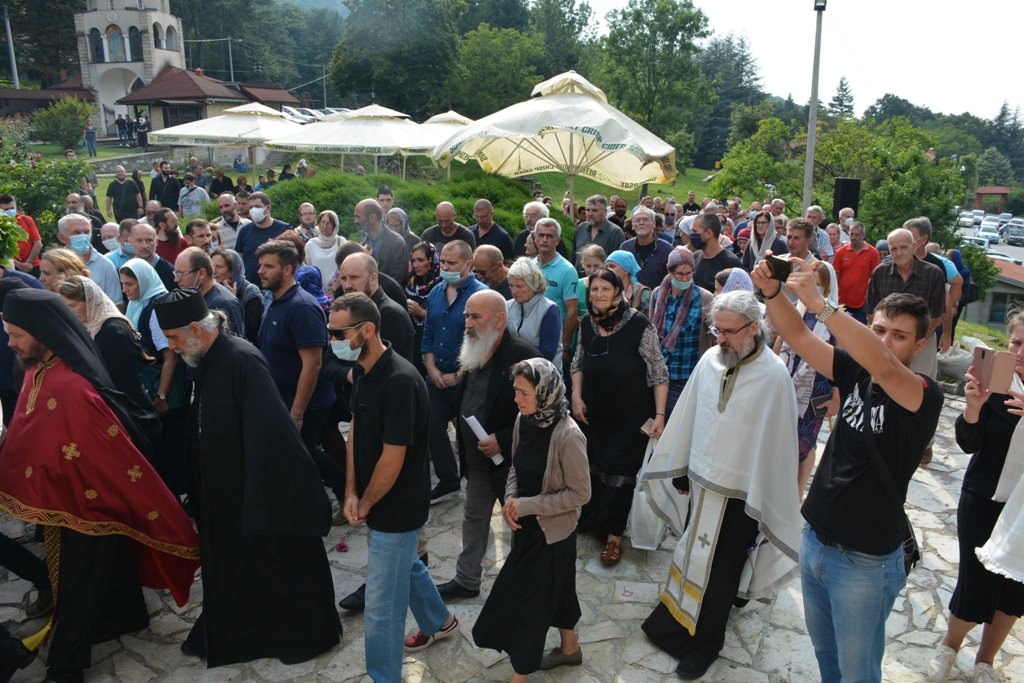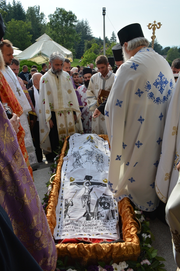 Началствовао је јеромонах Петар (Драгојловић) игуман манастира Пиносава, а саслуживали су јеромонах Дионисије настојатељ манастира Св. Петке у Сибници, свештеници Горан Лукић и Никола Симић и јерођакон Јован (Прокин) и ђакон Филип Јовановић, рекао је за Радио "Слово љубве" свештеник Марко Стевановић парох поповићки.