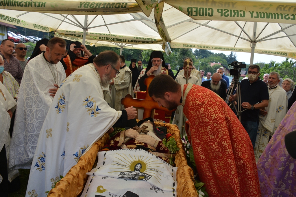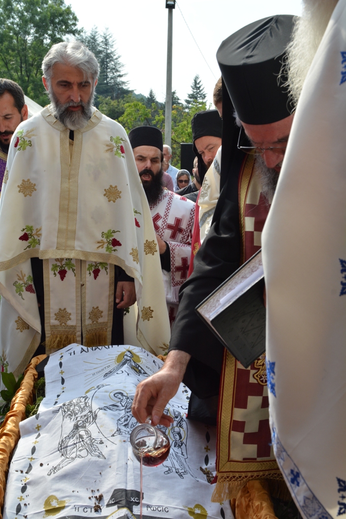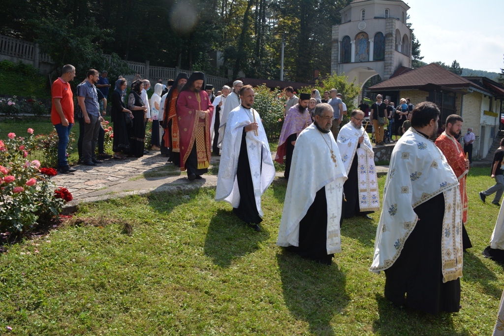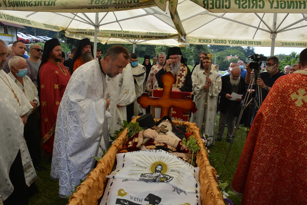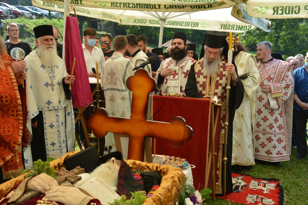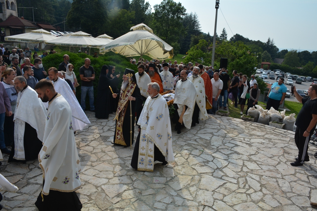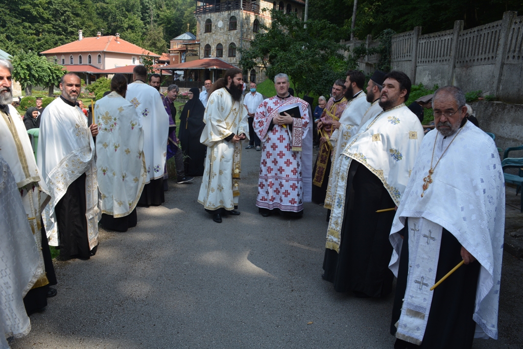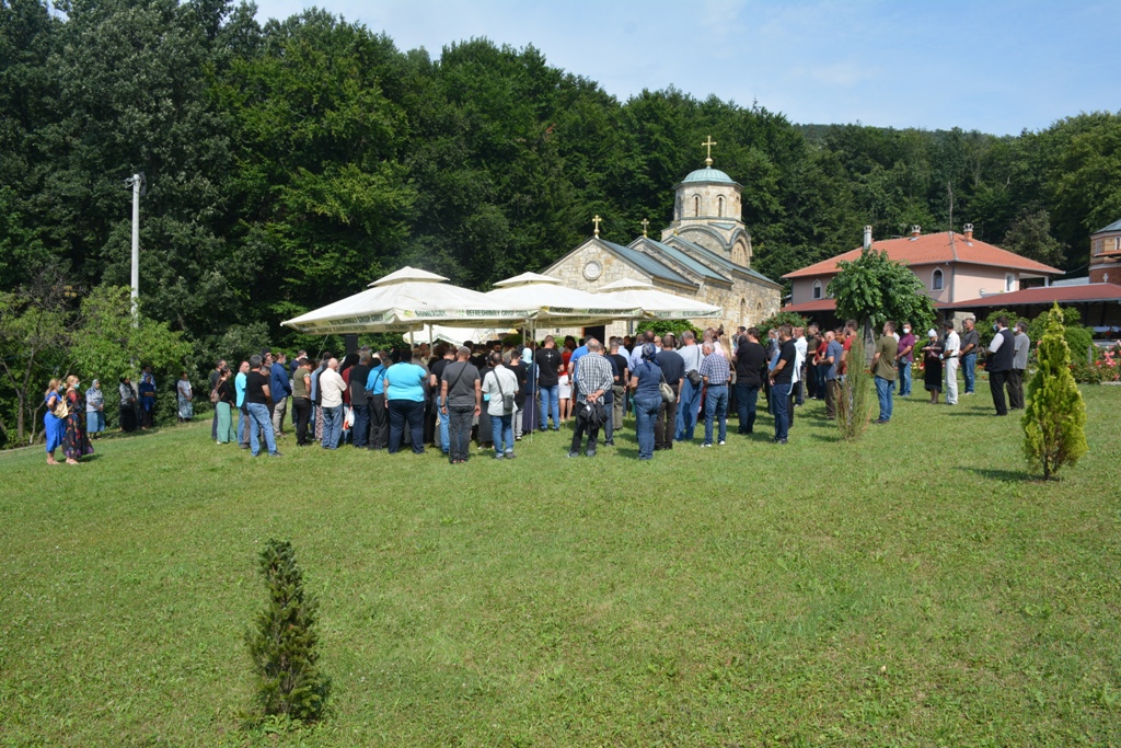 Началствовао је јеромонах Петар (Драгојловић) игуман манастира Пиносава, а саслуживали су јеромонах Дионисије настојатељ манастира Св. Петке у Сибници, свештеници Горан Лукић и Никола Симић и јерођакон Јован (Прокин) и ђакон Филип Јовановић, рекао је за Радио "Слово љубве" свештеник Марко Стевановић парох поповићки.