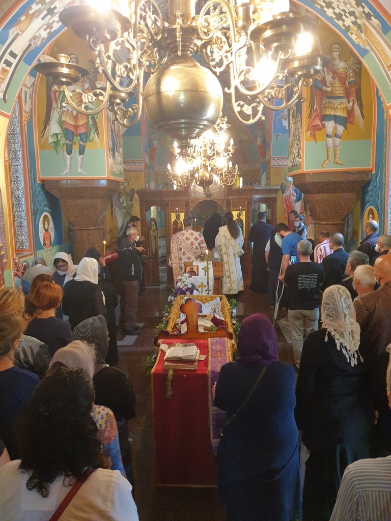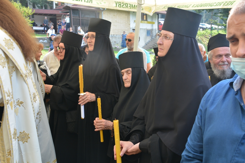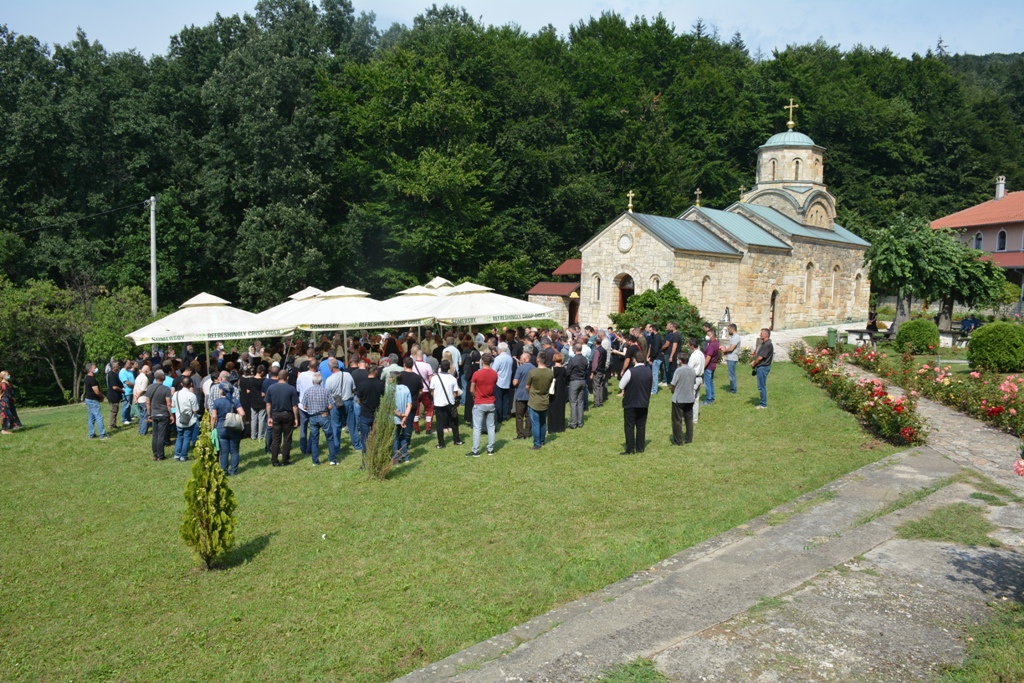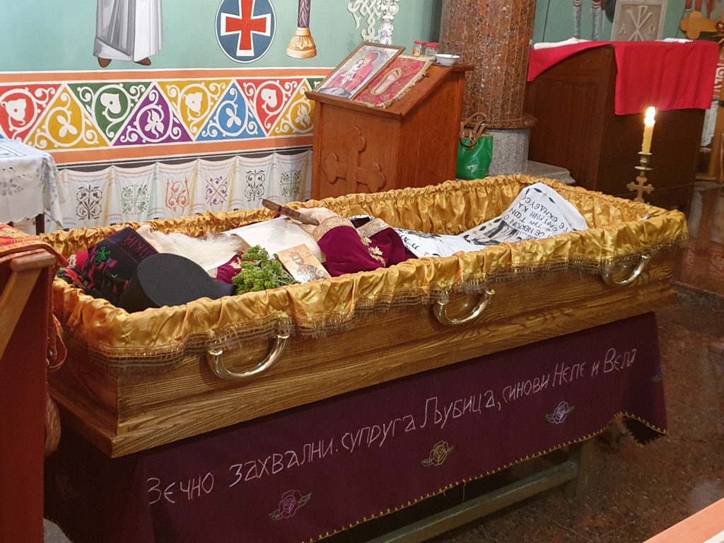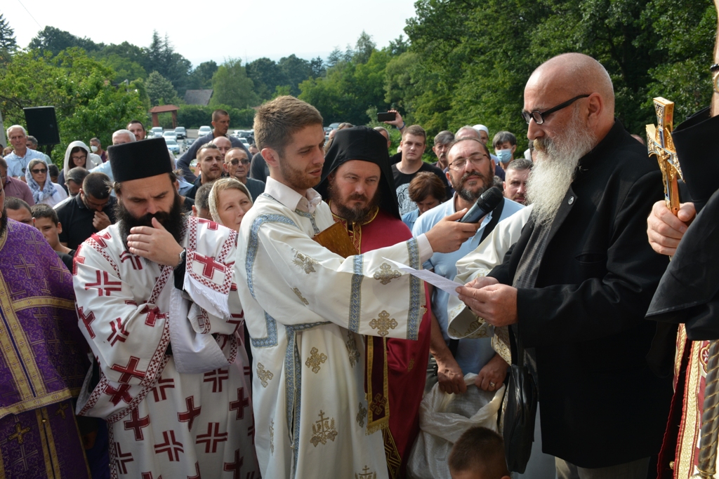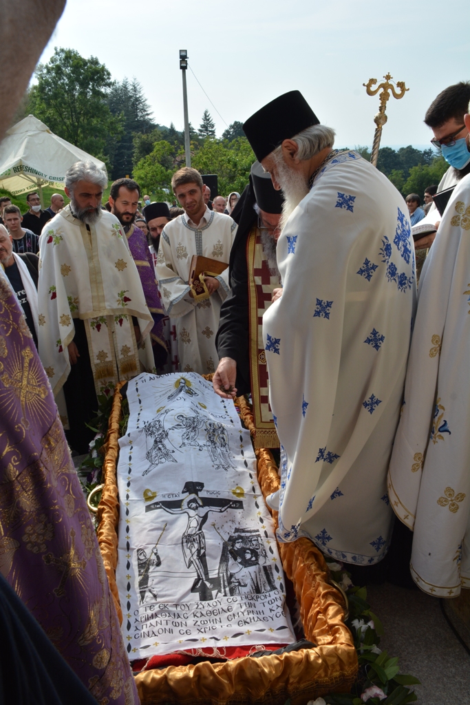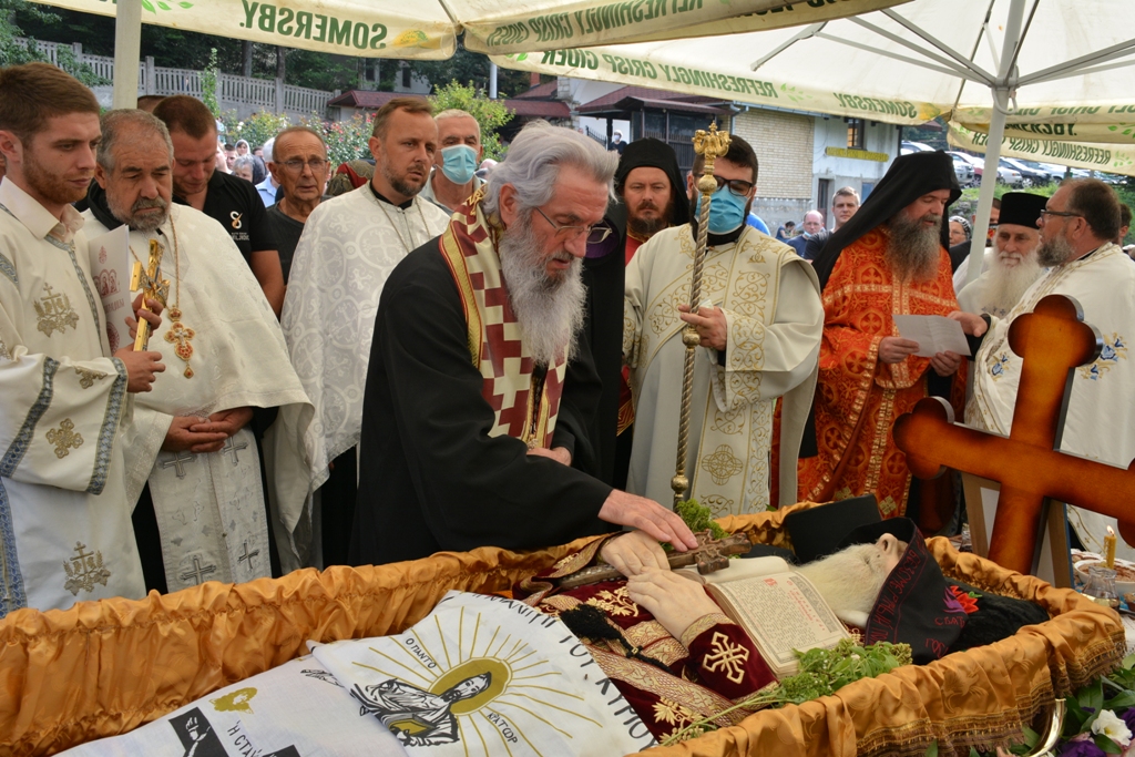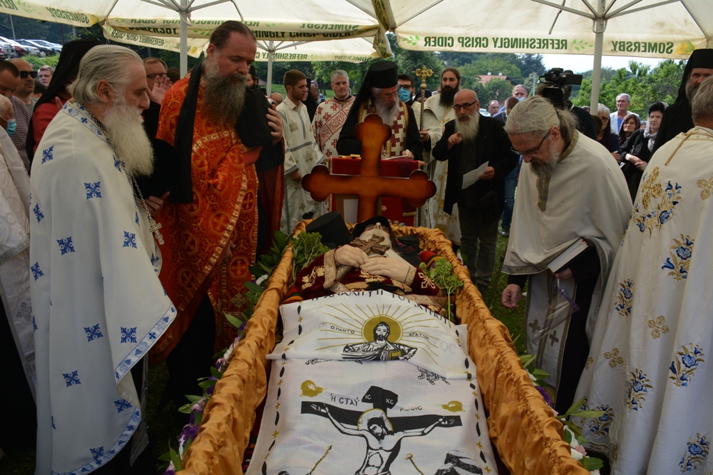 Началствовао је јеромонах Петар (Драгојловић) игуман манастира Пиносава, а саслуживали су јеромонах Дионисије настојатељ манастира Св. Петке у Сибници, свештеници Горан Лукић и Никола Симић и јерођакон Јован (Прокин) и ђакон Филип Јовановић, рекао је за Радио "Слово љубве" свештеник Марко Стевановић парох поповићки.