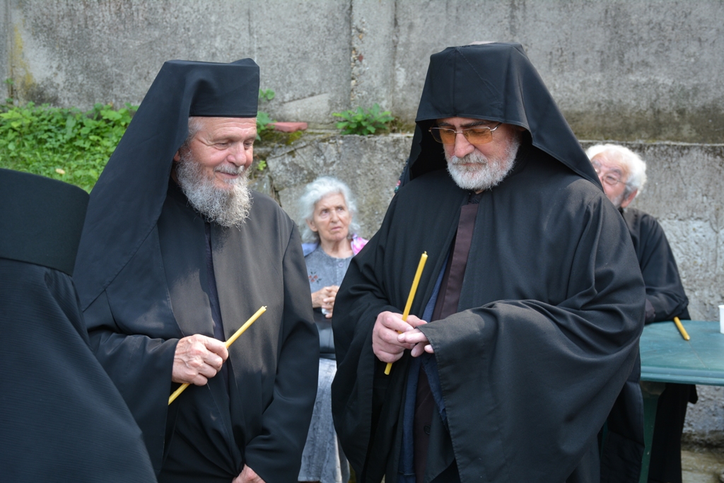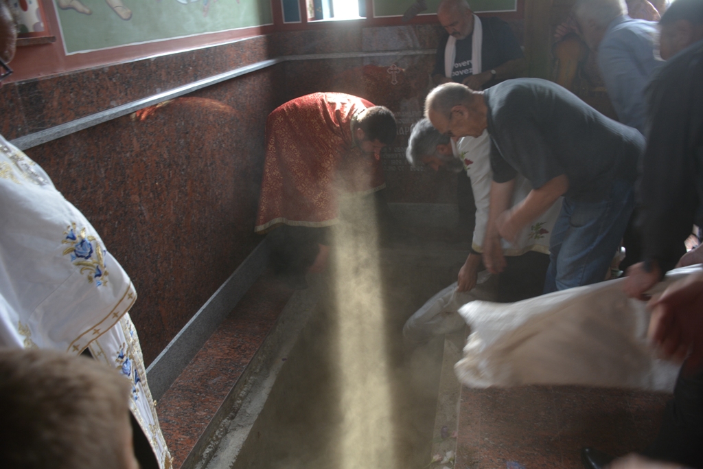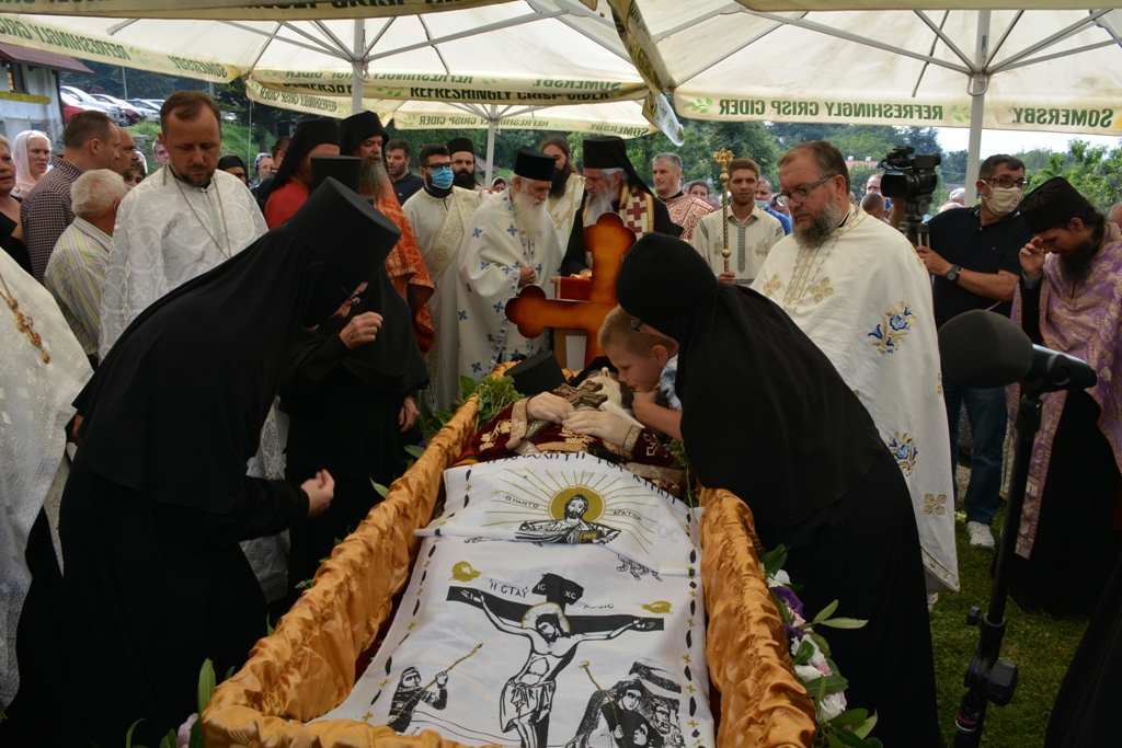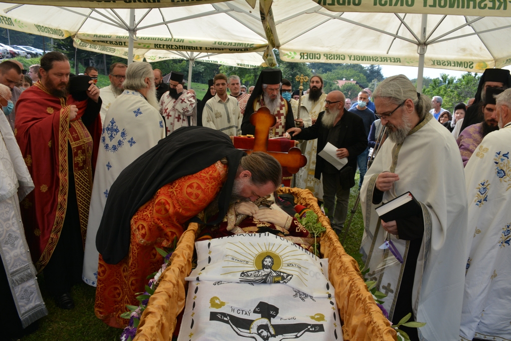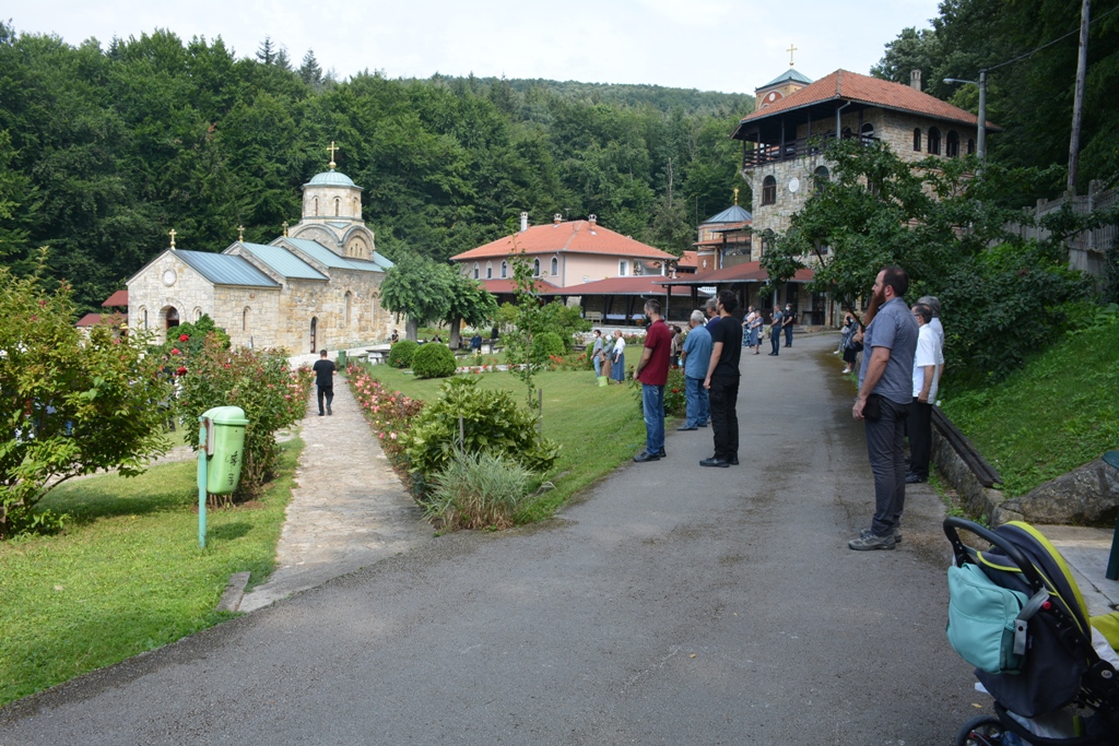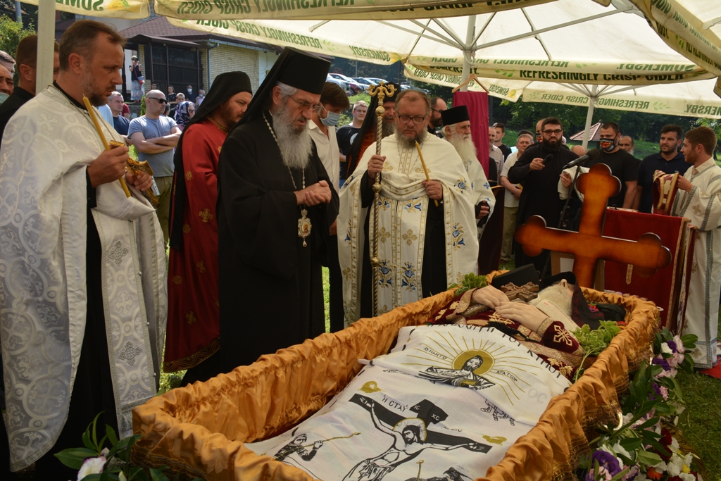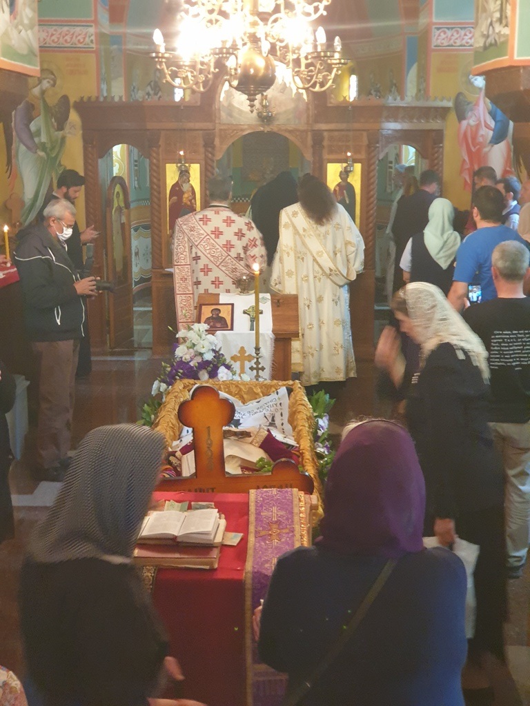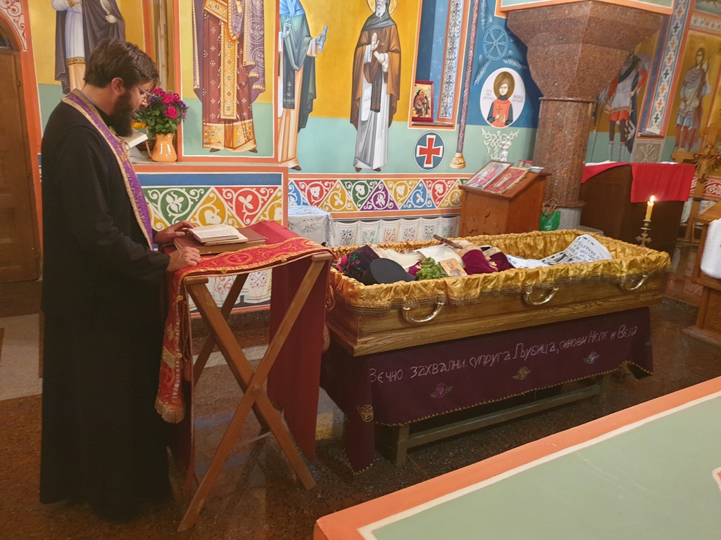 Началствовао је јеромонах Петар (Драгојловић) игуман манастира Пиносава, а саслуживали су јеромонах Дионисије настојатељ манастира Св. Петке у Сибници, свештеници Горан Лукић и Никола Симић и јерођакон Јован (Прокин) и ђакон Филип Јовановић, рекао је за Радио "Слово љубве" свештеник Марко Стевановић парох поповићки.