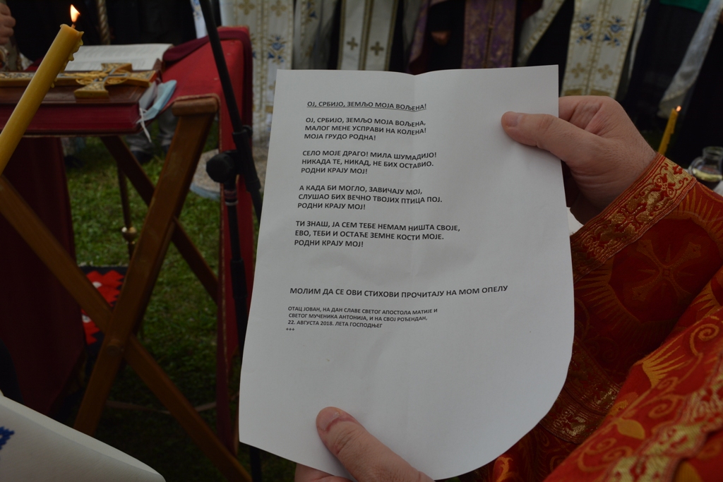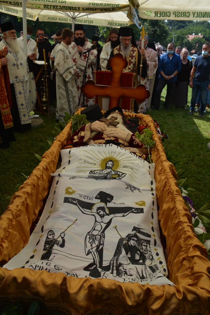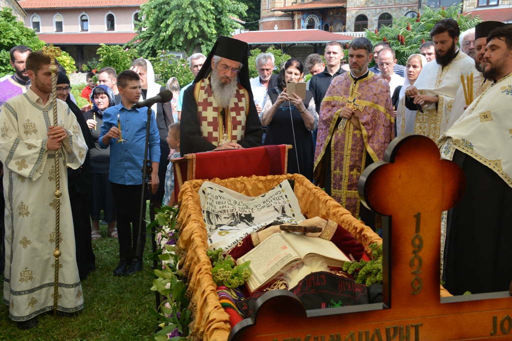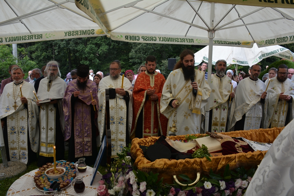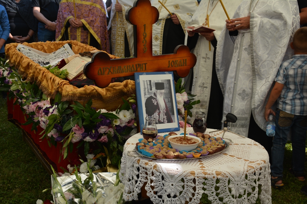 "Слушао је Онога који је вечни Бог" рекао је између осталог отац Петар и додао да се речи из јеванђеља прочитаног на Литургији директно односе на о. Јована који је "прешао из смрти телесне у живот вечни". "Душа му је припремљена патњом и страдањем, размишљањем и созерцањем, оним што му је Бог откривао у вишегодишњим молитвама у његовој келији". О. Петар је подсетио да су само они који су Богом живели после Другог светског рата, знали како је то изгледало тих година и кроз шта су све пролазили. Али отац Јован је остао пун љубави, иако је био врло строг према себи, али и према другима. "Не можете великог човека лако разумети" напоменуо је о. Петар који је на крају закључио да је "наша дужност да се молимо за душу о. Јована, јер је суд Божији ипак суд Божији, али чврсто верујемо да ће он чврсто загрлити Бога и да Га већ грли".