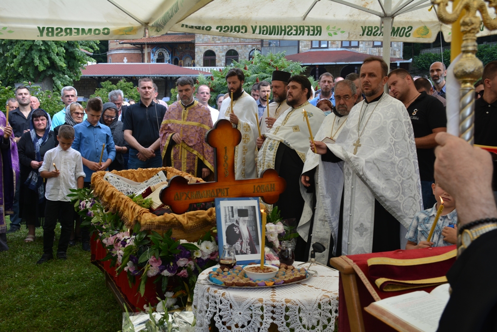 У овом дану, у манастиру Тресије је било присутно мноштво верника. Након одлуженог опела, Владика Јован је изговорио опроштајну беседу над одром упокојеног схиархимандрита Јована. Мудро и по љубави бираним речима, Његово Преосвештенство Епископ шумадијски Господин Јован је упознао присутне са подвижничким животом новопрестављеног слуге Божијег. На тај начин показавши, још једном, који је прави пут за човека, а кроз пример оца Јована је поучио како се Богу молити, како Богу служити и како у Бога веровати.