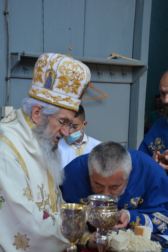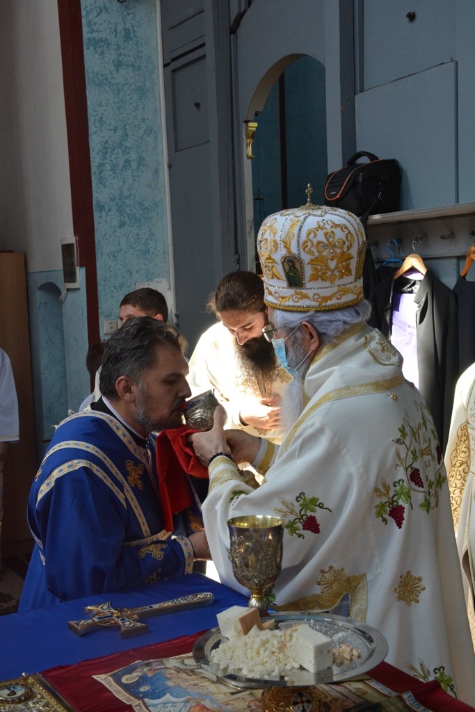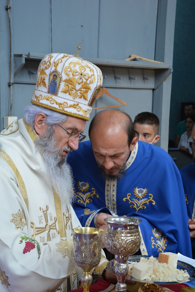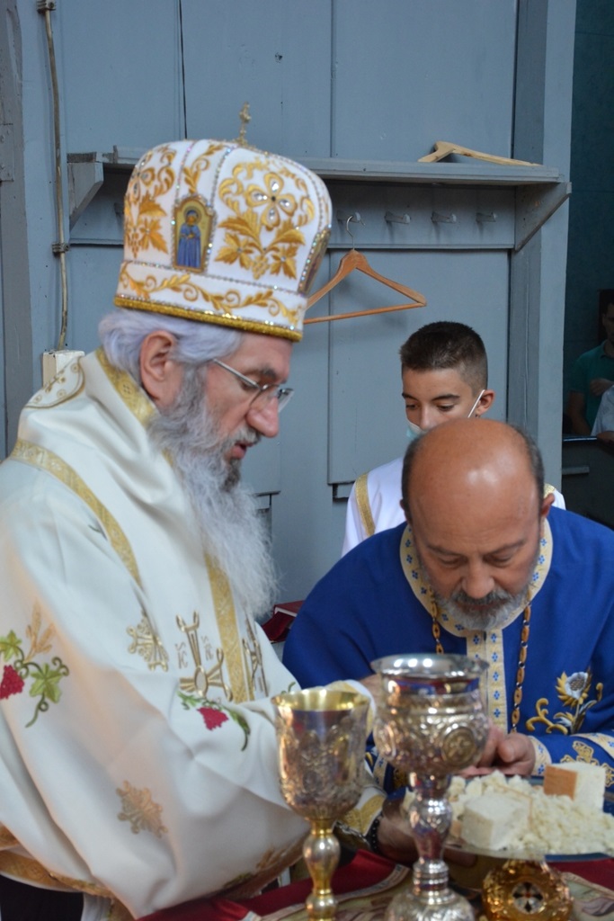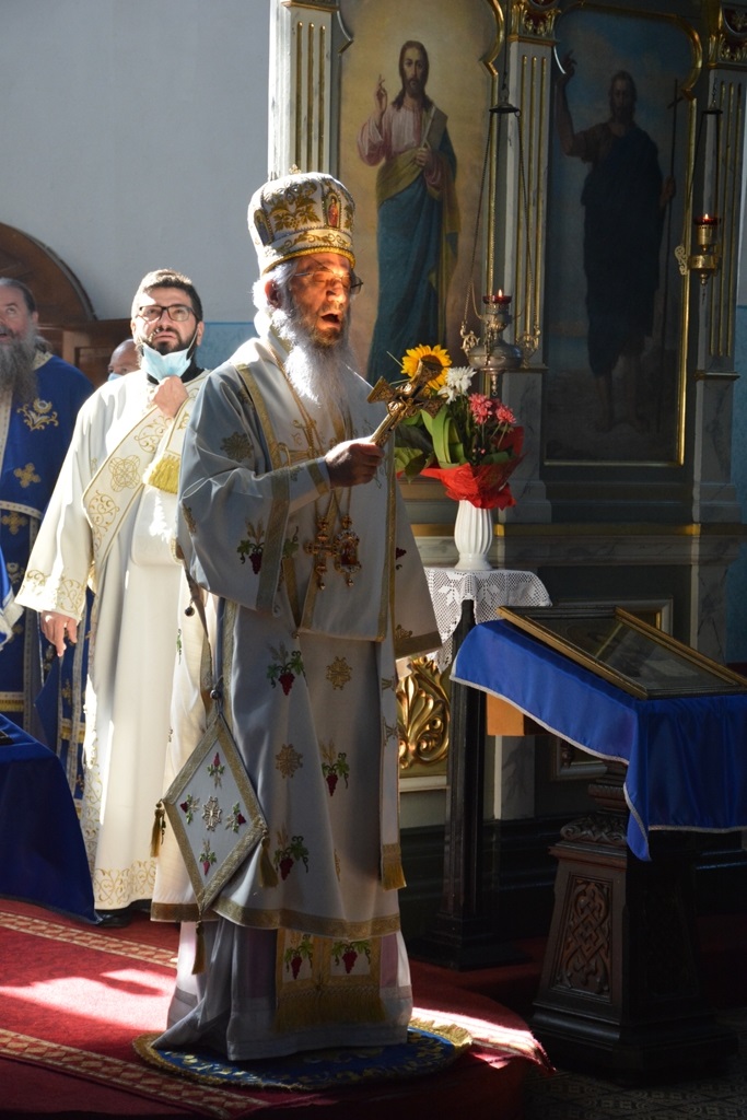 После прочитаног Јеванђеља Владика се обратио народу надахнутом беседом рекавши да ништа радосније нема него када човек прославља Бога, када се моли на сваком месту, а посебно у храму Божијем. Зато и Света Литургија јесте благодарење (евхаристија) и прослављање Бога, а човека који има литургијски живот ће Бог прославити. Само смирен човек, нагласио је Владика, трaжи просвећење и просвећен види Бога, зна шта је у другом човеку, има моћ да исцељује, изгони демоне и чини чуда. Зато треба да благодаримо Богу што нам је дао светитеље, јер се они моле Богу за нас и када ми то не чинимо.