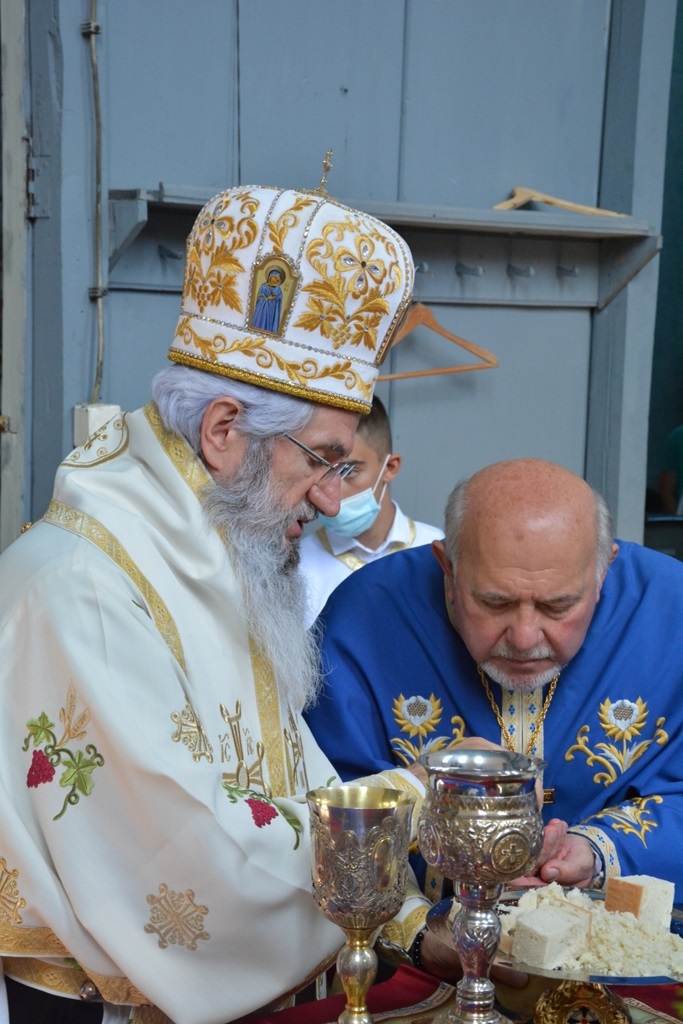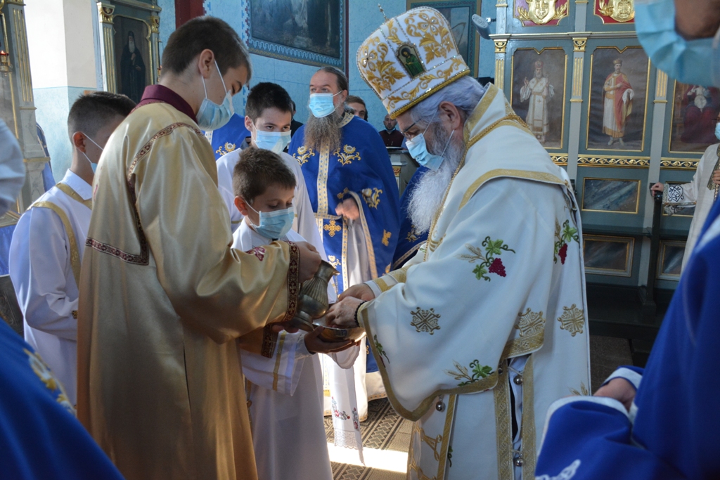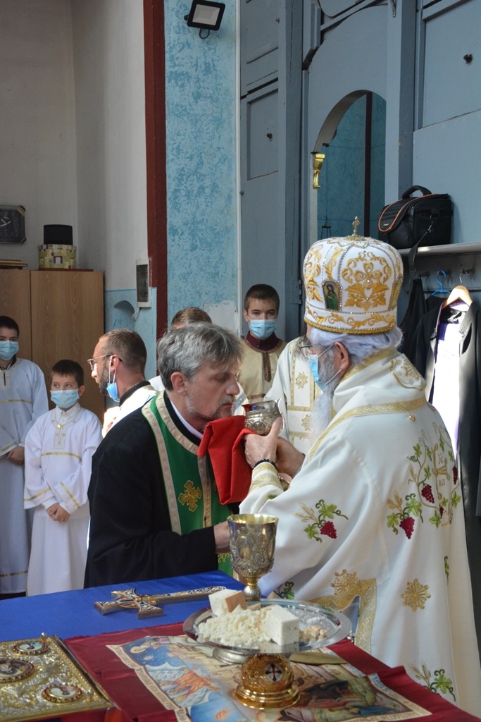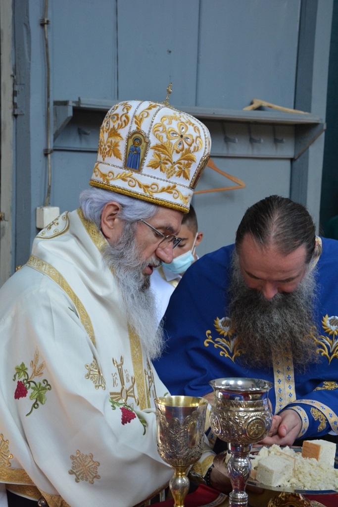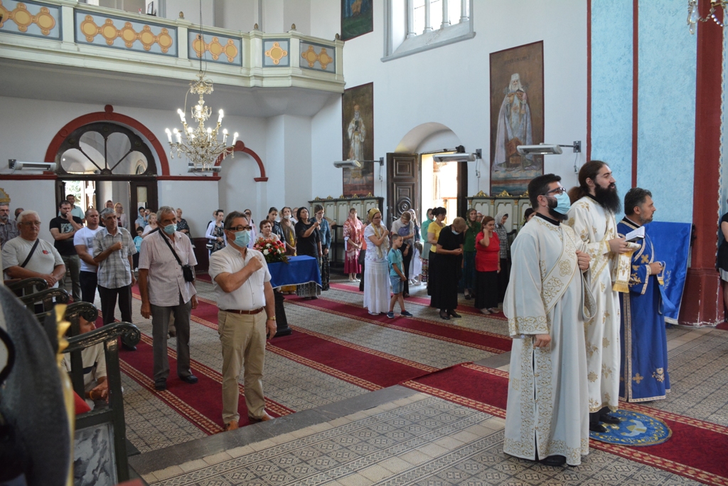 После прочитаног Јеванђеља Владика се обратио народу надахнутом беседом рекавши да ништа радосније нема него када човек прославља Бога, када се моли на сваком месту, а посебно у храму Божијем. Зато и Света Литургија јесте благодарење (евхаристија) и прослављање Бога, а човека који има литургијски живот ће Бог прославити. Само смирен човек, нагласио је Владика, трaжи просвећење и просвећен види Бога, зна шта је у другом човеку, има моћ да исцељује, изгони демоне и чини чуда. Зато треба да благодаримо Богу што нам је дао светитеље, јер се они моле Богу за нас и када ми то не чинимо.
