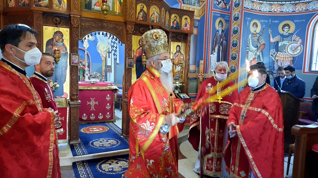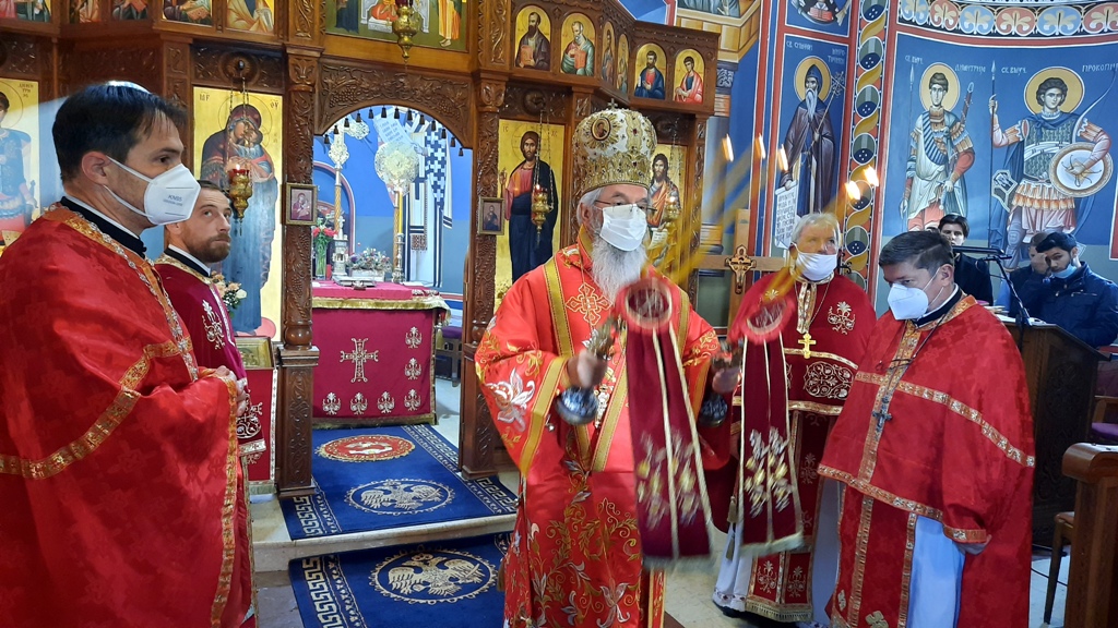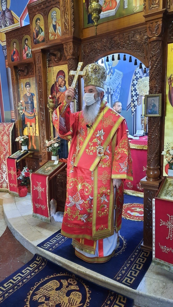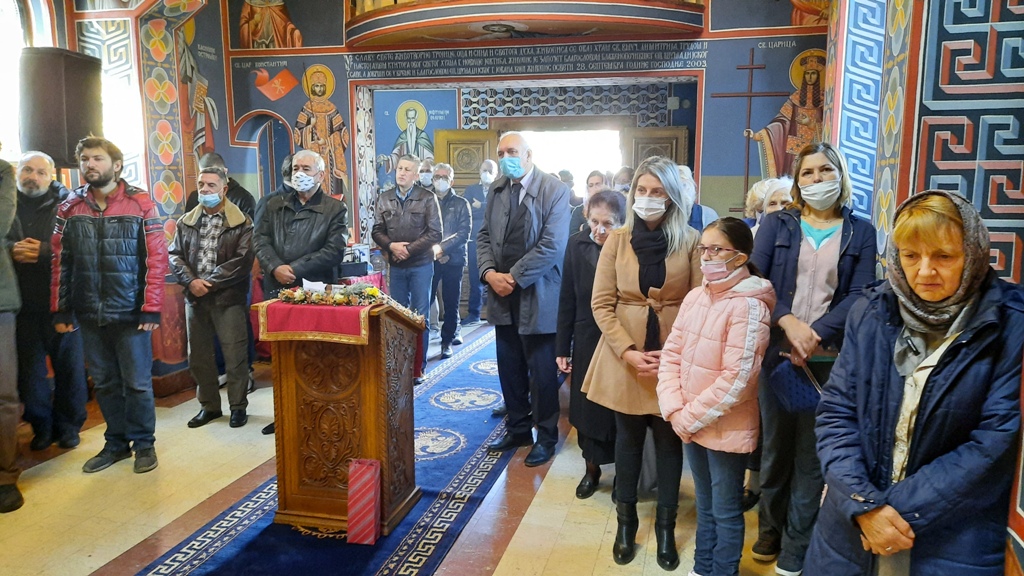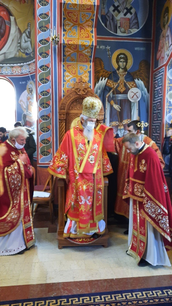 “Просто је немогуће да нашем Епископу пожелимо добродошлицу, будући да је он домаћин овог сабрања, али нас то не спречава да му изразимо благодарност што је и у овим, крајње неизвесним данима он са својим народом, што Господу узноси молитве за здравље и спасење свих нас, а нама својим личним примером сведочи Небеског Домаћина у чије име се сабирамо. Данас, као што то у Цркви то свакодневно бива, славимо победу живота над смрћу, победу вере над неверјем, победу љубави над мржњом, победу вечног блаженства над пролазним мукама. Данас прослављамо светог великомученика Димитрија, који је својим житијем, а у контексту данашње јеванђељске приче о богаташу и Лазару, написао упутство за употребу пролазних блага зарад добијања небеских дарова, који је смирењем и трпљењем победио силу тиранина, који је вером и љубављу положио наду у Бога, који је прослављао Господа и којег је Господ прославио. Свети Димитрије је једним од најужих путева, путем великомученика, стигао у Царство Небеско, у загрљај Христов, исповедивши веру не језиком и речима, него својим делима и благочестивим животом”.