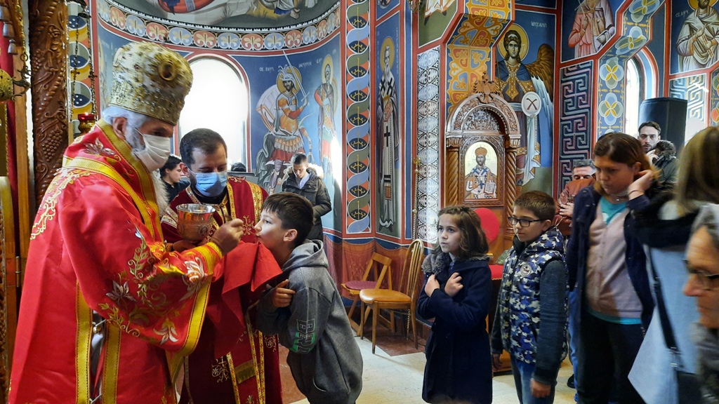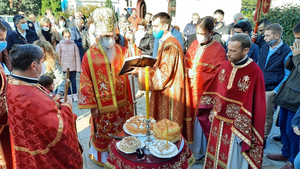 Након причешћа већег броја верујућих душа, уследио је опход око храма и чин резања славског колача у ком се Владика Јован помолио за све свечаре овога дана, честитавши свима храмовну славу.