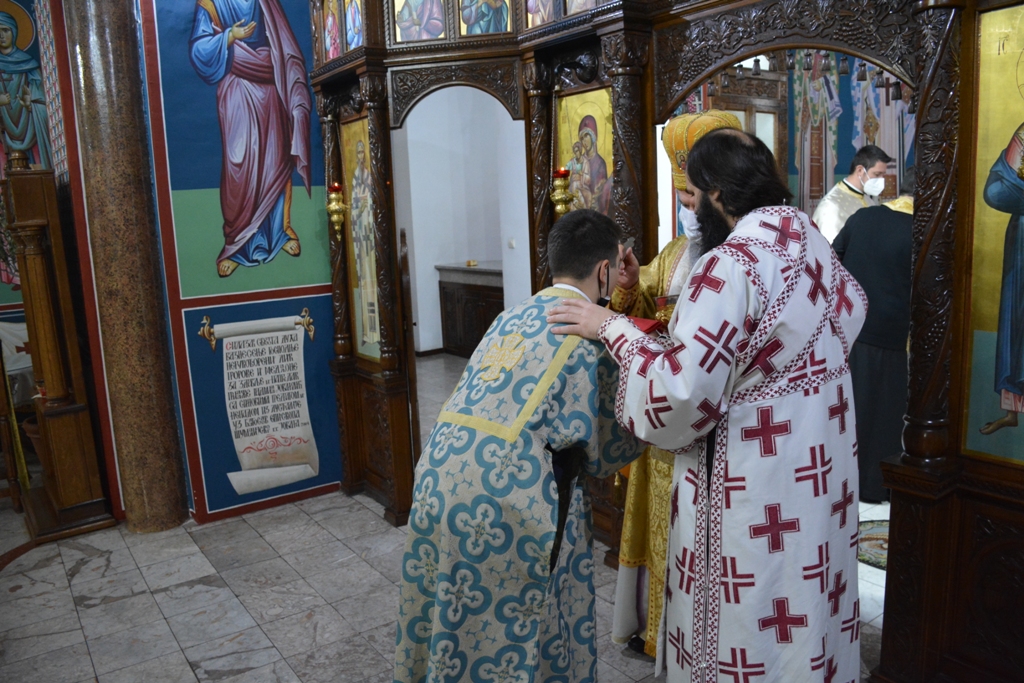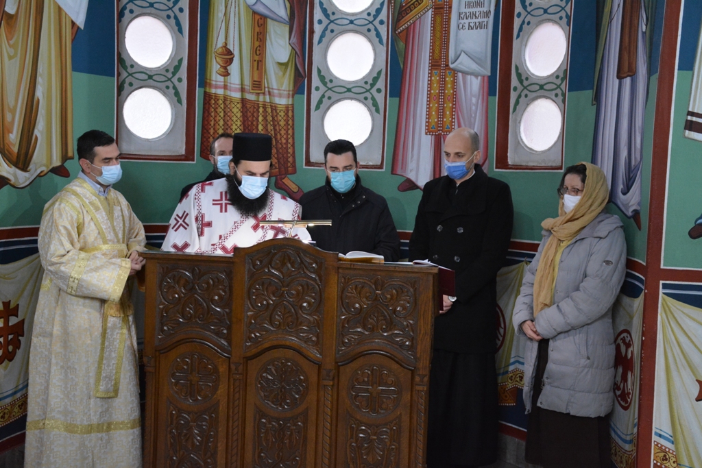 Преосвећеном су саслуживали: протојереј ставрофор др Зоран Крстић, јереј Иван Антонијевић, јерођакон Василије (Старовлах), и ђакон Александар Ђорђевић. Чтецирали су: ипођакон Милош Коцић, и богослов Василије Тешић.