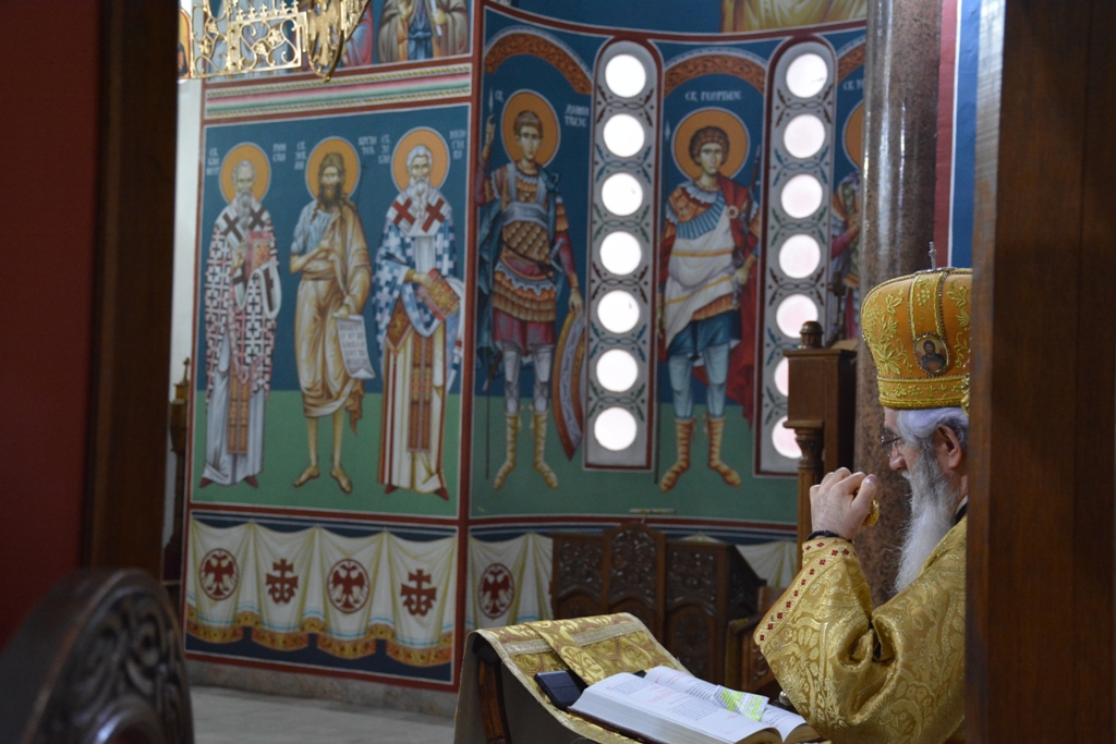 После Јеванђеља, Преосвећени Владика Јован, протумачио је Христове речи, говорећи о гоњењима и невољама оних који верују у Богочовека Христа: