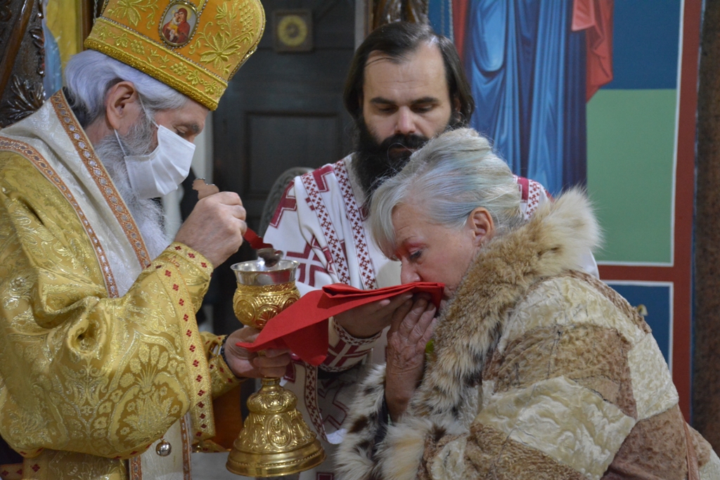 Преосвећени Владика је после поуке речима, осветивши Дарове, причестио верни народ, Телом и Крвљу Господа Исуса Христа.