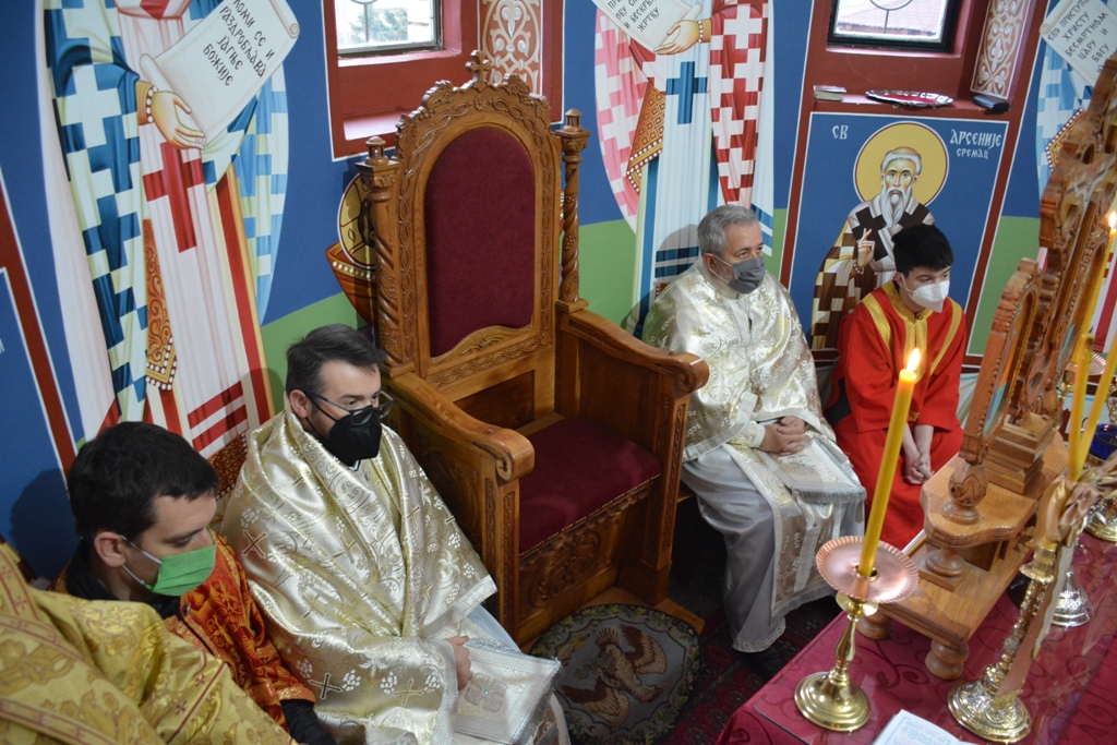 Владики Јовану су саслуживали: протојереј-ставрофор Синиша Марковић, протојереј Сретко Петковић и ђакон Недељко Дикић.