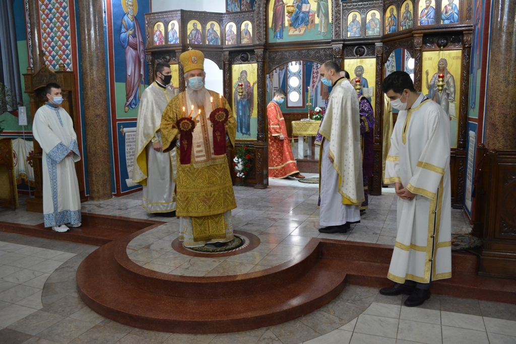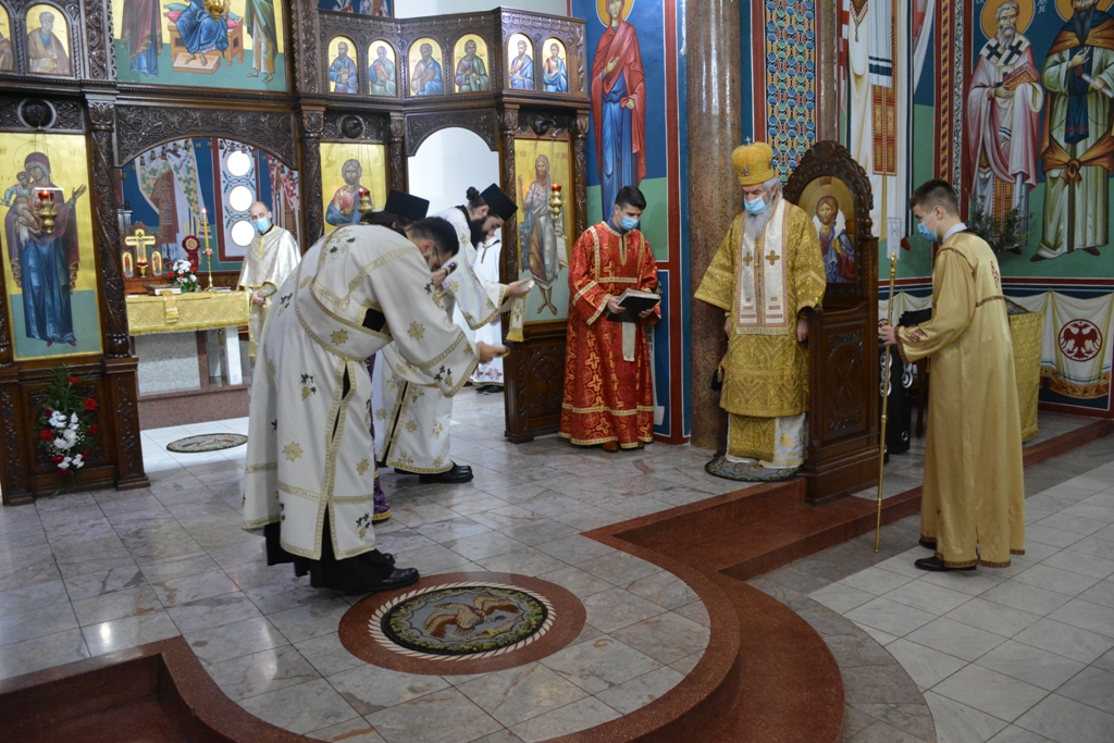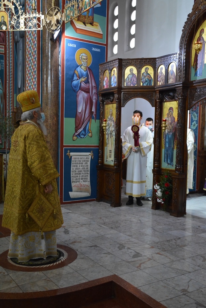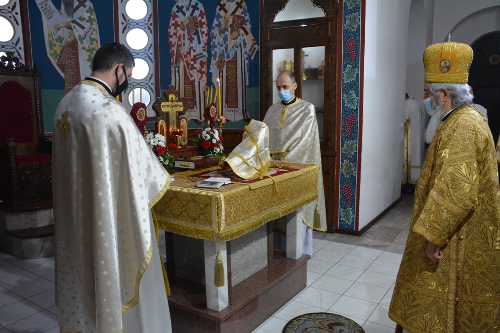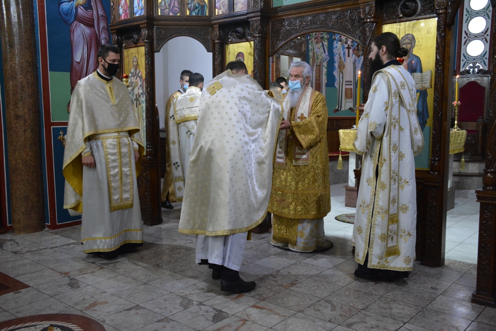 Преосвећеном су саслуживали: протонамесник Бранислав Матић, јереј Иван Антонијевић, јерођакон Василије (Старовлах), јерођакон Јован (Прокин), и ђакон Александар Ђорђевић.