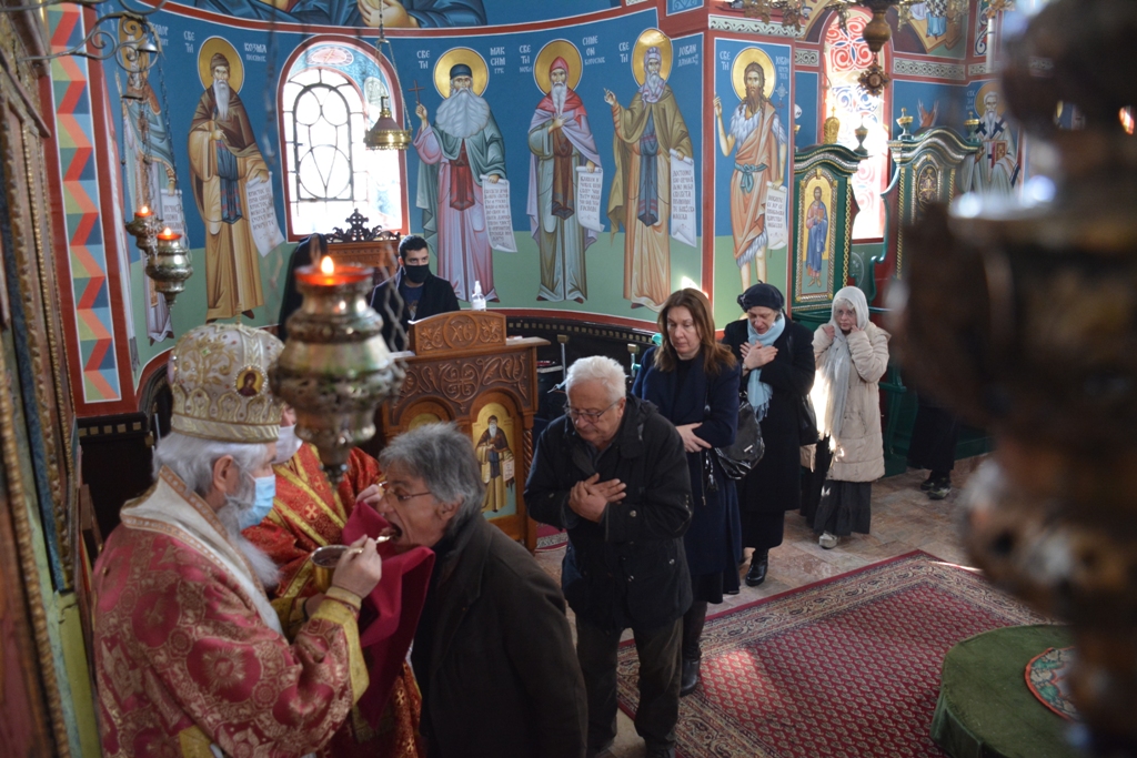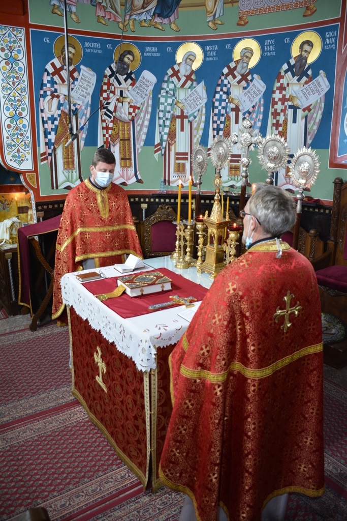 Након причешћа верних, Владика је поделио свој Архијерејски благослов и иконице присутнима.