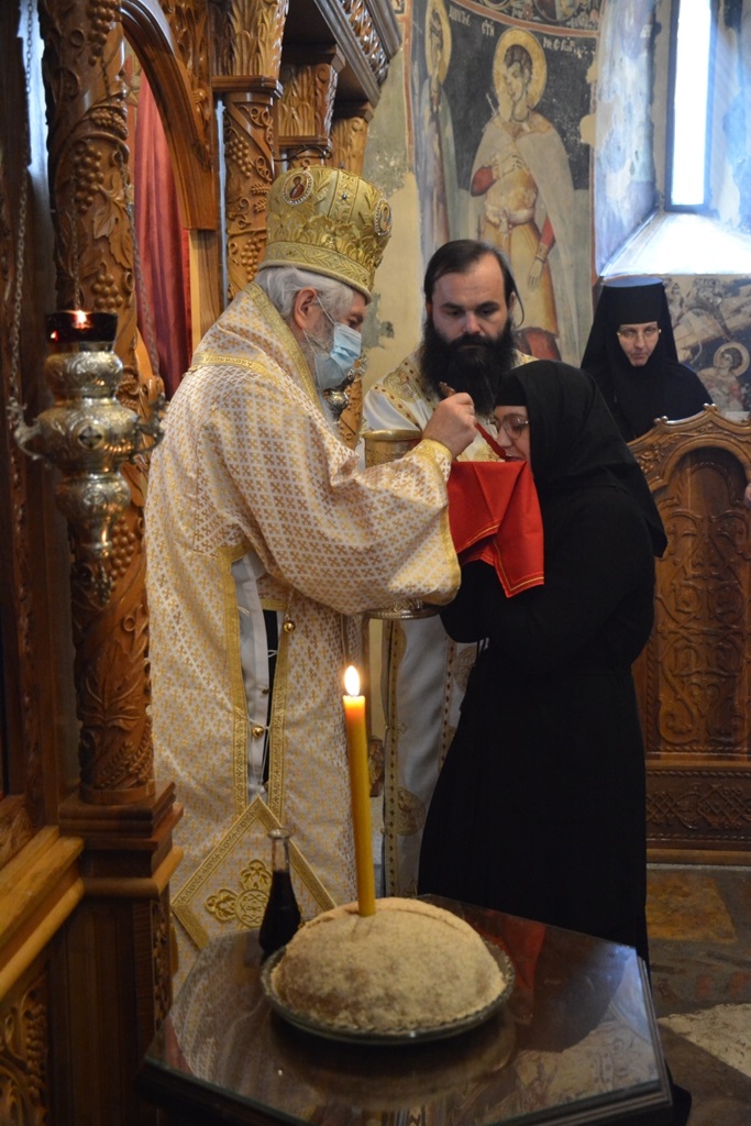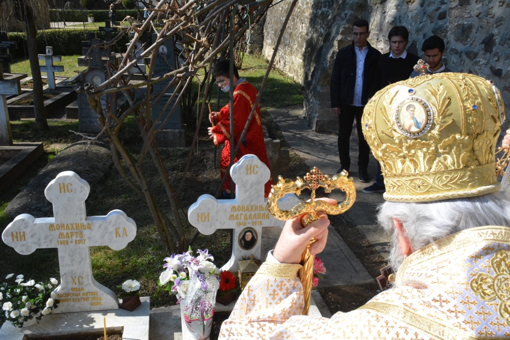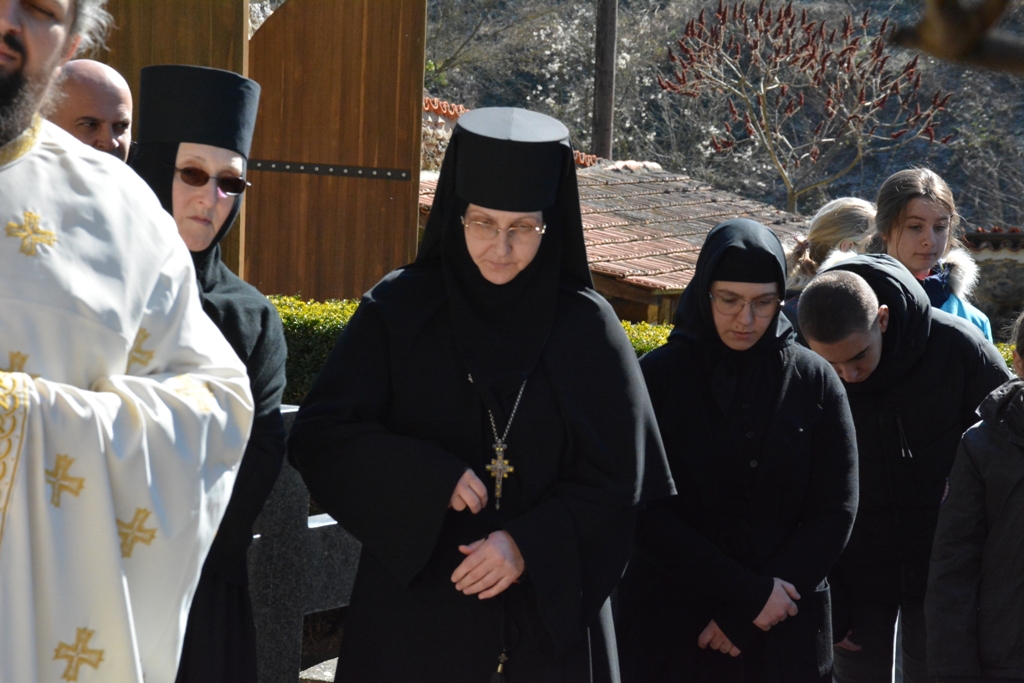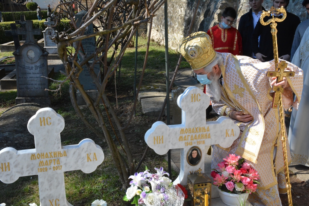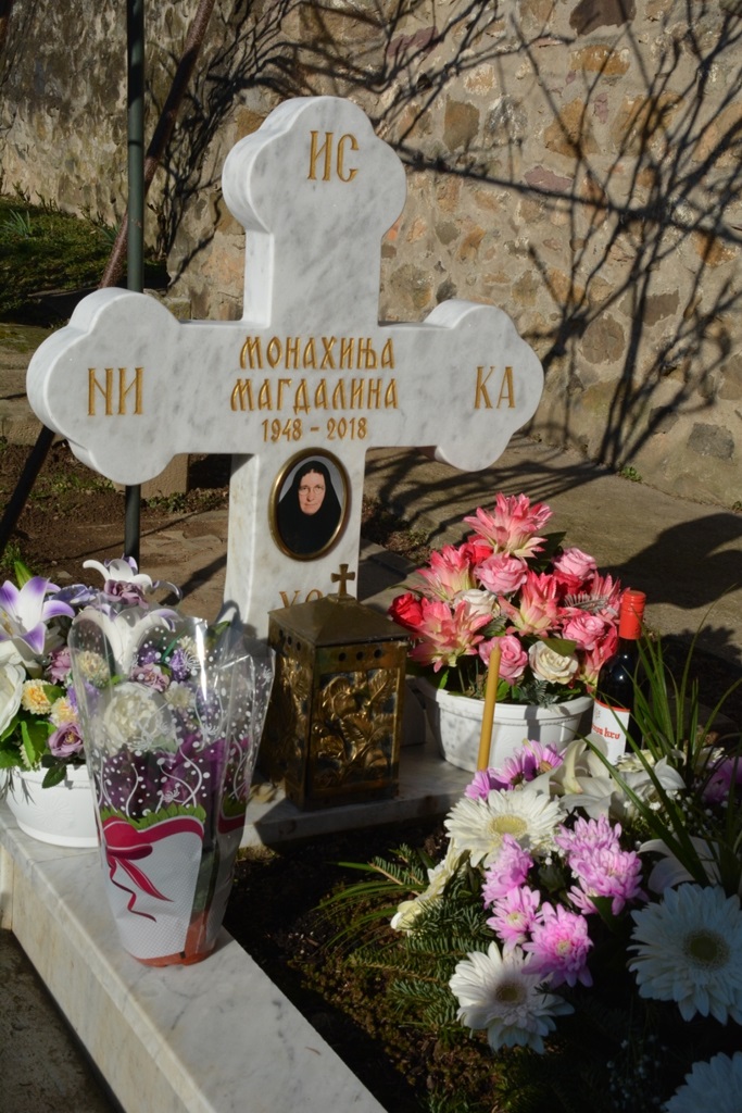 Пред крај Свете Литургије служен је трогодишњи парастос монахињи Магдалини која је дуги низ година била послушница на Владичанском двору, а која је сахрањена овде на манастирском гробљу, као једна од сестара ове свете обитељи.