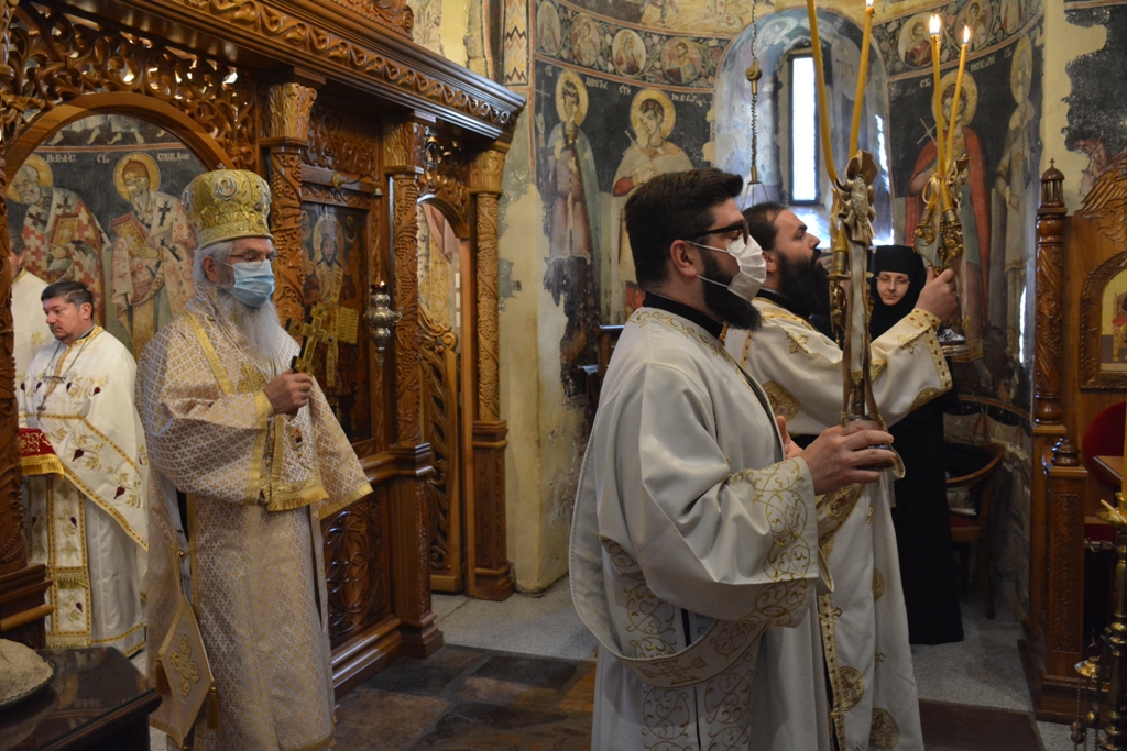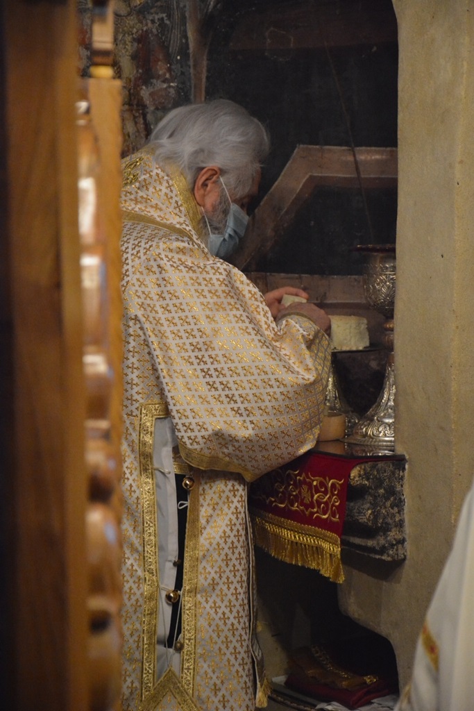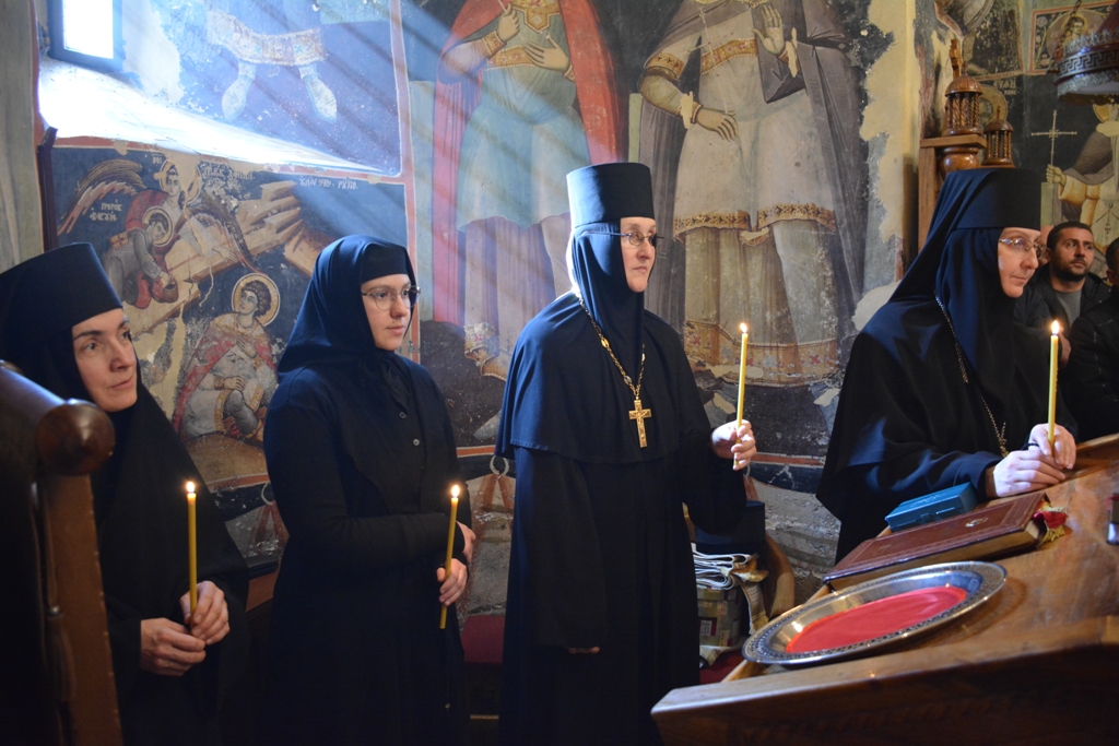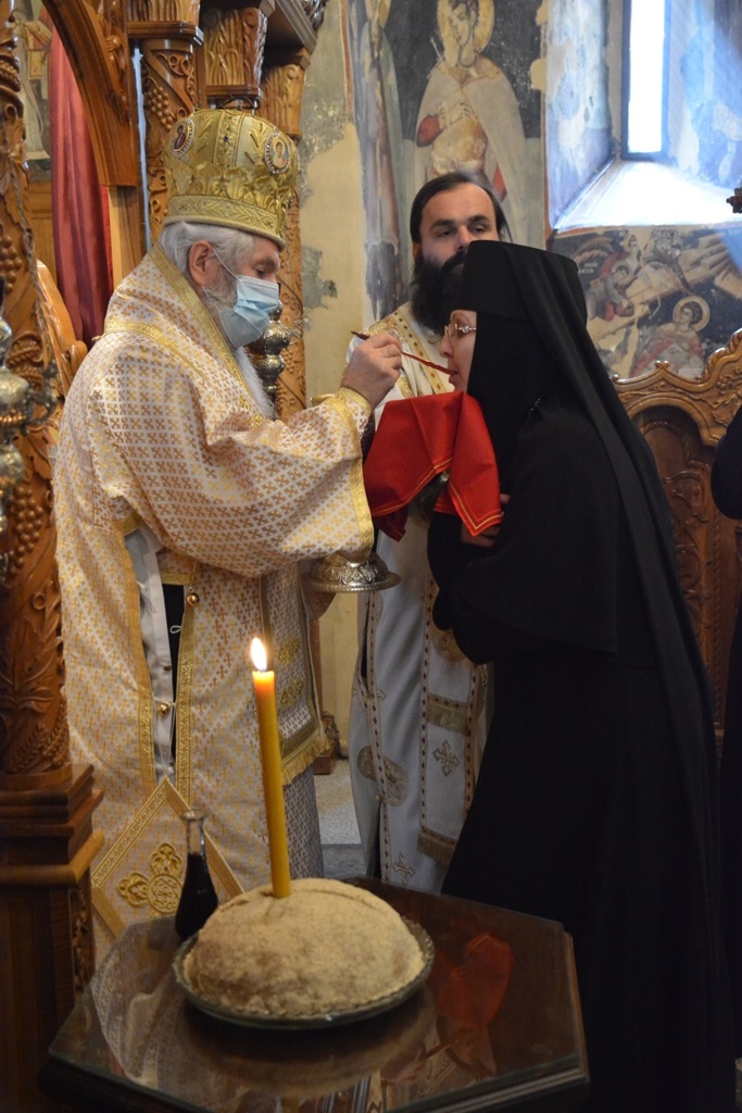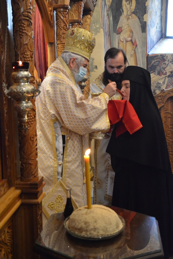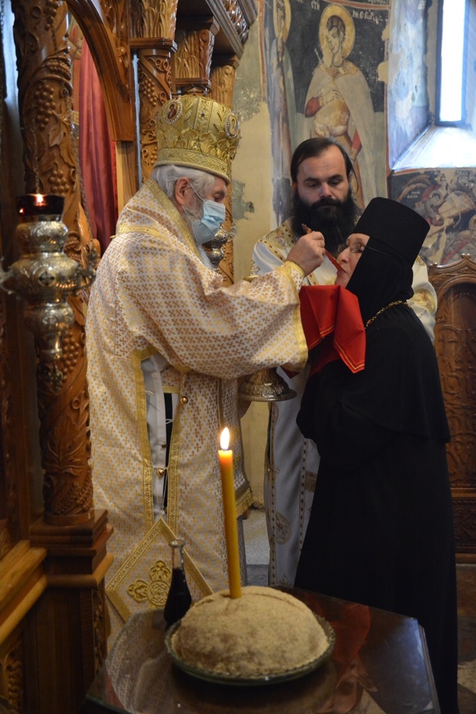 Пред крај Свете Литургије служен је трогодишњи парастос монахињи Магдалини која је дуги низ година била послушница на Владичанском двору, а која је сахрањена овде на манастирском гробљу, као једна од сестара ове свете обитељи.