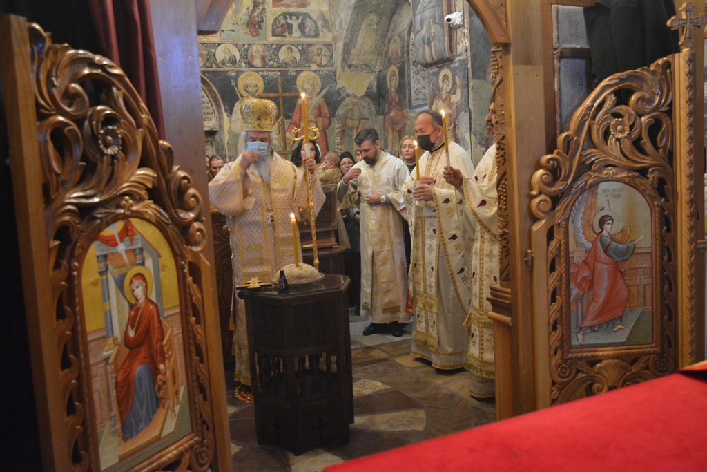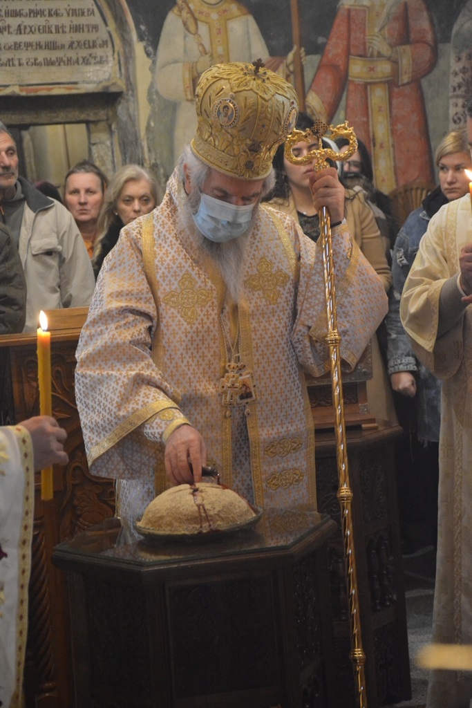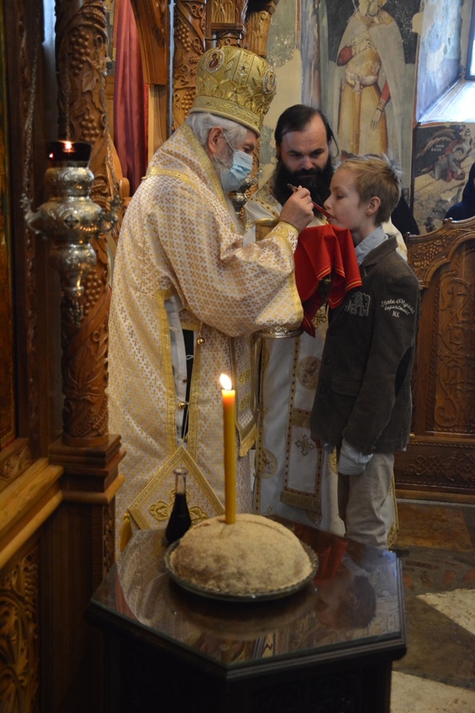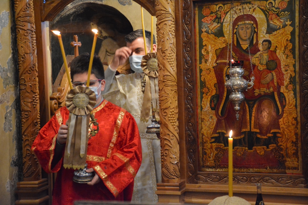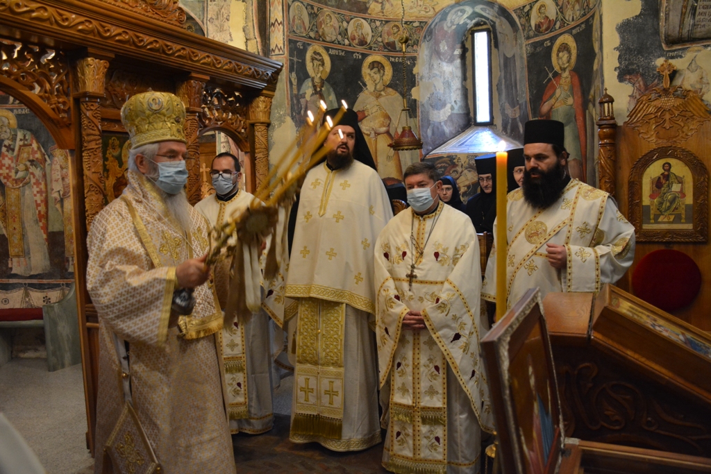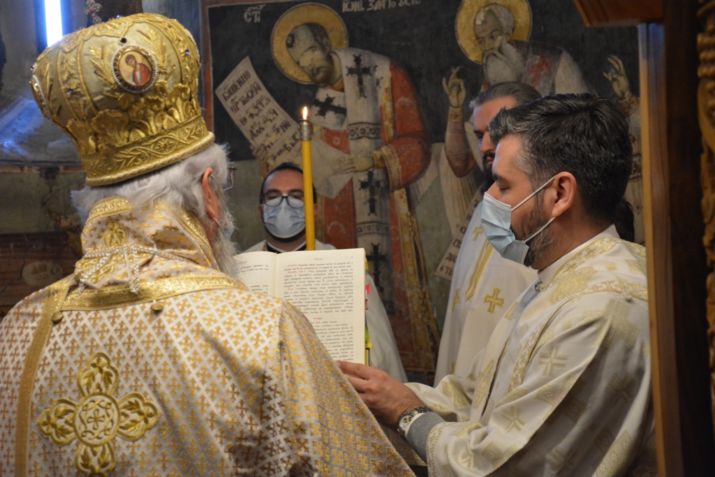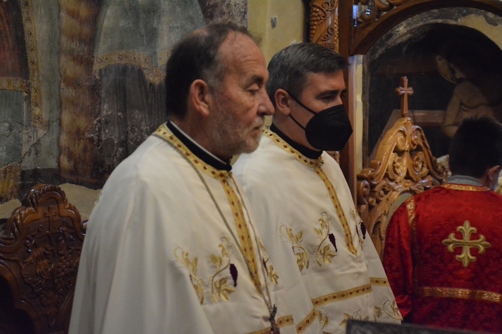 Његовом Преосвештенству саслуживали су ректор Богословије “Светог Јована Златоуста” пртојереј-ставрофор др Зоран Крстић, протојереј-ставрофор Зарије Божовић, протосинђел Онуфрије (Вранић), протојереј Дејан Лукић, јереј Дејан Марковић, протођакон Иван Гашић, јерођакон Василије (Старовлах).