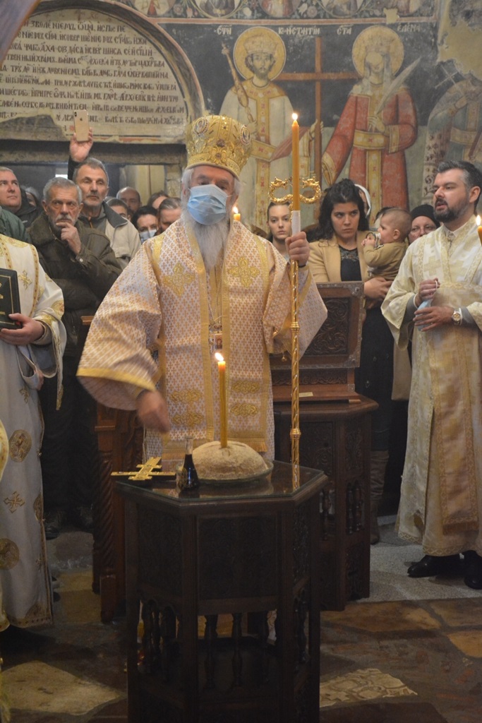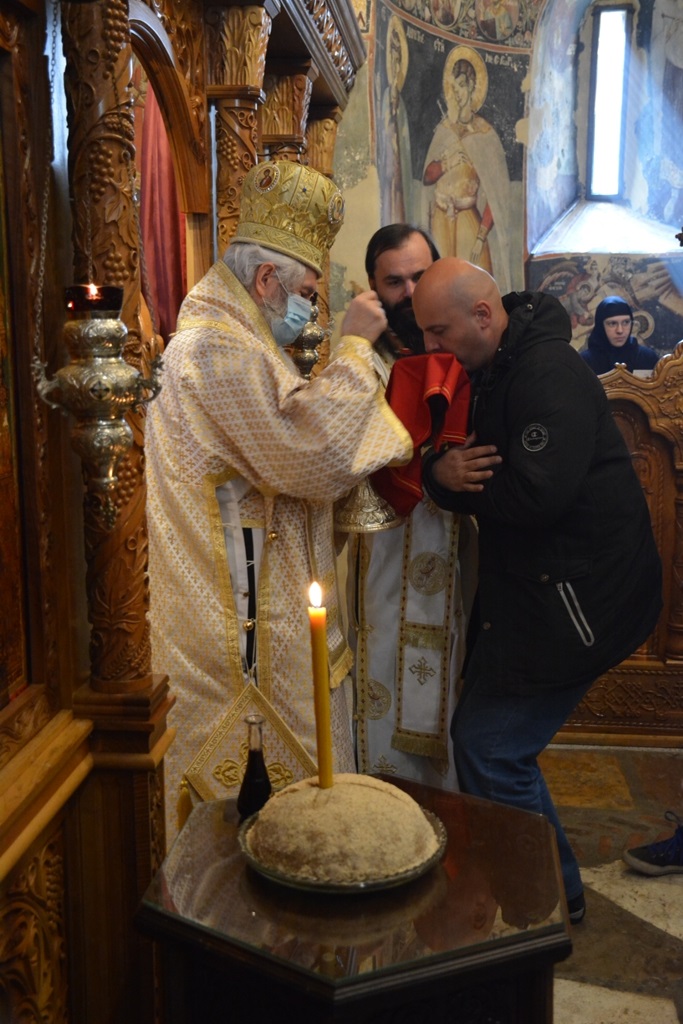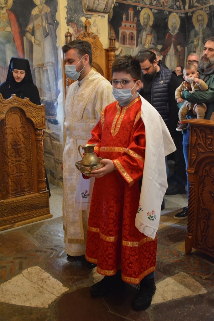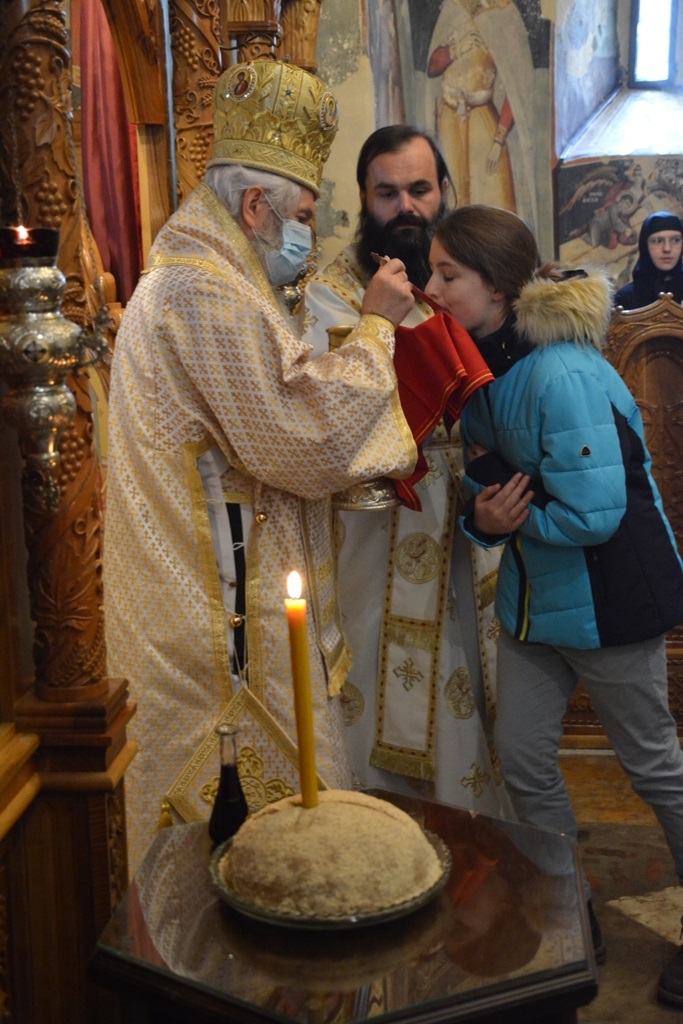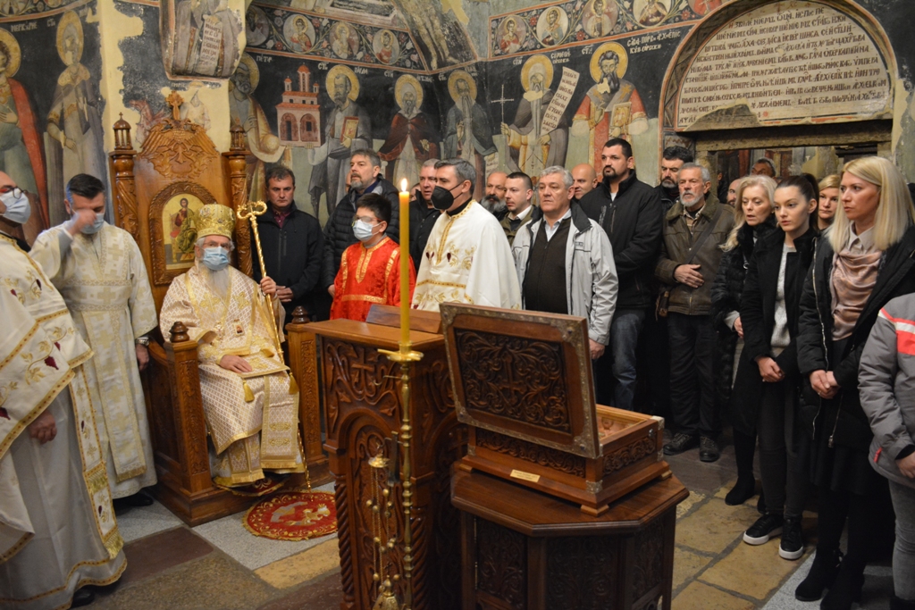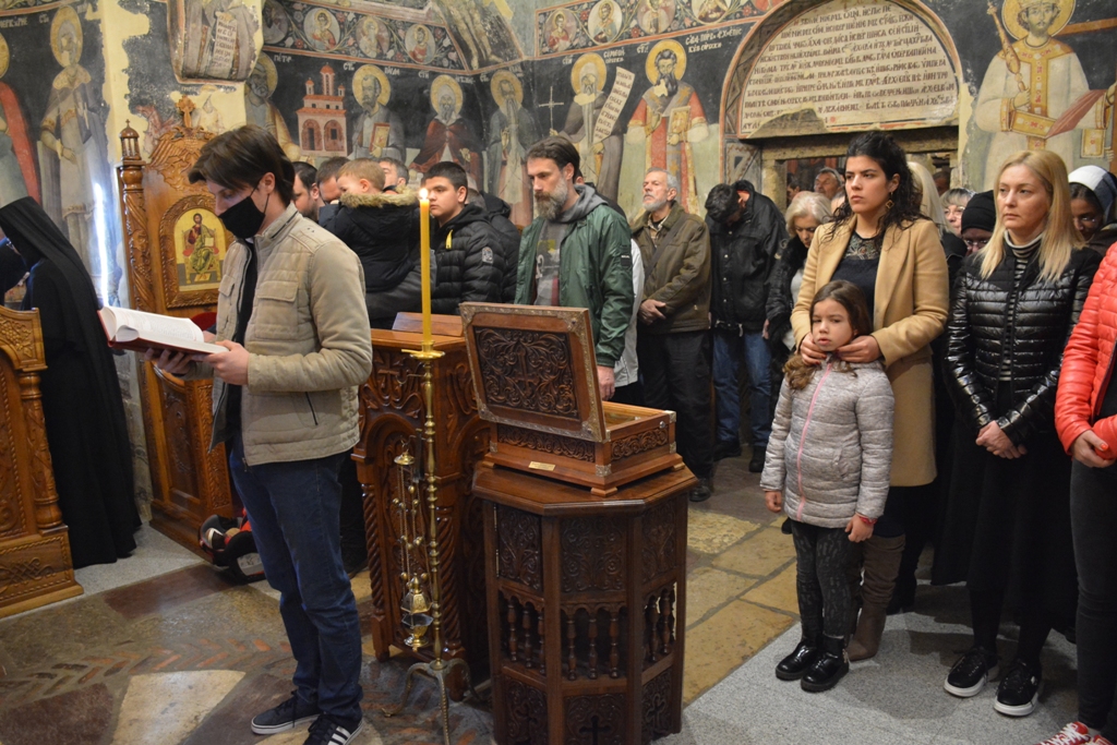 По прочитаном Јеванђељу, а благословом Владике Јована, верном народу се својом надахнутом беседом обратио отац Зоран Крстић говорећи нам о времену Триода у коме се налазимо као предворју поста, који је идеалан период за наше покајње. Објашњавајући да покајње јесте исповедање и најмањег греха, али није само то, него још више умножавање љубави и чињење делатне љубави најпре према ближњима, како бисмо могли рећи да волимо и Бога. Шта ће бити коначни критеријум Суда Божијег? Љубав! Сами се не можемо испунити љубављу, то је пре свега дело Духа Светога. Наше спасење и наше покајање јесте жеља за задобијањем Духа Светога. Кад постоји таква жеља која се изражава кроз љубав, онда нам и Господ помаже. Тако би Црква желела да сви ми кренемо на пут Великог поста. Наш подвиг и све оно што ћемо радити током тог пута једини смисао има да задобијемо љубав према Богу и према ближњима. На крају своје беседе отац Зоран је пожелео срећан почетак поста да у здрављу и радосости дочекамо и Васкрс.