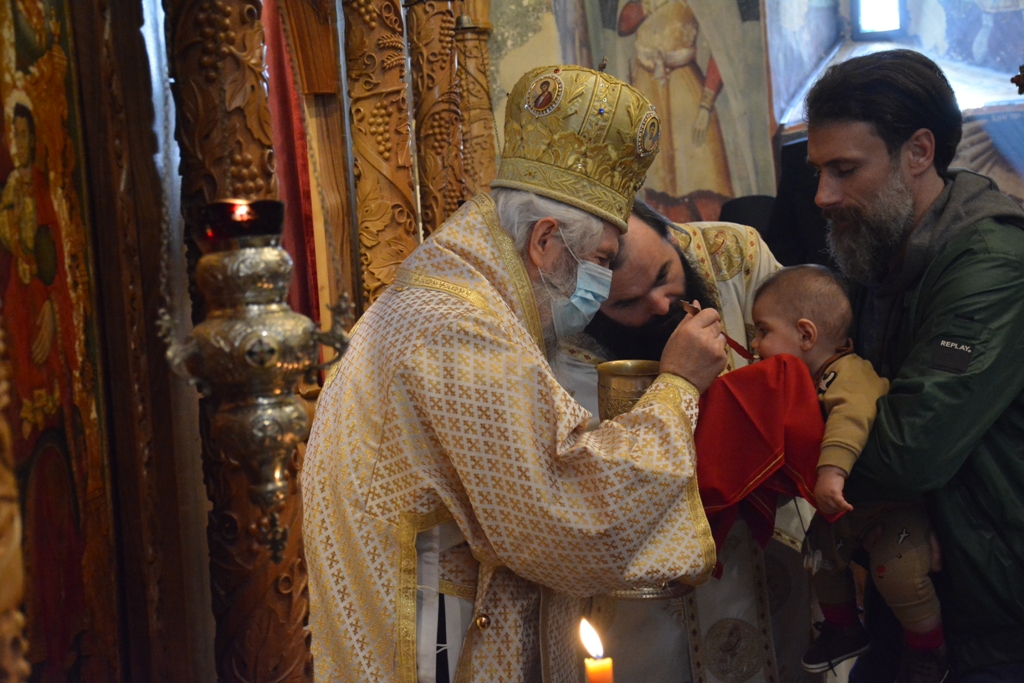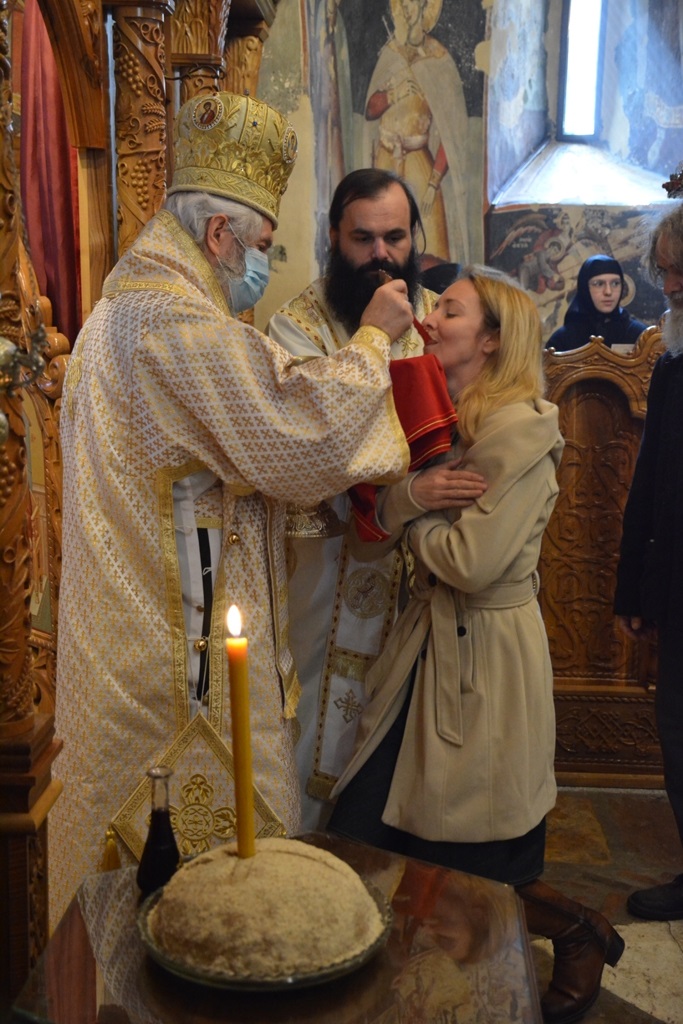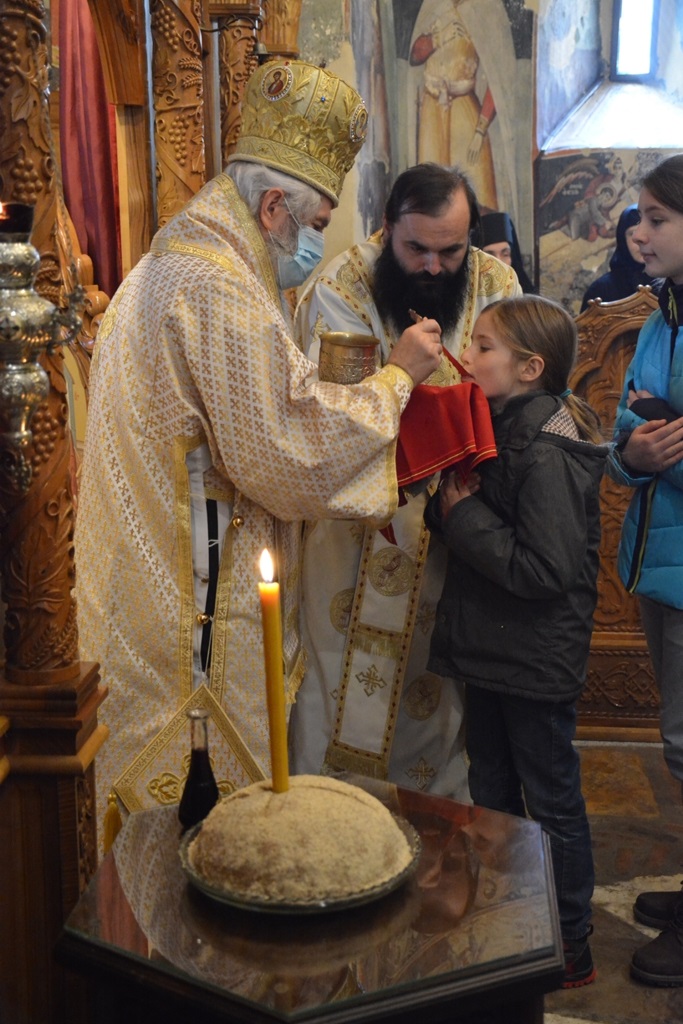 На позив ђакона: “Са страхом Божијим и вером приступите”, преподобно монаштво и благоверни народ је приступио Светој Чаши и кроз Свету Тајну причешћа се сјединио са Богом.