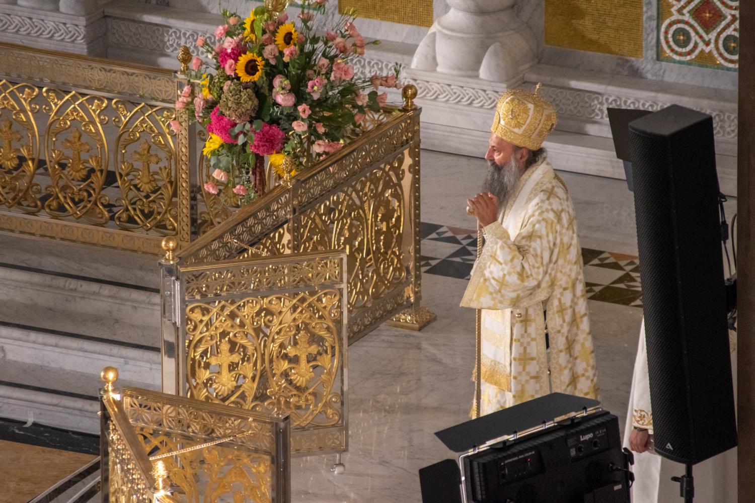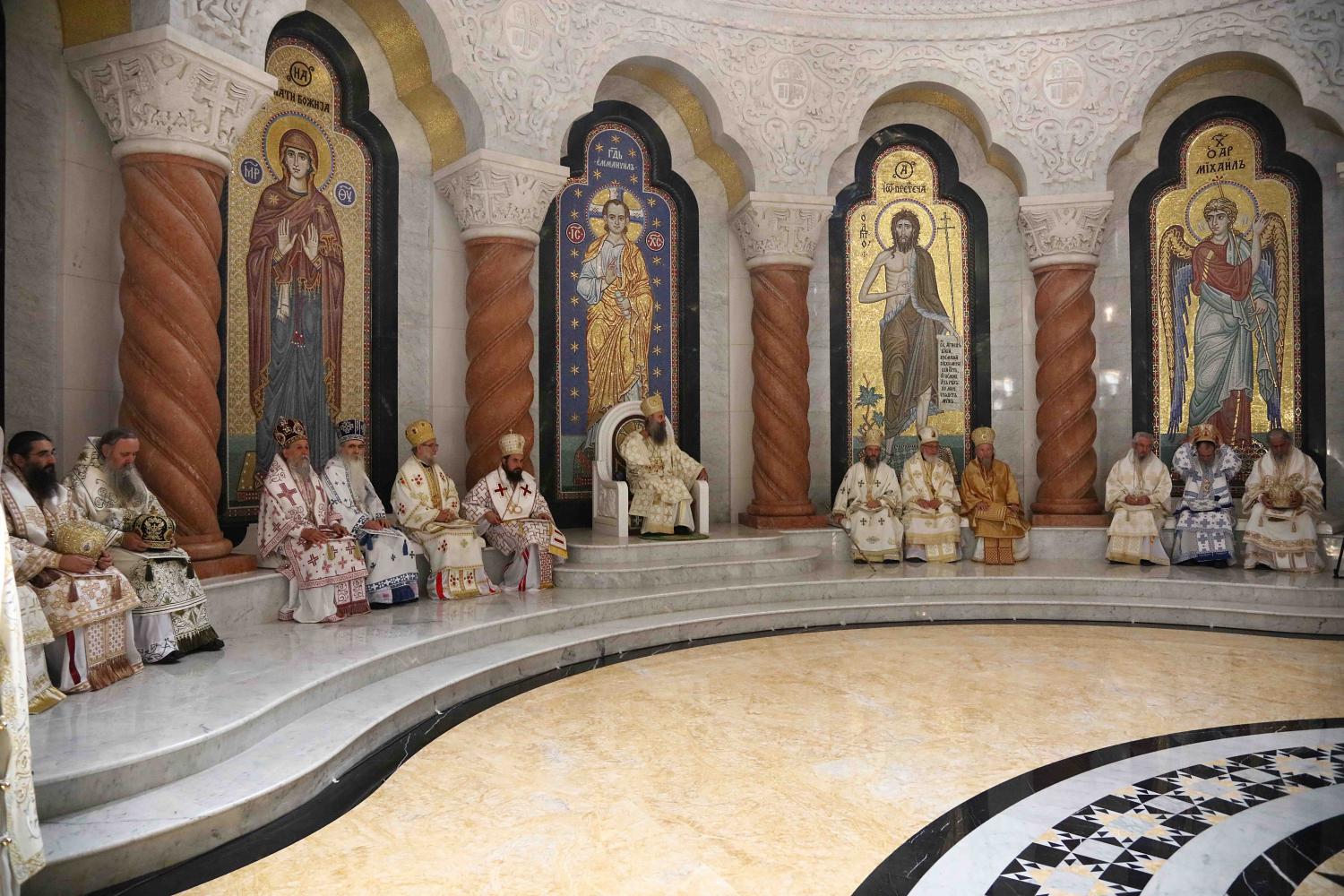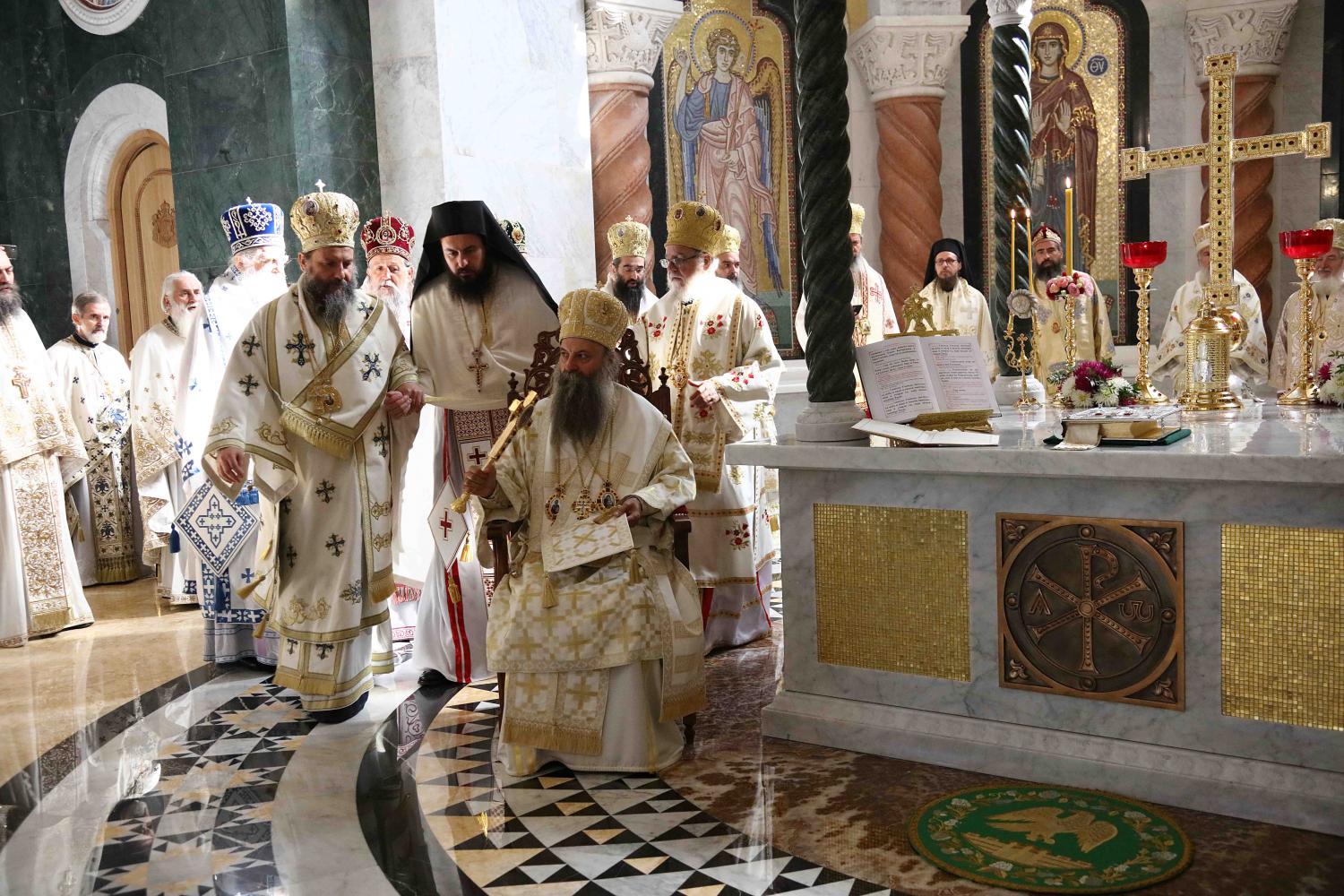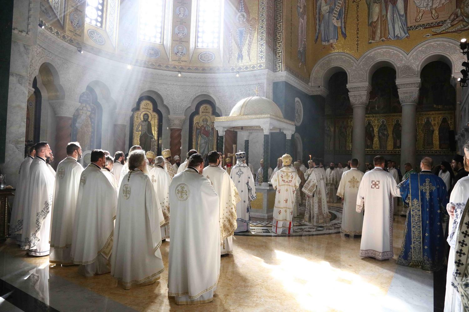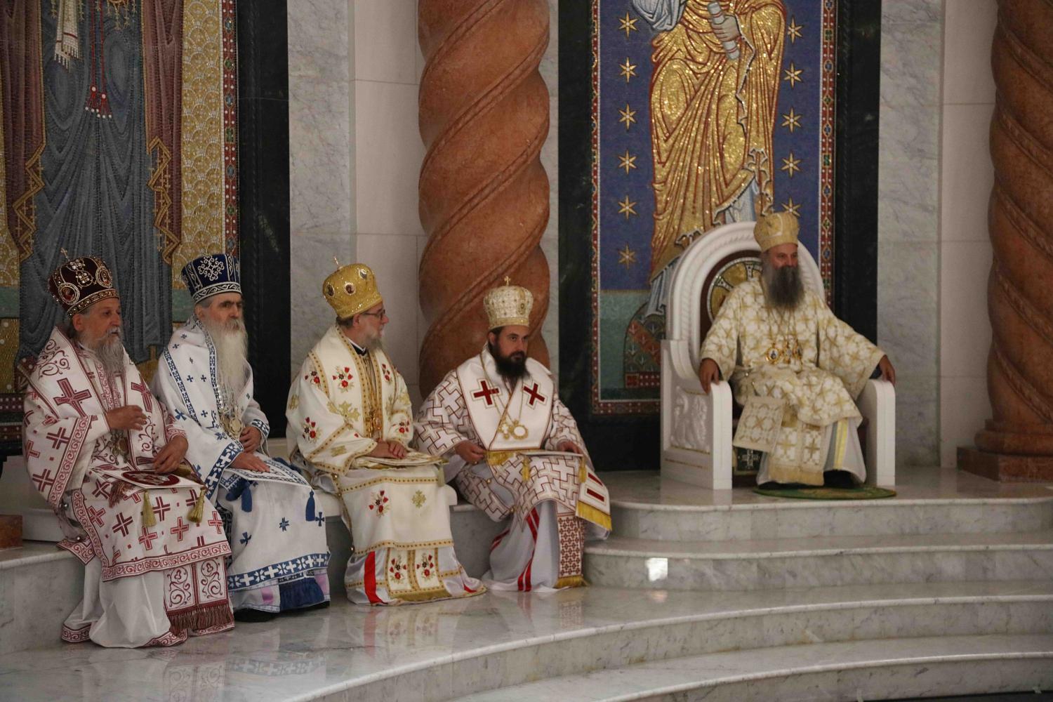 Предстојатељу Српске Православне Цркве саслуживали су Његово Блаженство Архиепископ охридски и Митрополит скопски г. Јован; Преосвећена господа Епископи сремски Василије, банатски Никанор, бачки Иринеј, британско-скандинавски Доситеј, врањски Пахомије, шумадијски Јован, зворничко-тузлански Фотије, милешевски Атанасије, нишки Арсеније, буеносајреско-јужноамерички Кирило, далматински Никодим, осечкопољски и барањски Херувим, ваљевски Исихије, моравички Антоније, стобијски Давид, ремезијански Стефан, диоклијски и изабрани будимљанско-никшићки Методије, топлички Јеротеј, умировљени канадски Георгије и умировљени средњоевропски Константин; изабрани Епископи мохачки Дамаскин, марчански Сава и хумски Јован; свештенство и свештеномонаштво из више епархија Српске Цркве.