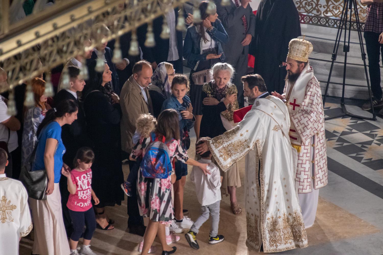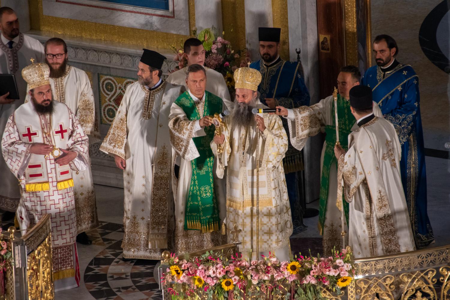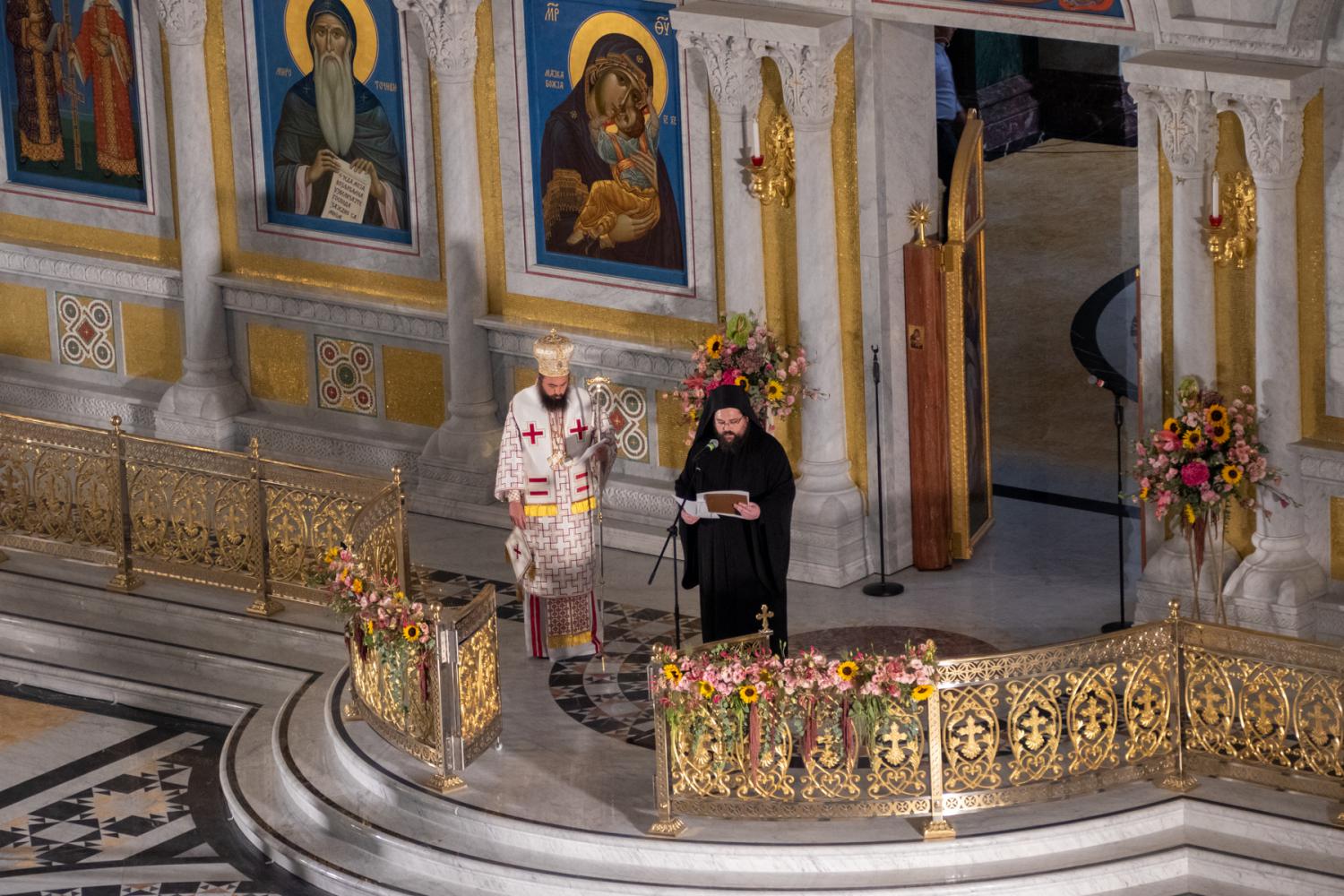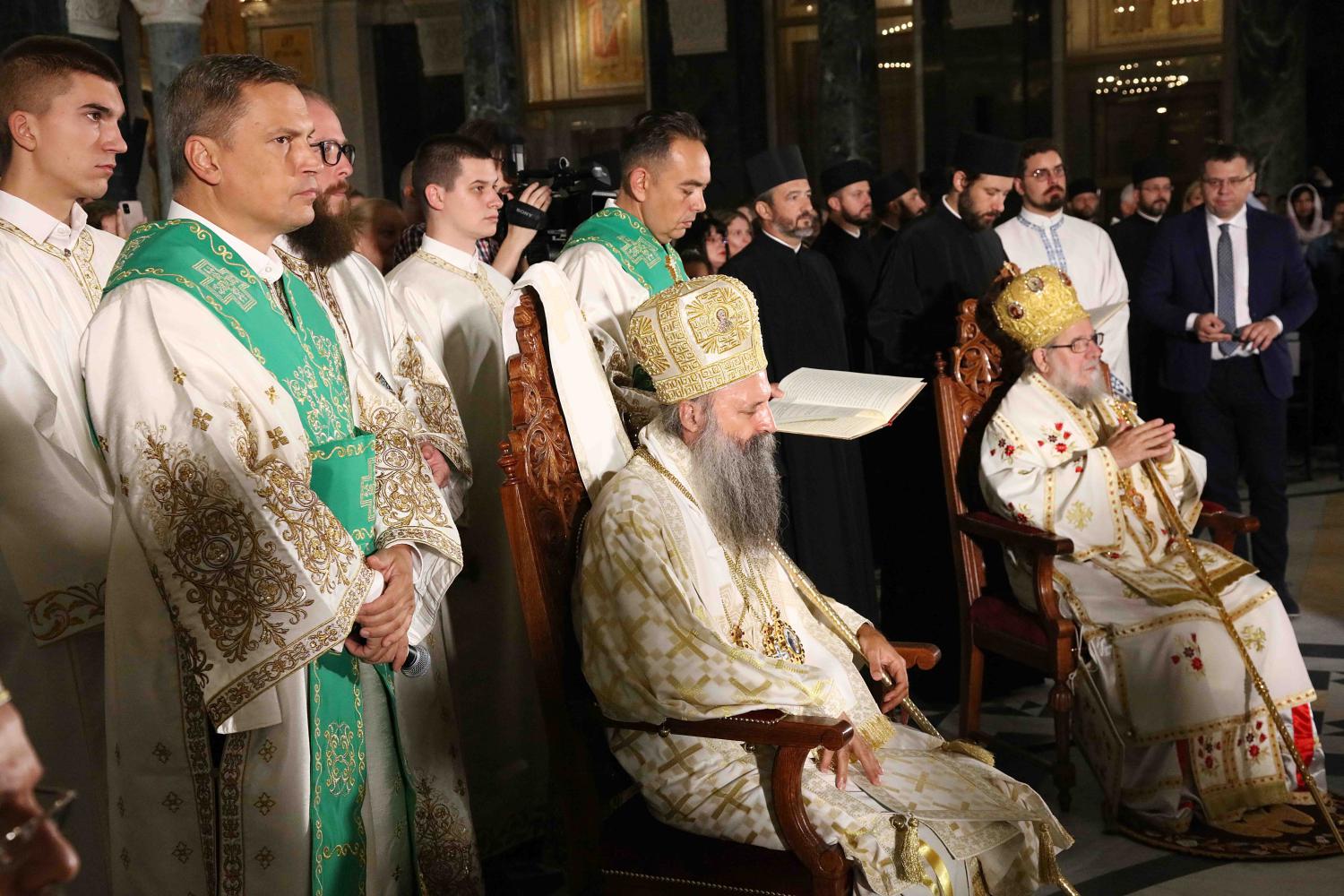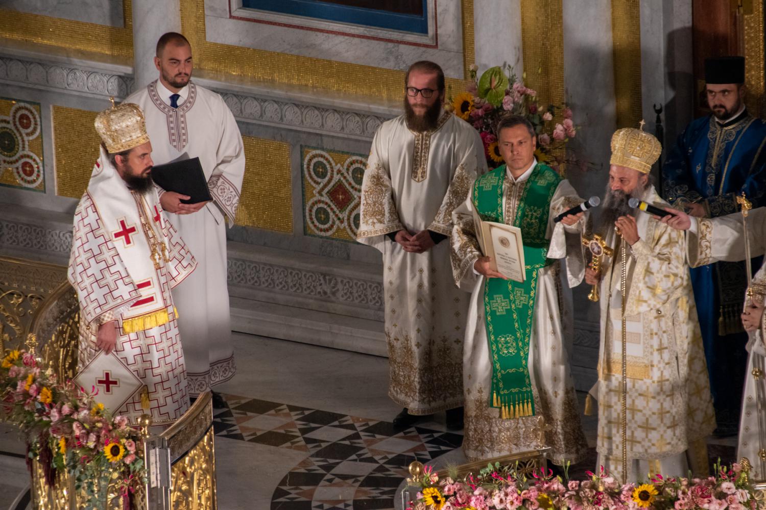 Предстојатељу Српске Православне Цркве саслуживали су Његово Блаженство Архиепископ охридски и Митрополит скопски г. Јован; Преосвећена господа Епископи сремски Василије, банатски Никанор, бачки Иринеј, британско-скандинавски Доситеј, врањски Пахомије, шумадијски Јован, зворничко-тузлански Фотије, милешевски Атанасије, нишки Арсеније, буеносајреско-јужноамерички Кирило, далматински Никодим, осечкопољски и барањски Херувим, ваљевски Исихије, моравички Антоније, стобијски Давид, ремезијански Стефан, диоклијски и изабрани будимљанско-никшићки Методије, топлички Јеротеј, умировљени канадски Георгије и умировљени средњоевропски Константин; изабрани Епископи мохачки Дамаскин, марчански Сава и хумски Јован; свештенство и свештеномонаштво из више епархија Српске Цркве.