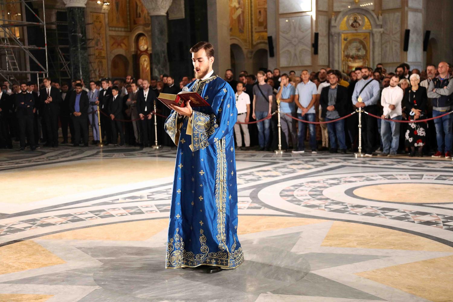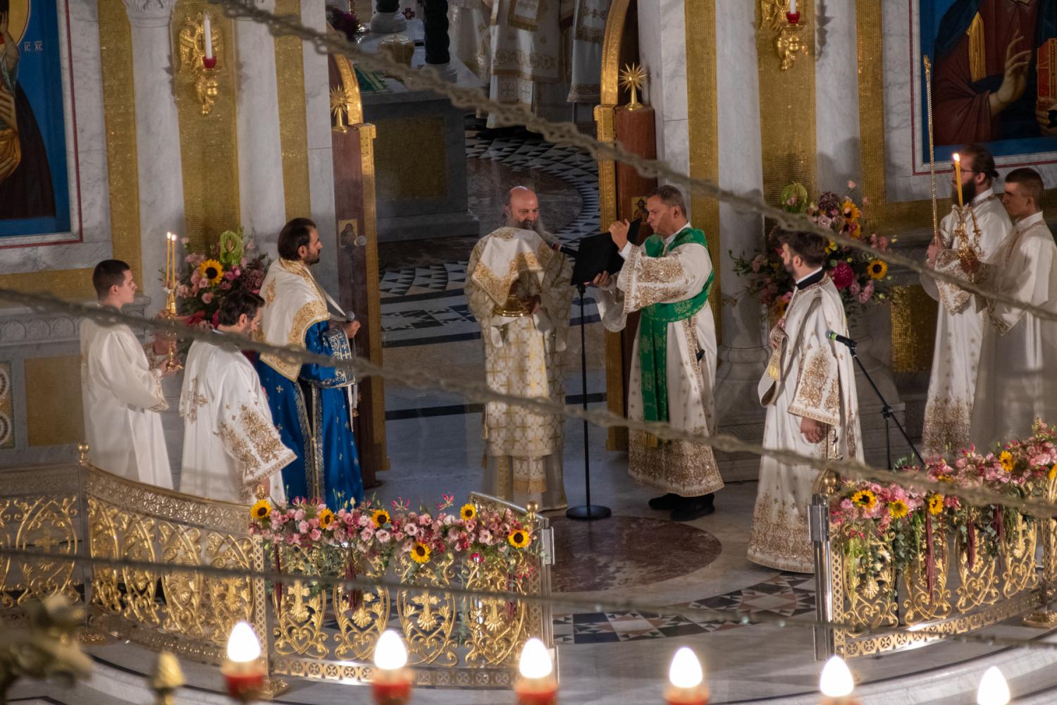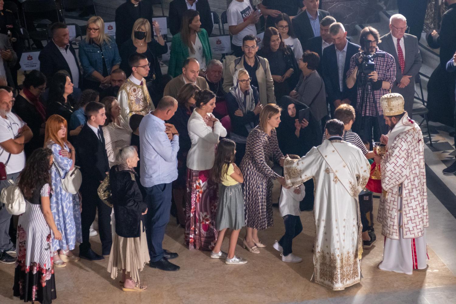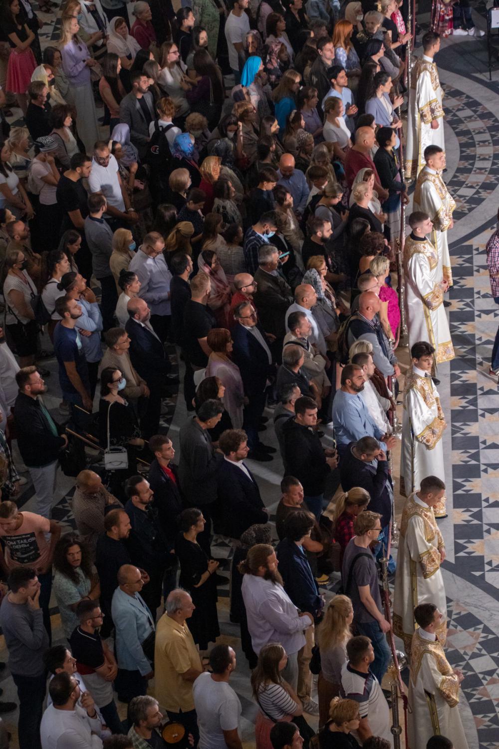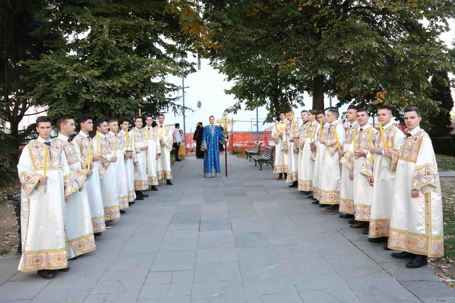 Предстојатељу Српске Православне Цркве саслуживали су Његово Блаженство Архиепископ охридски и Митрополит скопски г. Јован; Преосвећена господа Епископи сремски Василије, банатски Никанор, бачки Иринеј, британско-скандинавски Доситеј, врањски Пахомије, шумадијски Јован, зворничко-тузлански Фотије, милешевски Атанасије, нишки Арсеније, буеносајреско-јужноамерички Кирило, далматински Никодим, осечкопољски и барањски Херувим, ваљевски Исихије, моравички Антоније, стобијски Давид, ремезијански Стефан, диоклијски и изабрани будимљанско-никшићки Методије, топлички Јеротеј, умировљени канадски Георгије и умировљени средњоевропски Константин; изабрани Епископи мохачки Дамаскин, марчански Сава и хумски Јован; свештенство и свештеномонаштво из више епархија Српске Цркве.
