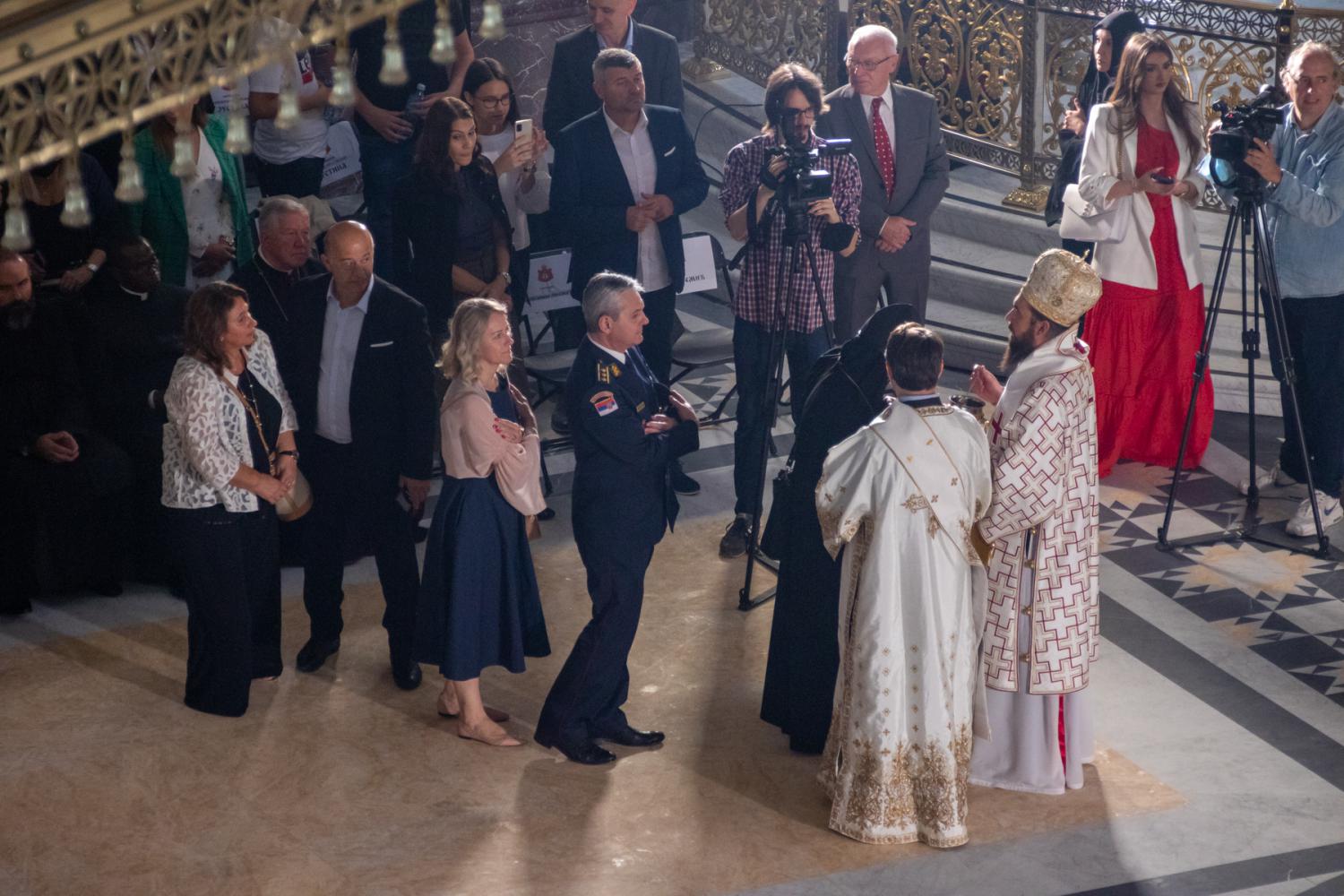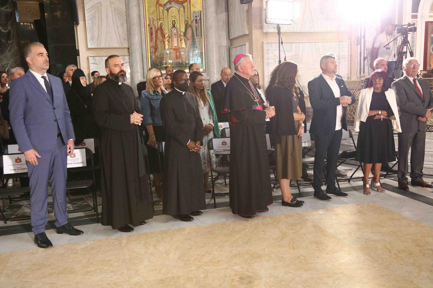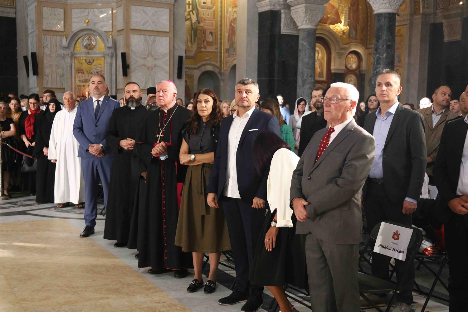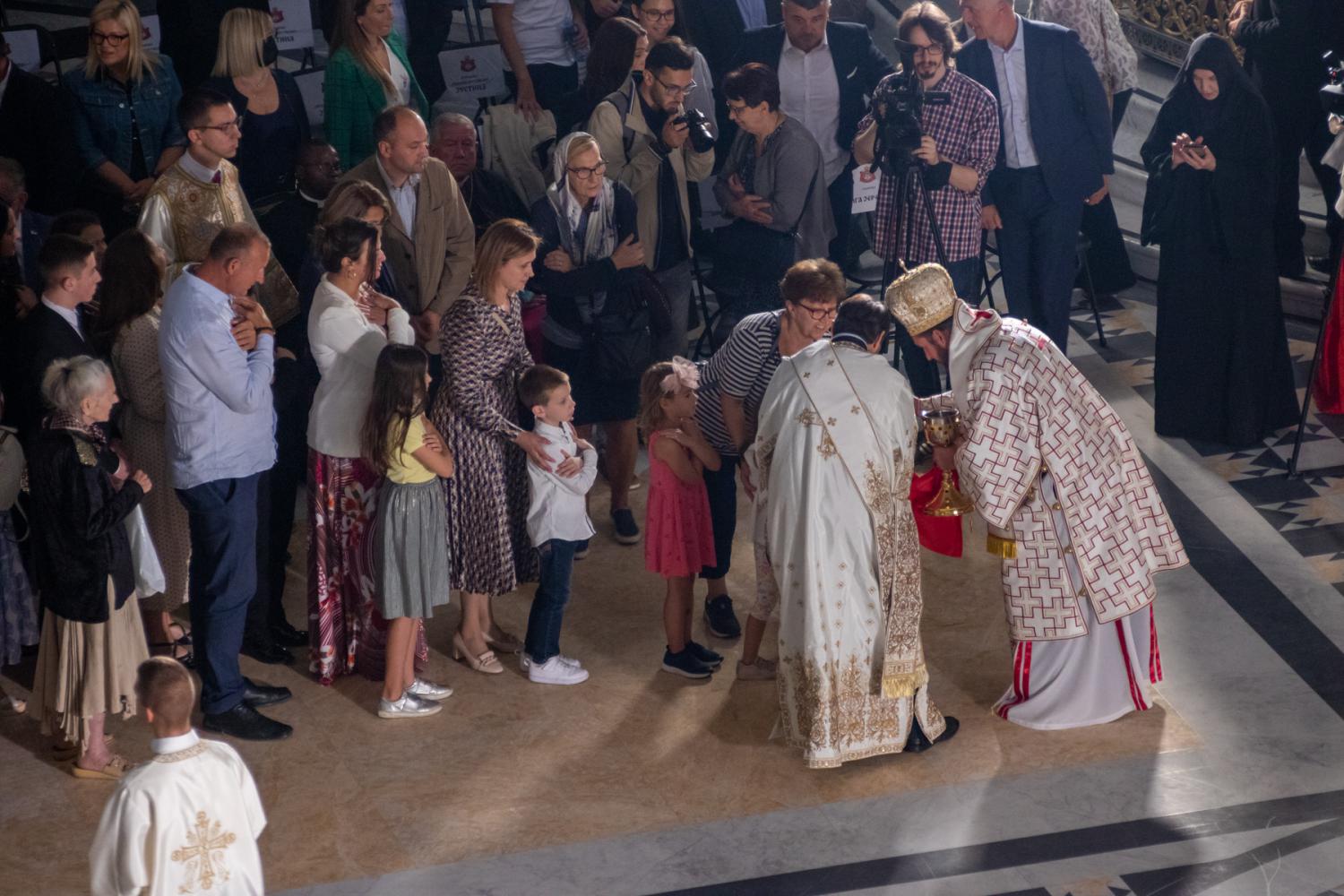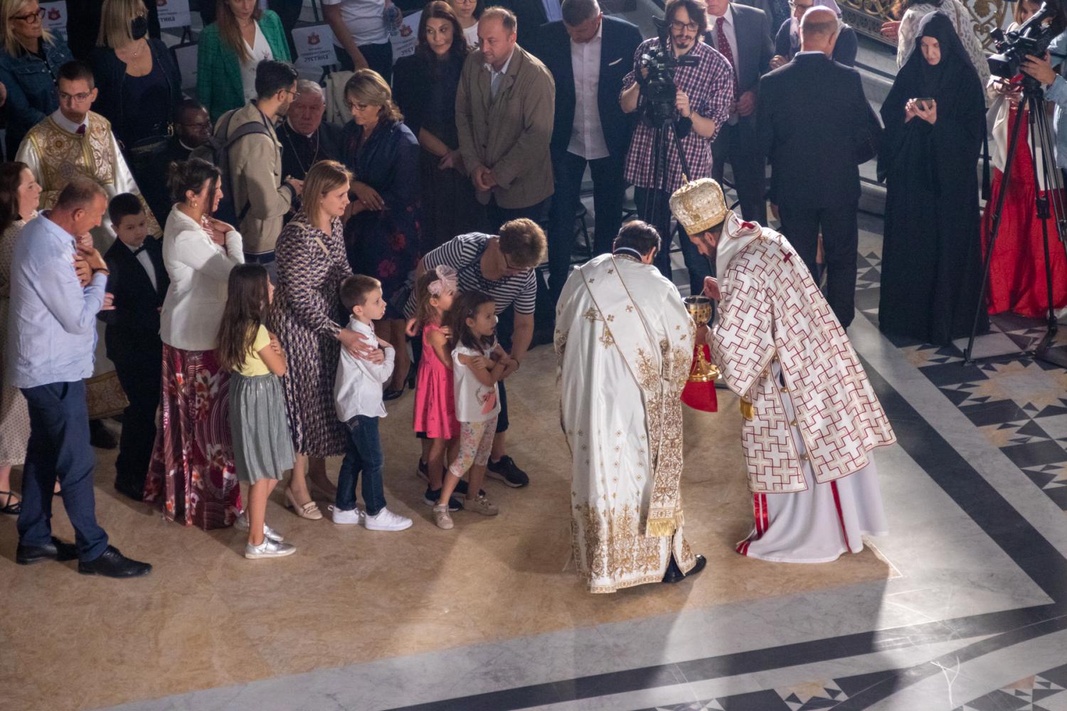 Предстојатељу Српске Православне Цркве саслуживали су Његово Блаженство Архиепископ охридски и Митрополит скопски г. Јован; Преосвећена господа Епископи сремски Василије, банатски Никанор, бачки Иринеј, британско-скандинавски Доситеј, врањски Пахомије, шумадијски Јован, зворничко-тузлански Фотије, милешевски Атанасије, нишки Арсеније, буеносајреско-јужноамерички Кирило, далматински Никодим, осечкопољски и барањски Херувим, ваљевски Исихије, моравички Антоније, стобијски Давид, ремезијански Стефан, диоклијски и изабрани будимљанско-никшићки Методије, топлички Јеротеј, умировљени канадски Георгије и умировљени средњоевропски Константин; изабрани Епископи мохачки Дамаскин, марчански Сава и хумски Јован; свештенство и свештеномонаштво из више епархија Српске Цркве.