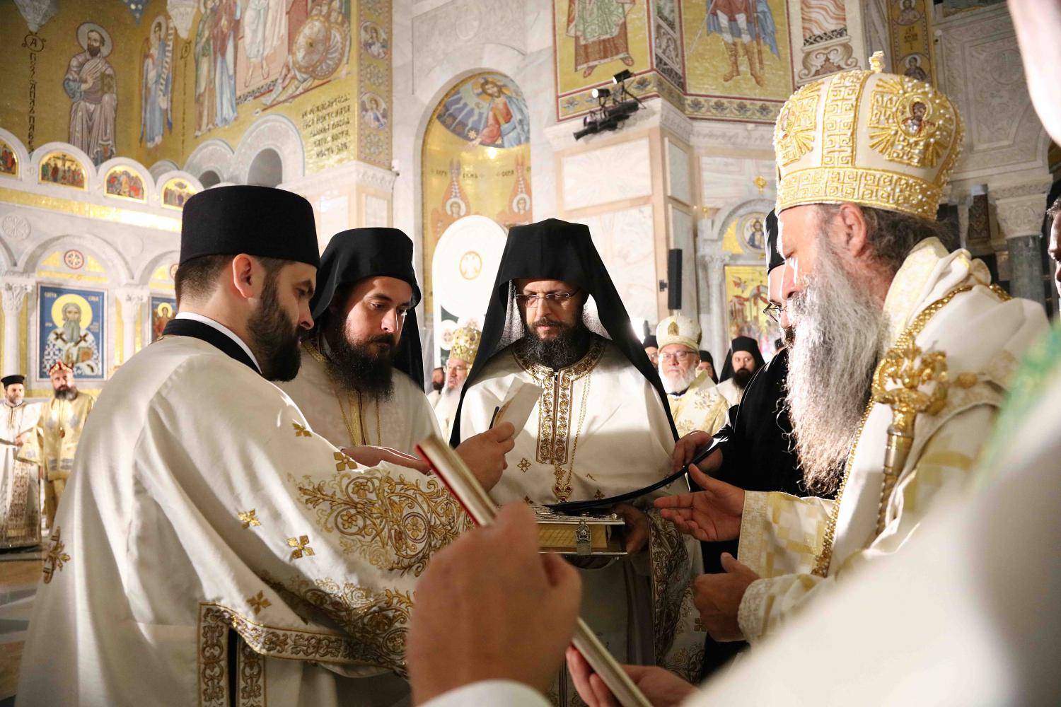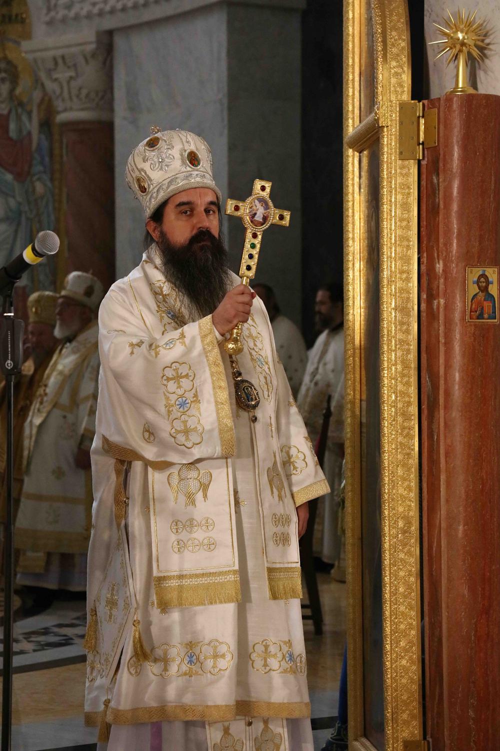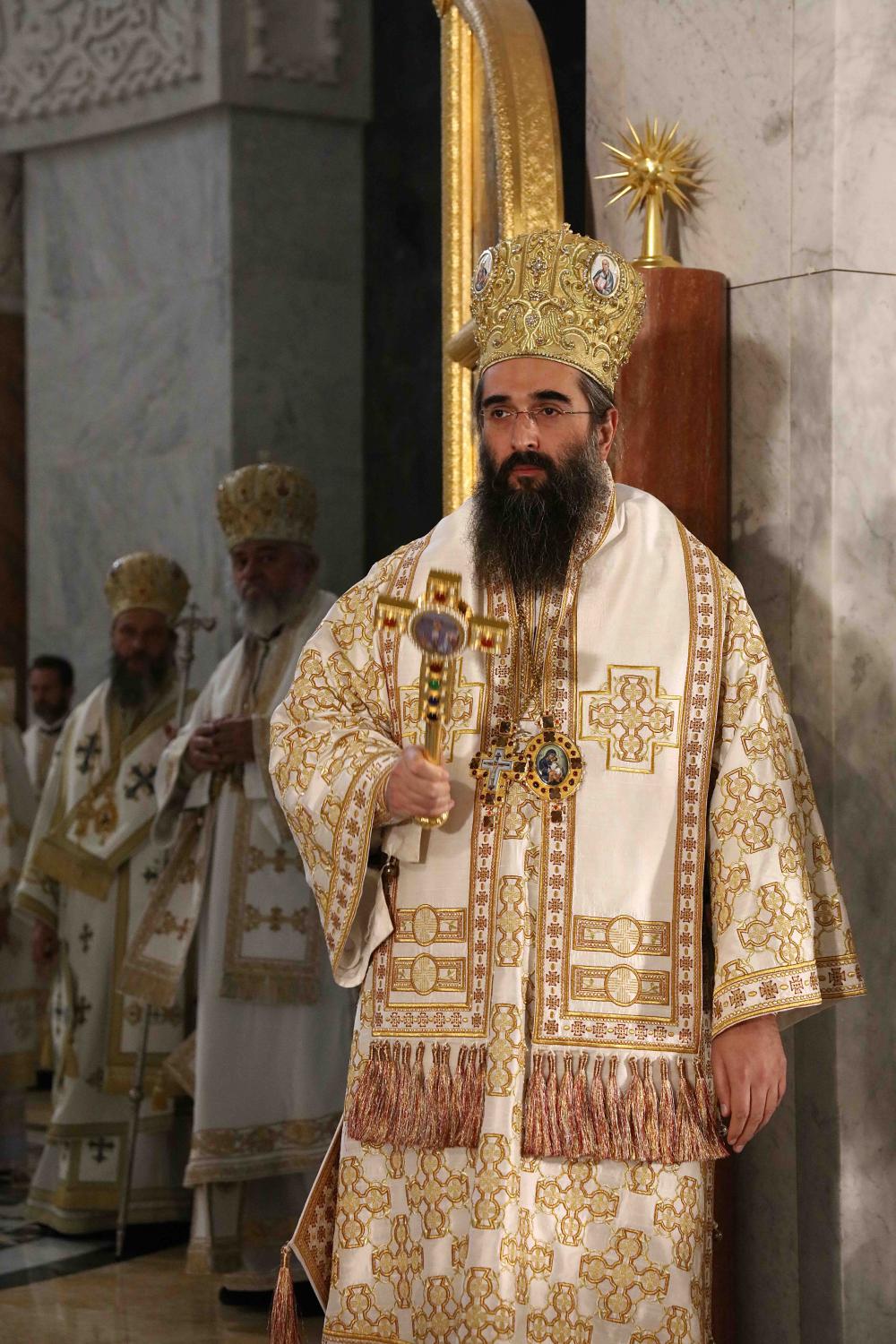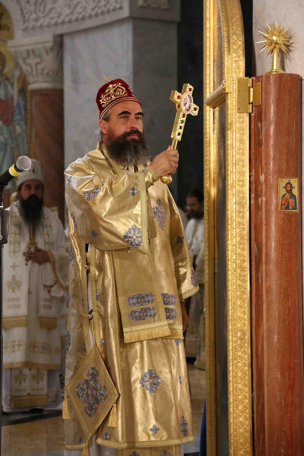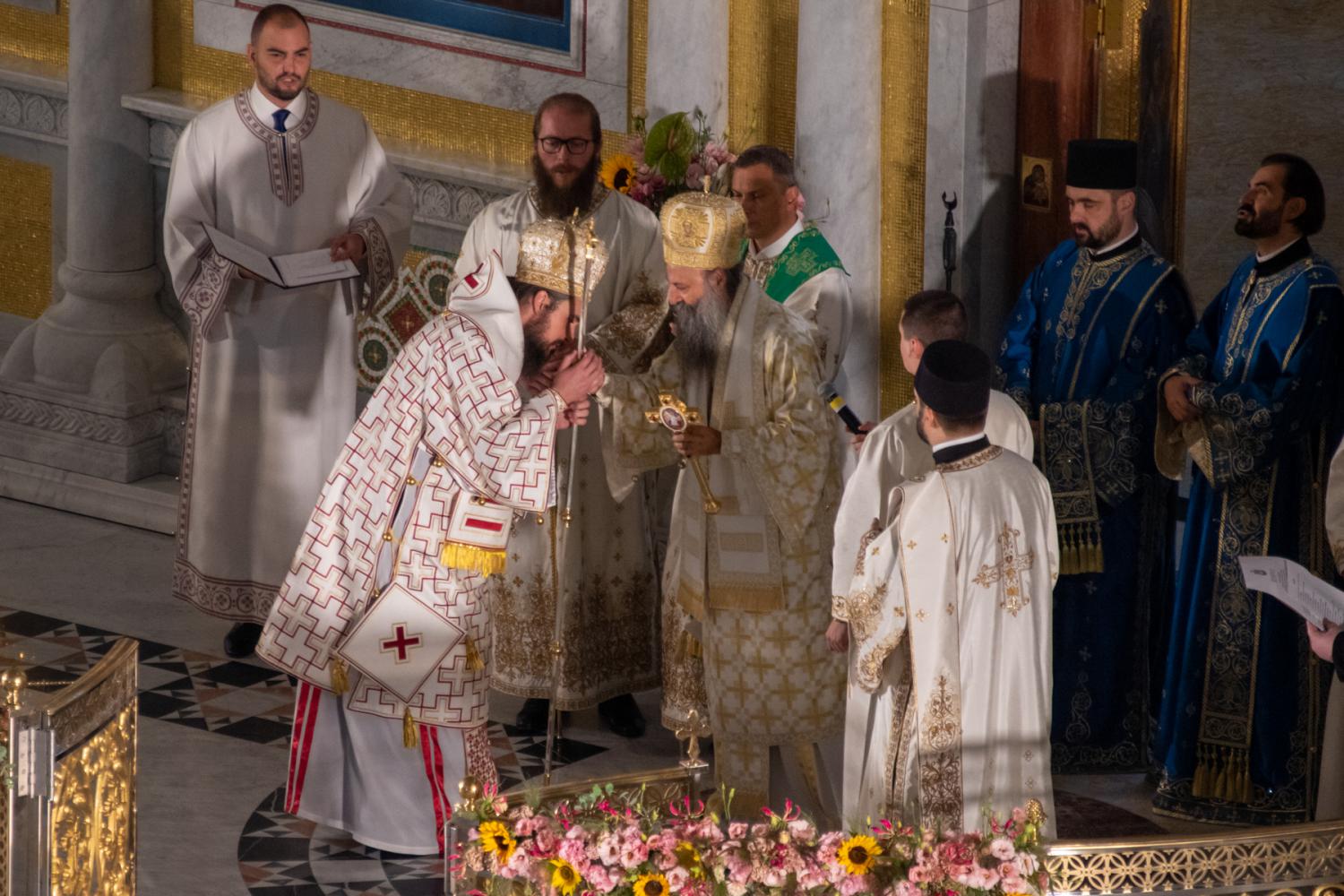 Уручијући архијерејски жезал епископу Јустину, Његова Светост Патријарх српски г. Порфирије је истакао: -Данас смо имали радостан духовни догађај пре свега што смо учествовали у тајни Царства Небеског кроз причешће Светим Телом и Крвљу Господа и Спаситеља нашега Исуса Христа који је Глава Цркве, који је у пуноћи својој присутан у светој Литургији. А тамо где је Он, ту је и Царство Небеско. Из тајне свете Литургије, која је управо оприсутњење Царства Небеског међу нама, налазе се и све остале тајне Цркве. Јер Литургију, Тајну Спасења, врши сам Распети и Васкрсли Господ, а на Његовом месту и по Његовом обличју, од апостолских времена па до данас, Црква је установила да стоје Епископи. Данас смо имали велики духовни благослов да имамо хиротонију још једног новог Епископа Цркве.