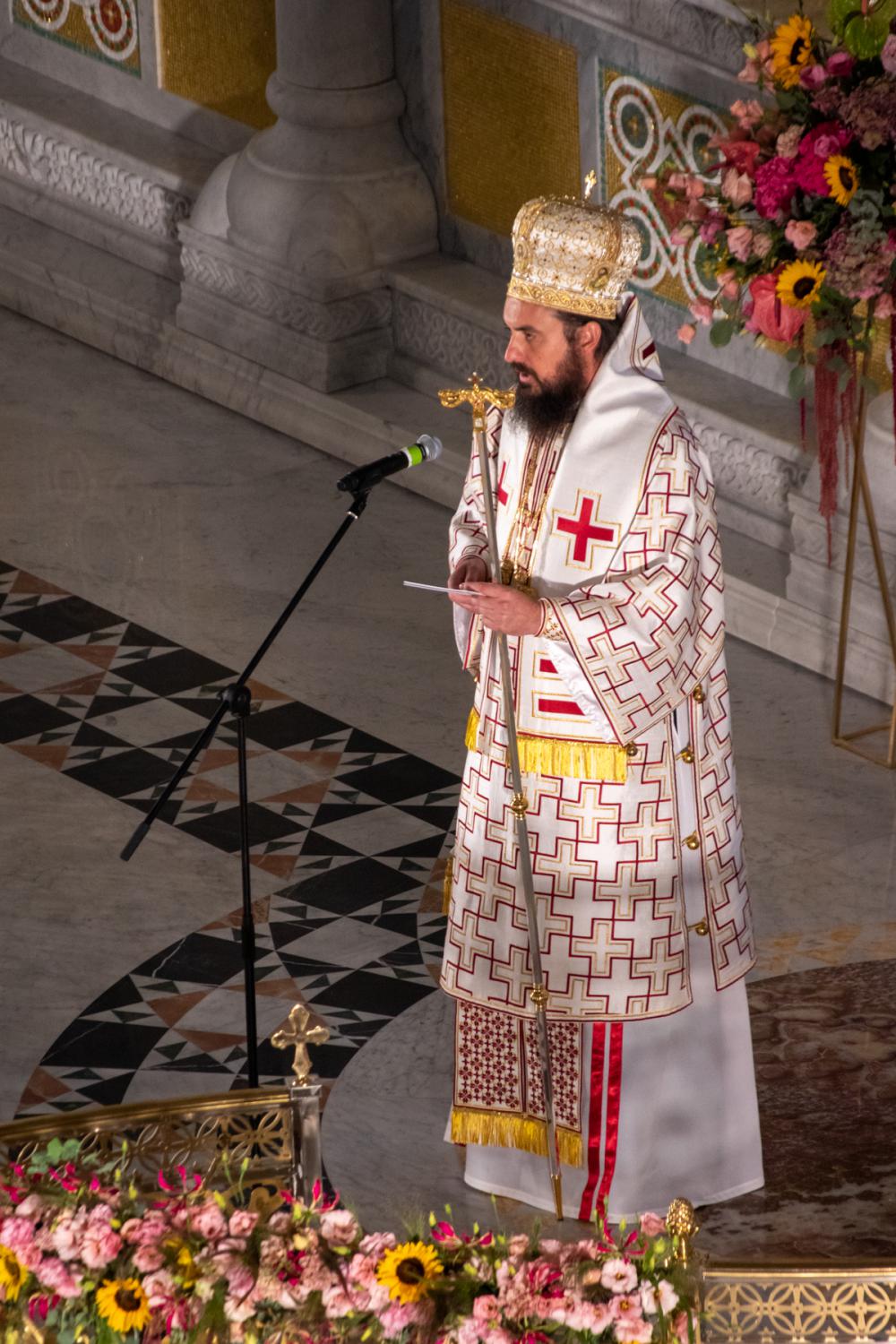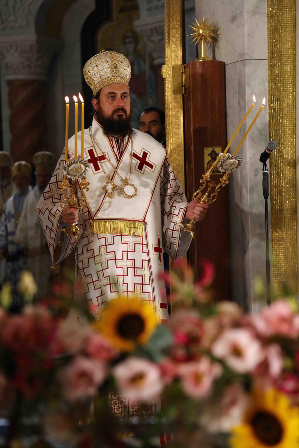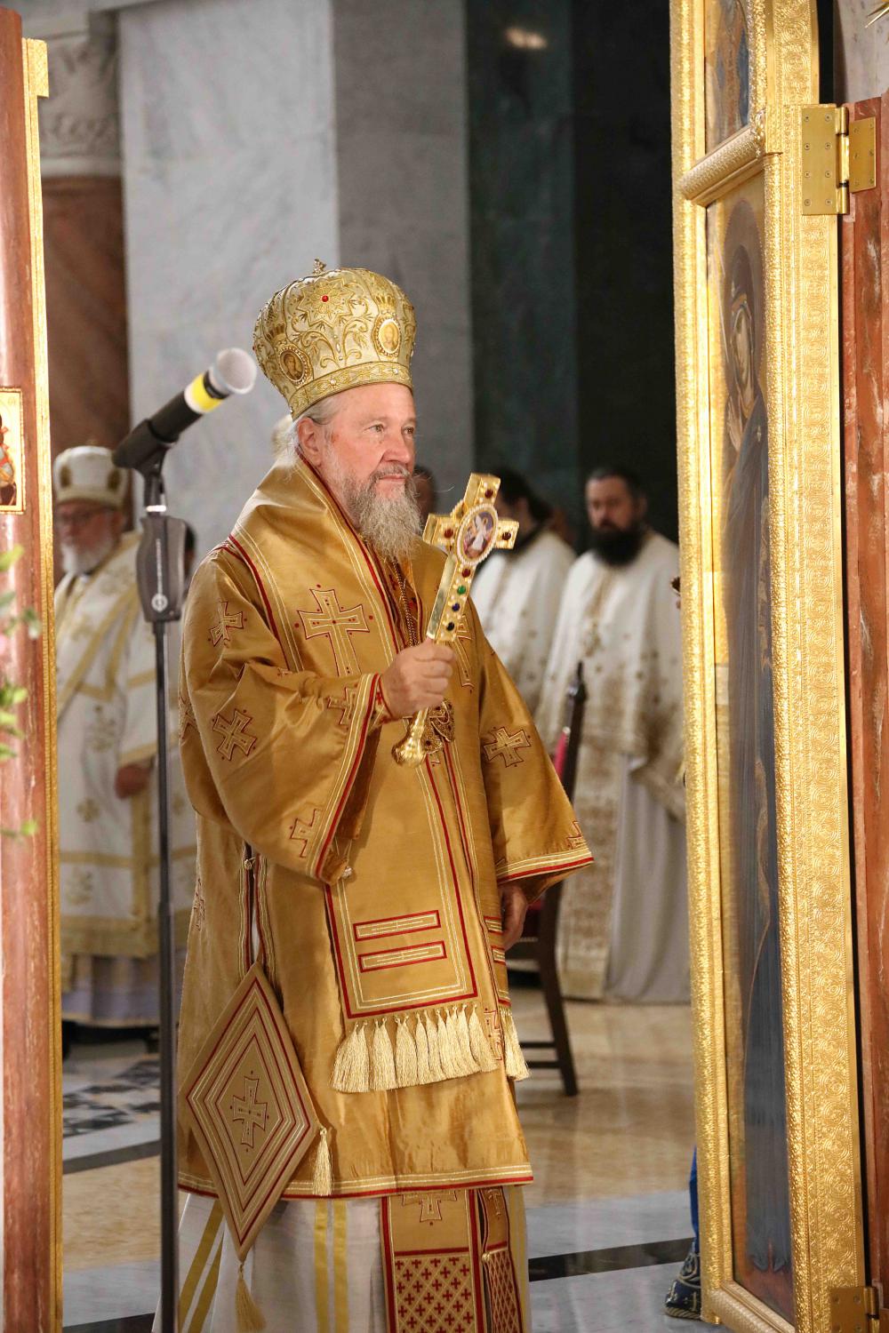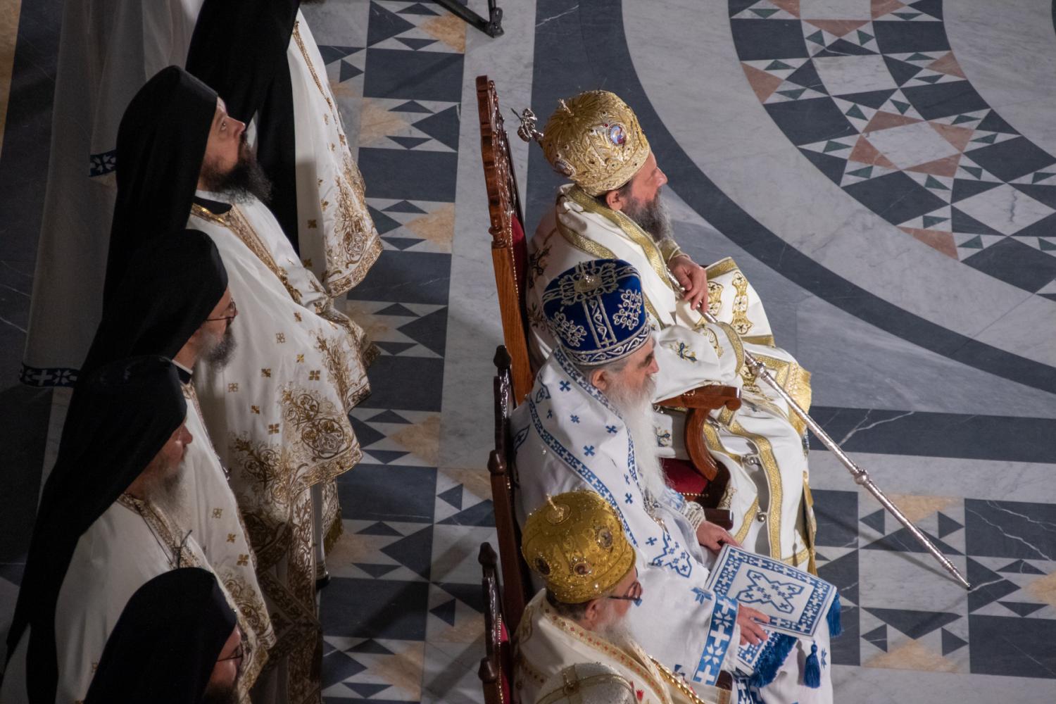 Уручијући архијерејски жезал епископу Јустину, Његова Светост Патријарх српски г. Порфирије је истакао: -Данас смо имали радостан духовни догађај пре свега што смо учествовали у тајни Царства Небеског кроз причешће Светим Телом и Крвљу Господа и Спаситеља нашега Исуса Христа који је Глава Цркве, који је у пуноћи својој присутан у светој Литургији. А тамо где је Он, ту је и Царство Небеско. Из тајне свете Литургије, која је управо оприсутњење Царства Небеског међу нама, налазе се и све остале тајне Цркве. Јер Литургију, Тајну Спасења, врши сам Распети и Васкрсли Господ, а на Његовом месту и по Његовом обличју, од апостолских времена па до данас, Црква је установила да стоје Епископи. Данас смо имали велики духовни благослов да имамо хиротонију још једног новог Епископа Цркве.