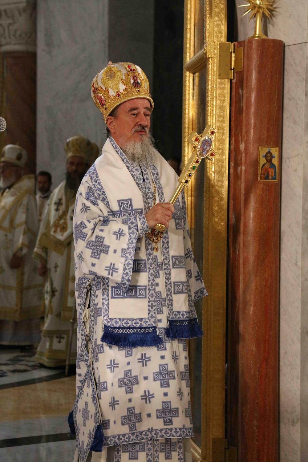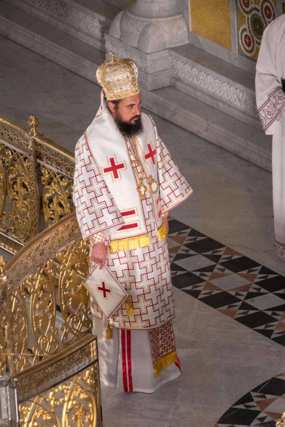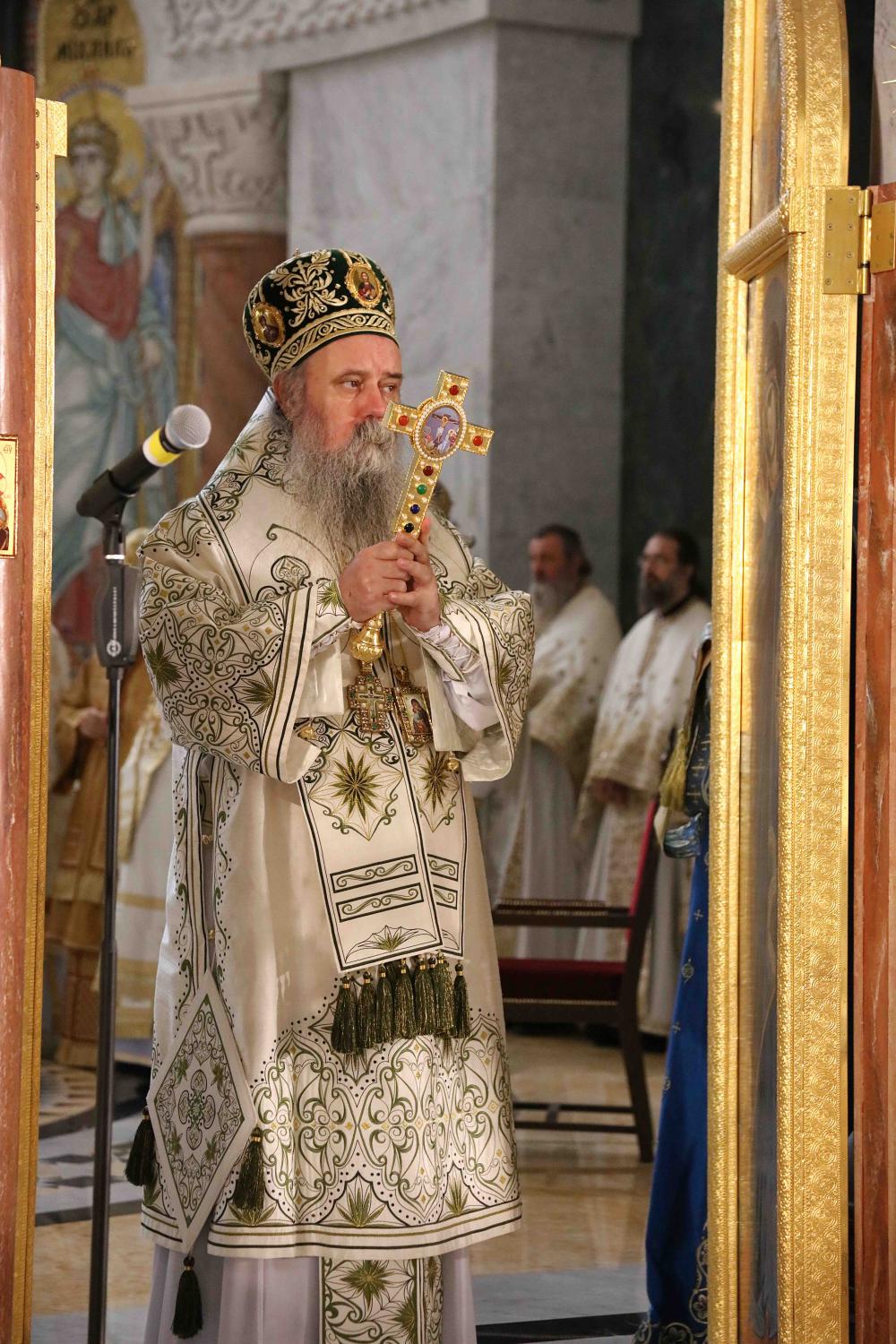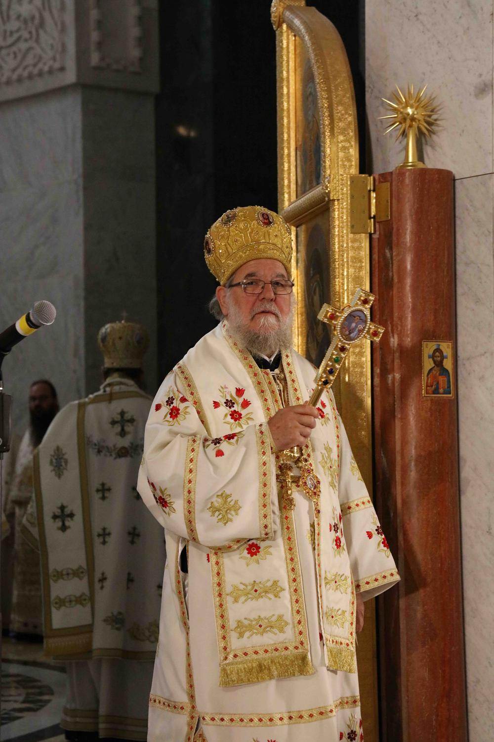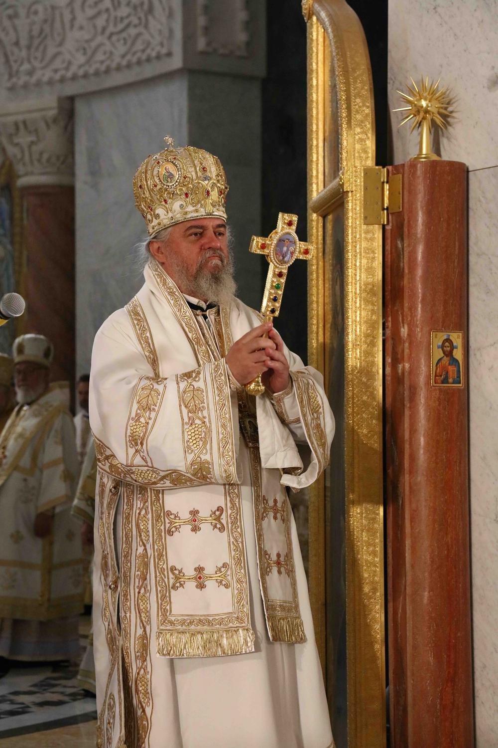 Уручијући архијерејски жезал епископу Јустину, Његова Светост Патријарх српски г. Порфирије је истакао: -Данас смо имали радостан духовни догађај пре свега што смо учествовали у тајни Царства Небеског кроз причешће Светим Телом и Крвљу Господа и Спаситеља нашега Исуса Христа који је Глава Цркве, који је у пуноћи својој присутан у светој Литургији. А тамо где је Он, ту је и Царство Небеско. Из тајне свете Литургије, која је управо оприсутњење Царства Небеског међу нама, налазе се и све остале тајне Цркве. Јер Литургију, Тајну Спасења, врши сам Распети и Васкрсли Господ, а на Његовом месту и по Његовом обличју, од апостолских времена па до данас, Црква је установила да стоје Епископи. Данас смо имали велики духовни благослов да имамо хиротонију још једног новог Епископа Цркве.