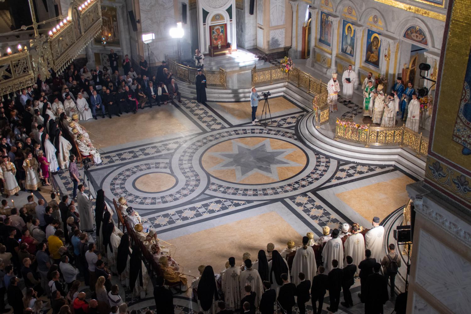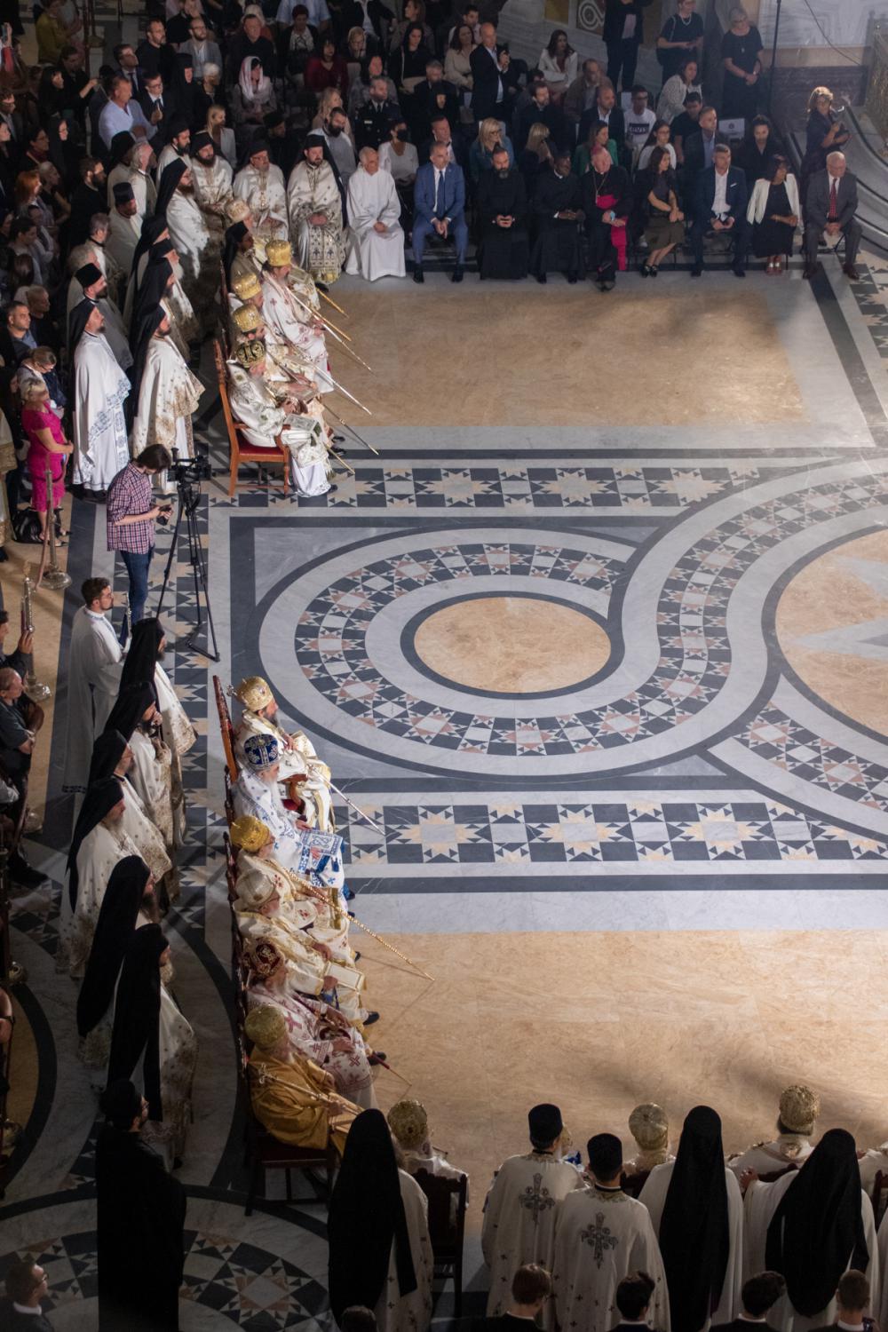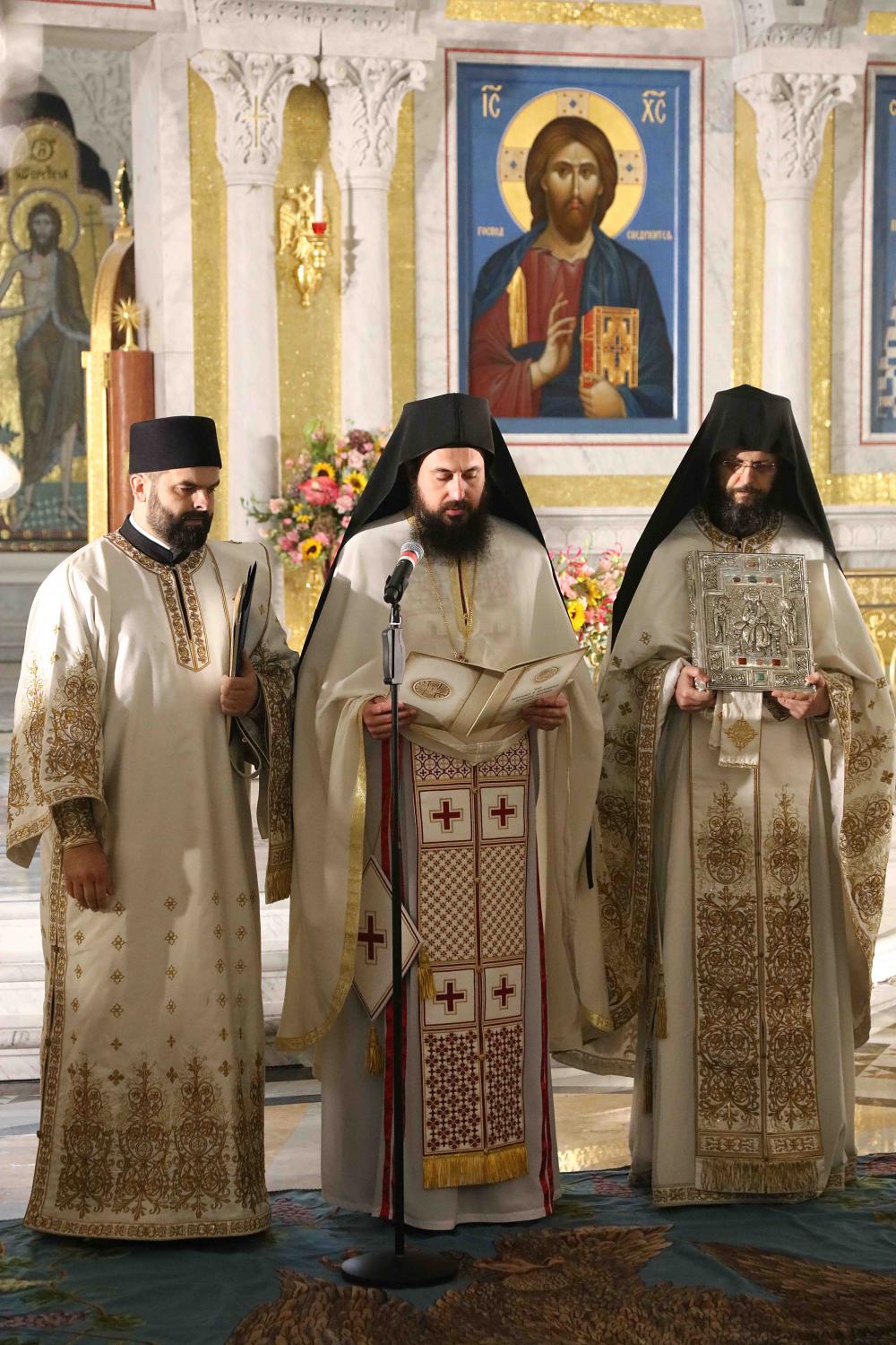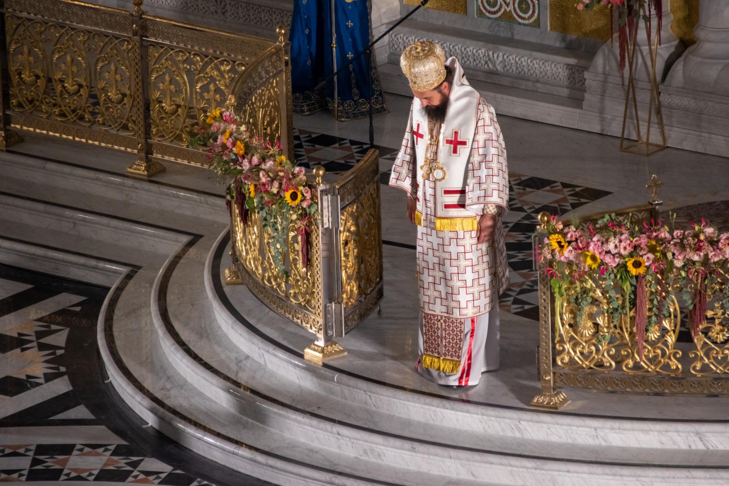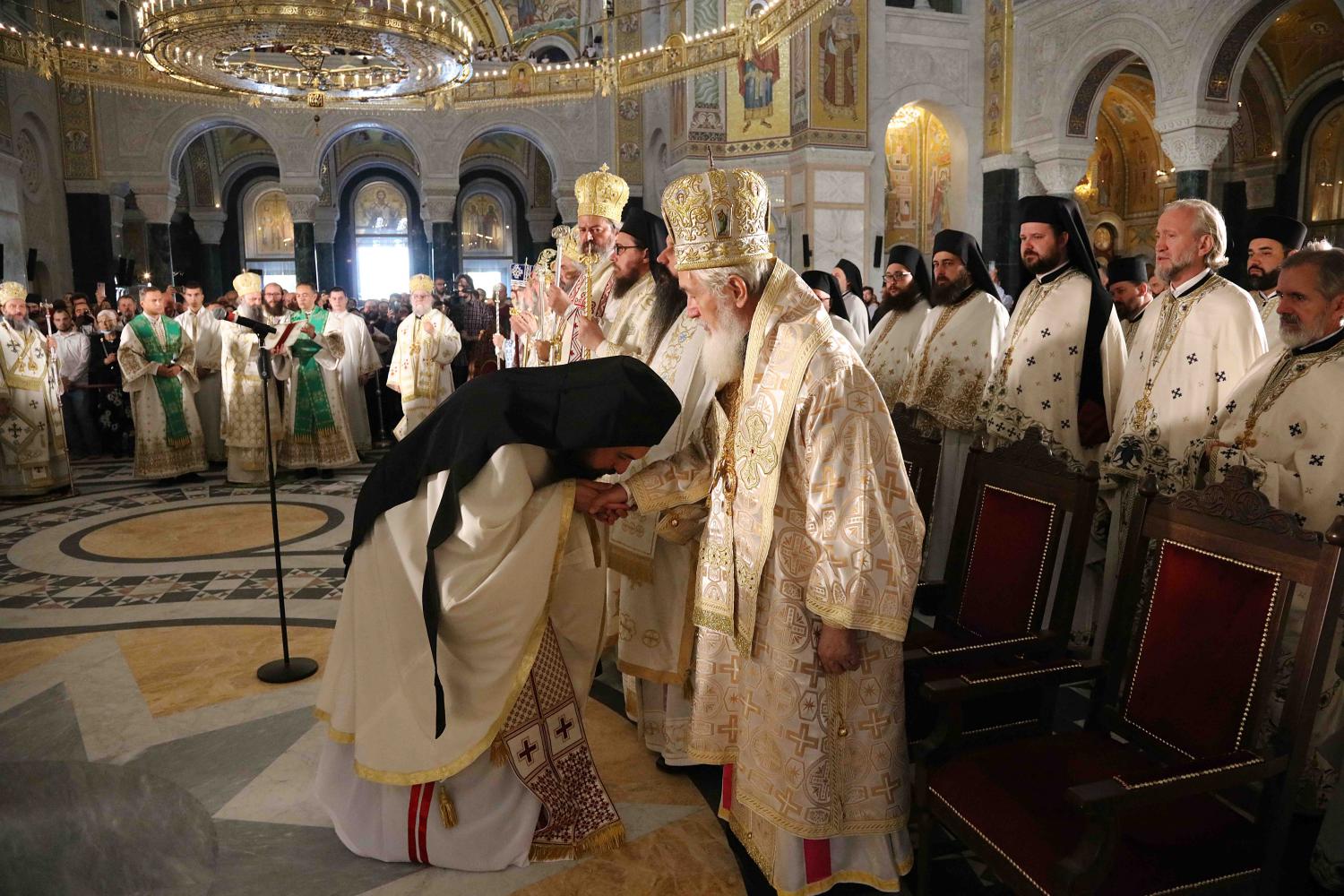 Уручијући архијерејски жезал епископу Јустину, Његова Светост Патријарх српски г. Порфирије је истакао: -Данас смо имали радостан духовни догађај пре свега што смо учествовали у тајни Царства Небеског кроз причешће Светим Телом и Крвљу Господа и Спаситеља нашега Исуса Христа који је Глава Цркве, који је у пуноћи својој присутан у светој Литургији. А тамо где је Он, ту је и Царство Небеско. Из тајне свете Литургије, која је управо оприсутњење Царства Небеског међу нама, налазе се и све остале тајне Цркве. Јер Литургију, Тајну Спасења, врши сам Распети и Васкрсли Господ, а на Његовом месту и по Његовом обличју, од апостолских времена па до данас, Црква је установила да стоје Епископи. Данас смо имали велики духовни благослов да имамо хиротонију још једног новог Епископа Цркве.