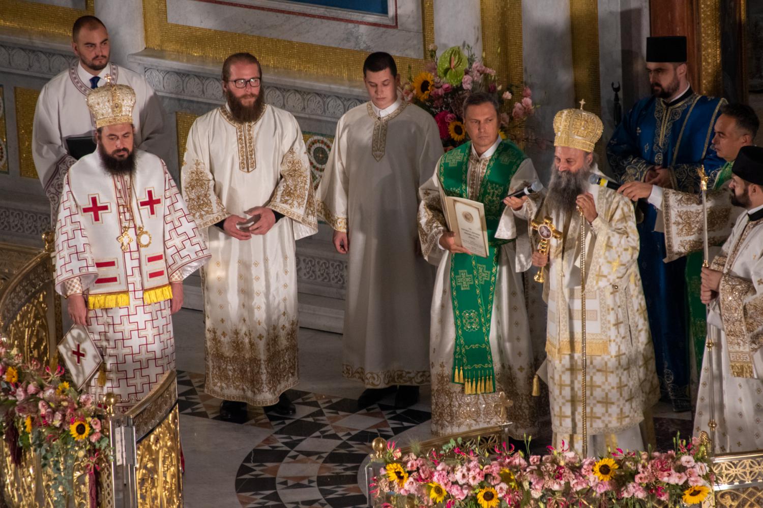 -Драги владико Јустине, данас си узведен на најузвишенију службу у Цркви Христовој. Добио си највећу могућу част силаском Светога Духа на исти начин на који је Он сишао на дан Свете Педесетнице и конституисао Цркву Христову у свету. Слижба Епископа је par excellence Христова служба. А то значи да је поред части коју си добио теби дата и одговорност да у име Христово служиш свету Литургију и то желим да ти ставим на срце. Управо света Литургија је задатак твој и задатак свих Епископа. Да није ништа друго, да је само то, испунио си своју службу, јер ако служимо свету Литургију и ако се на њој све темељи све остало биће учињено у право време и у правој мери, поручио је патријарх Порфирије.