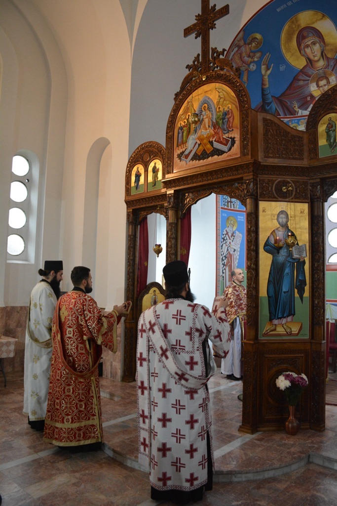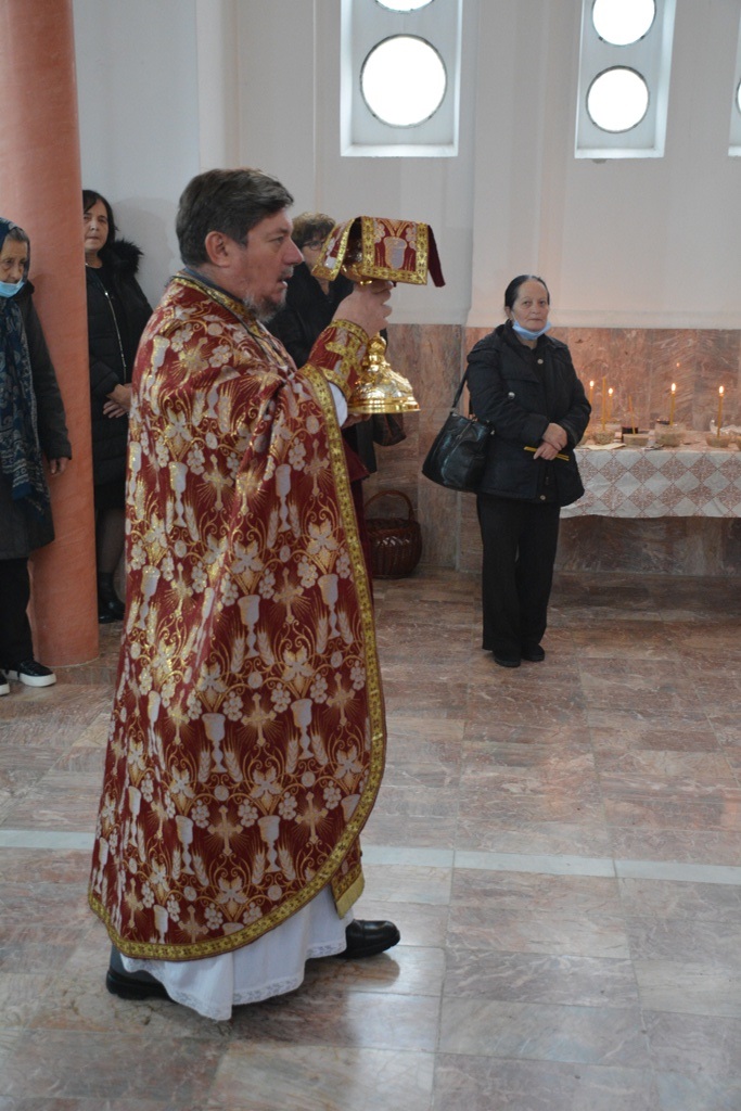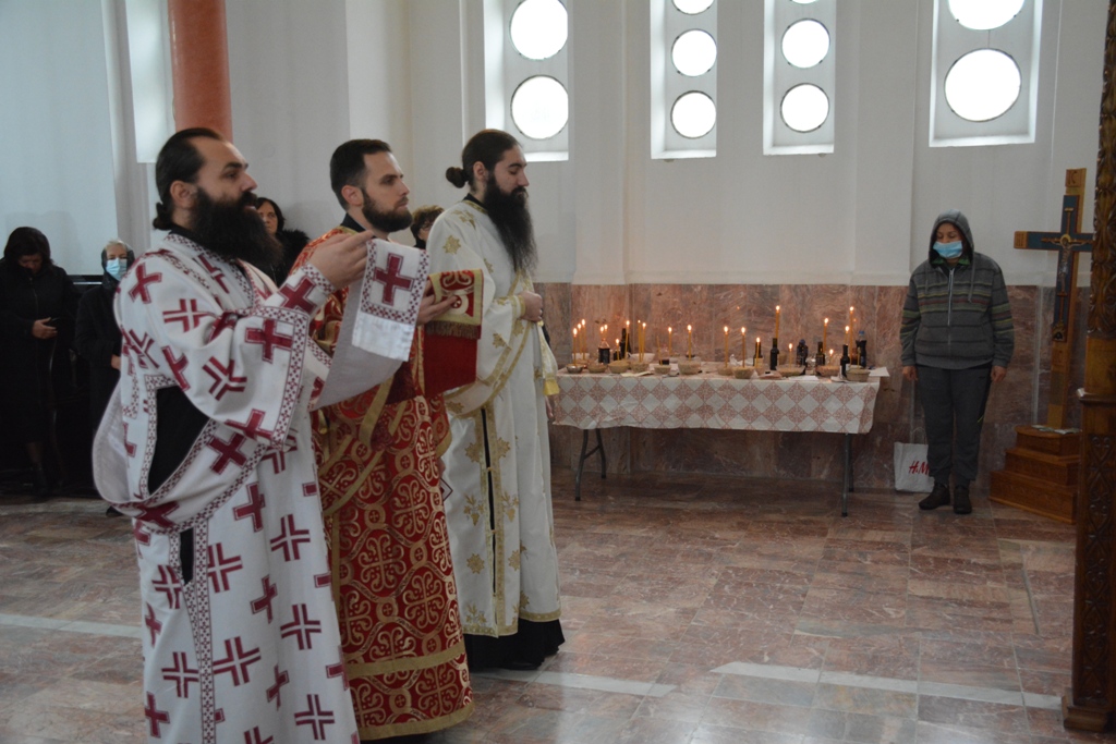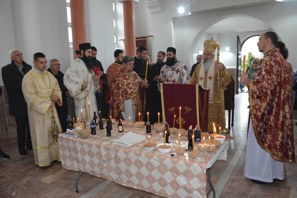 У наставку свете литургије, Преосвећени је одслужио парастос упокојеним оцима, праоцима, сродницима, и свима који почивају на овом светом месту и свуда у православљу, не препуштајући их времену и забораву, него их се вечно сећајући. По завршеном парастосу, Преосвећени Владика је обишао гробове који се налазе у близини храма, одслуживши краћи помен и преливши их вином.
