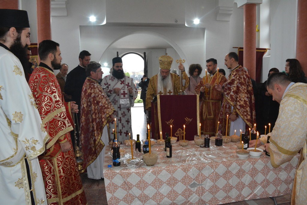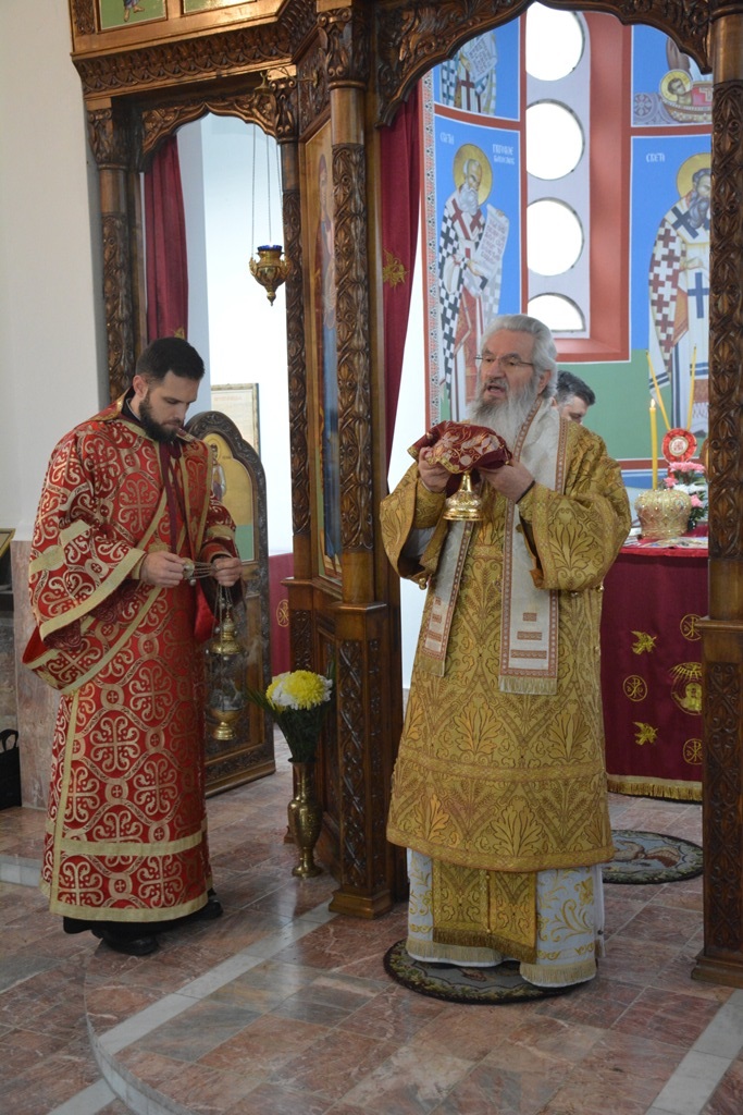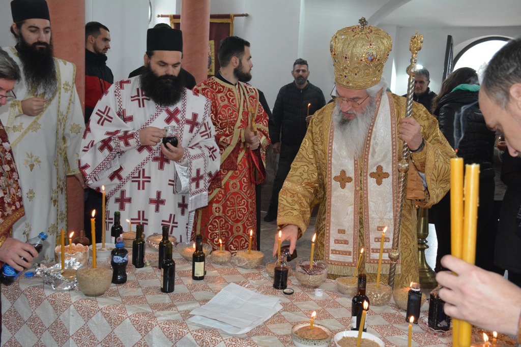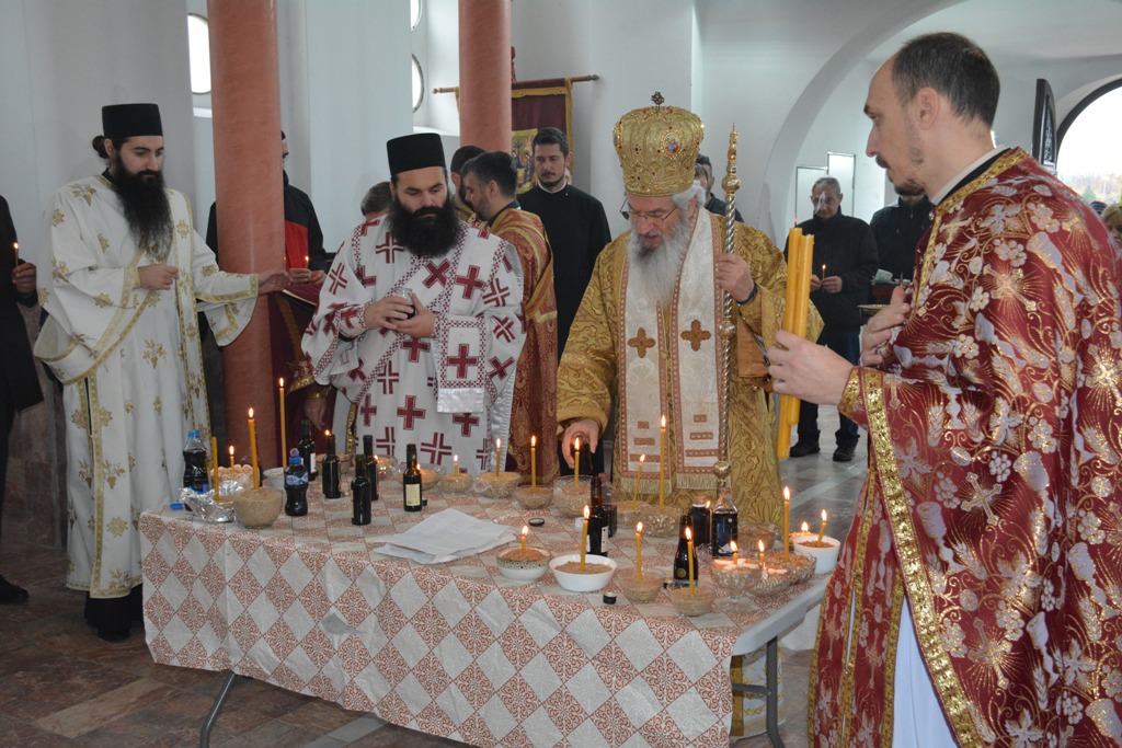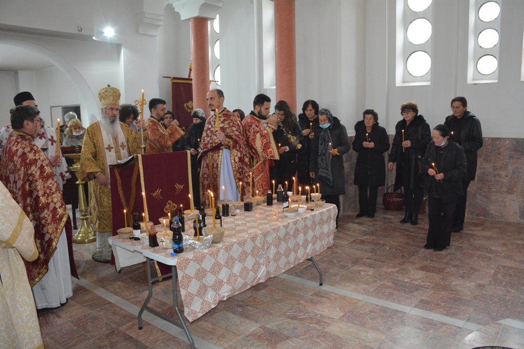У наставку свете литургије, Преосвећени је одслужио парастос упокојеним оцима, праоцима, сродницима, и свима који почивају на овом светом месту и свуда у православљу, не препуштајући их времену и забораву, него их се вечно сећајући. По завршеном парастосу, Преосвећени Владика је обишао гробове који се налазе у близини храма, одслуживши краћи помен и преливши их вином.