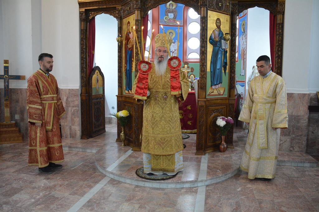 По прочитаном Јеванђељу, Преосвећени се обратио верном народу: „Данас смо се сабрали у овом храму који је окружен гробовима наших најмилијих да принесемо Господу бескрвну жртву и молитве, а литургија се служи и литургијом се молимо подједнако како за живе тако и за мртве. Благо оном народу у коме постоји литургија. Литургија обједињује и небо и земљу и прошлост и садашњост и све претвара у будућност. Литургијски помен који ми чинимо кроз литургију а то је кроз помен Господа нашега Исуса Христа и свега онога што је Господ учинио за нас, а учинио је све, првенствено дарујући нам живот вечни. Ми служимо у тај спомен и за живе и за мртве и зато је много важно да доносимо имена својих живих и мртвих и да дамо свештенику да он њих спомене на проскомидији да извади ону частицу. Ми свештеници када проскомидишемо ми изговарамо имена и живих и мртвих. У словенским народима постоји обичај да поред имена доноси у цркву и оне мале просфорице са именима, да свештеник извади из те просфоре частице и да их врати да би се та просфора појела са осталим чељадима у кући. Колико је важно то помињање имамо пример из осамнаестога века, када је свештеник пресвлачио нетрулежно тело светог Антонија Черногорског, и каже пресвлачећи их заморио се и приспао. Јавио му се свети Теодосије, и рекао: „Оче хвала ти што се трудиш око мене, али те молим када вршиш проскомидију помени имена мојих родитеља, звали су се Никола и Марија“. Овај свештеник збуњен рече: „Светитељу шта ти тражиш од мене да се ја молим за твоје родитеље, ти си светитељ и ти си ближи Богу“, а он му рече: „Да, али оче много је веће када се извади частица за покојнике, то је веће и од моје молитве“. Ето нам један пример како треба стално да имамо то у сећању, и кроз то помињање ми чувамо наше покојнике од заборава. Када се молимо за њих ми разговарамо са нашим покојницима. Пред Богом нема мртвих, пред Богом су сви живи. Зато се ми често питамо куда одлазе душе наших покојника? Одговор нам даје црквена химна: душе покојника ће у Рају почивати, и душе праведника су у руци Господњој. Ако идете по нашим манастирима, имате како рука Господња, и у њој ликови главе многих светитеља. Овим речима ми сазнајемо да су душе у рају, у руци Господњој, ми сазнајемо велику тајну људског живота који овде на земљи почиње, али се не завршава овде. Завршава се овоземаљски живот а настаје живот у вечном и непролазном царству. Смрт је највећа и најдубља загонетка људског живота како кажу неки свети оци. Ако не схватимо смисао онога што бива са нама ми нећемо моћи да схватимо смисао ни нашег рађања ни живљења ни умирања. Велика и света тајна божанске љубави открива нам се у том вечном и непролазном смислу живљења. Божанска љубав браћо и сестре, не може своје створење да препусти ништавилу, да препусти пролазности, зато што је Бог вечна и непролазна љубав. Како да Бог препусти човека у ништавило а Бог дао Себе за нас, дао је Крв Своју, Распет за нас, Васкрсао због нас? Никада не смемо ни једног тренутка заборавити да су наши покојници живи и да ће васкрснути по свеопштем васкрсењу. Зато ми када смо на гробљу ми осећамо посебну тишину. Гробље као да чува на себи печат вечности, тиховање и мирноћу. То је дубока тишина која говори без речи. Наши покојници говоре без речи, они вапију за нашим молитвама, за нашим чињењем добра за њихову душу и спасење. З