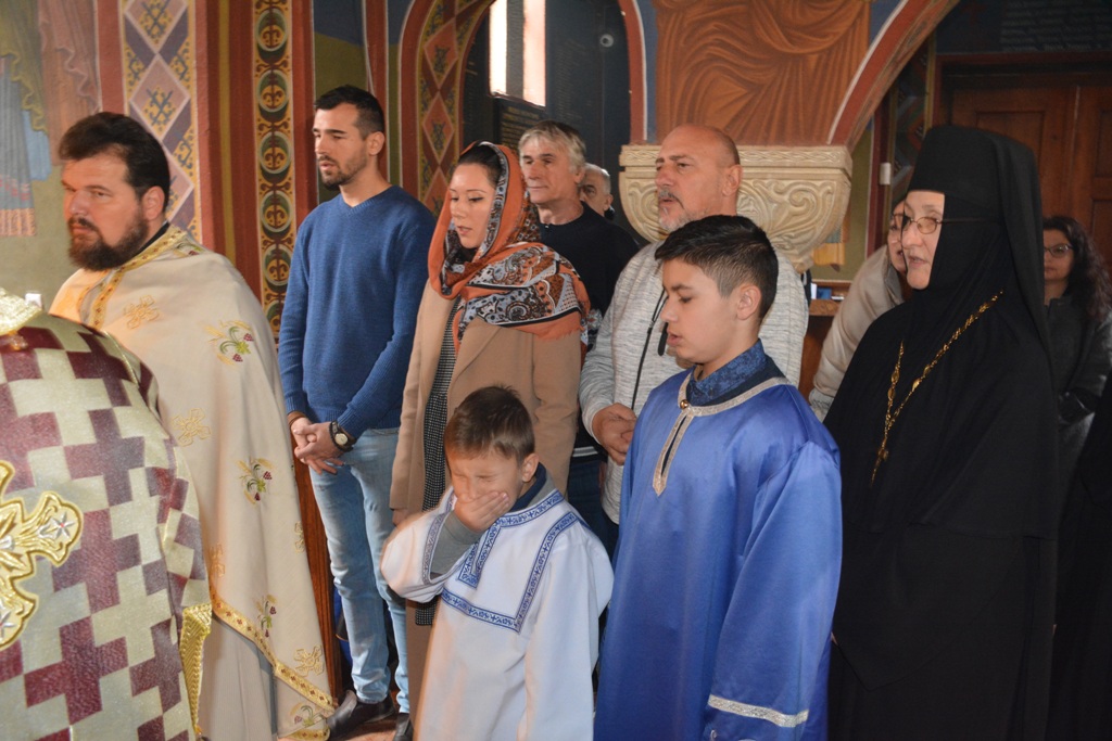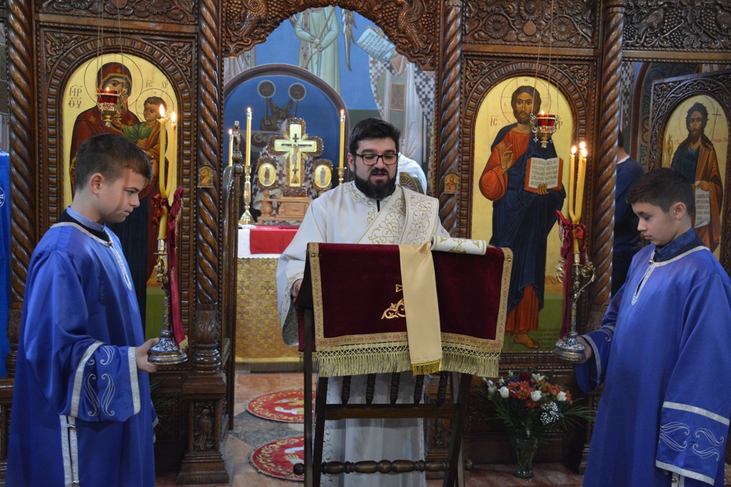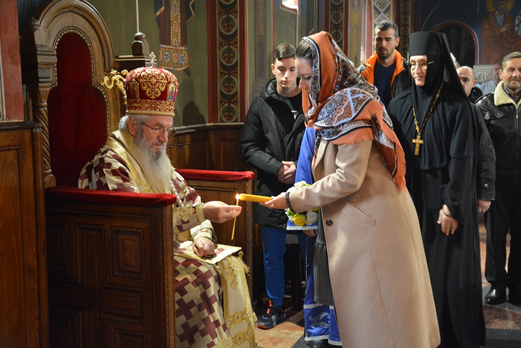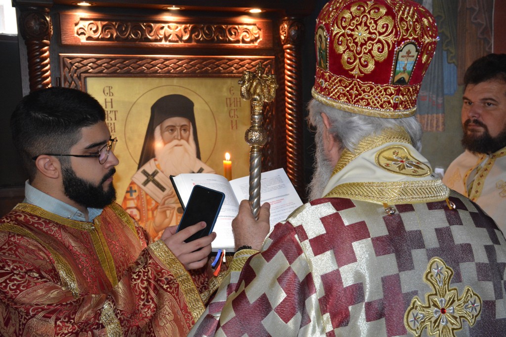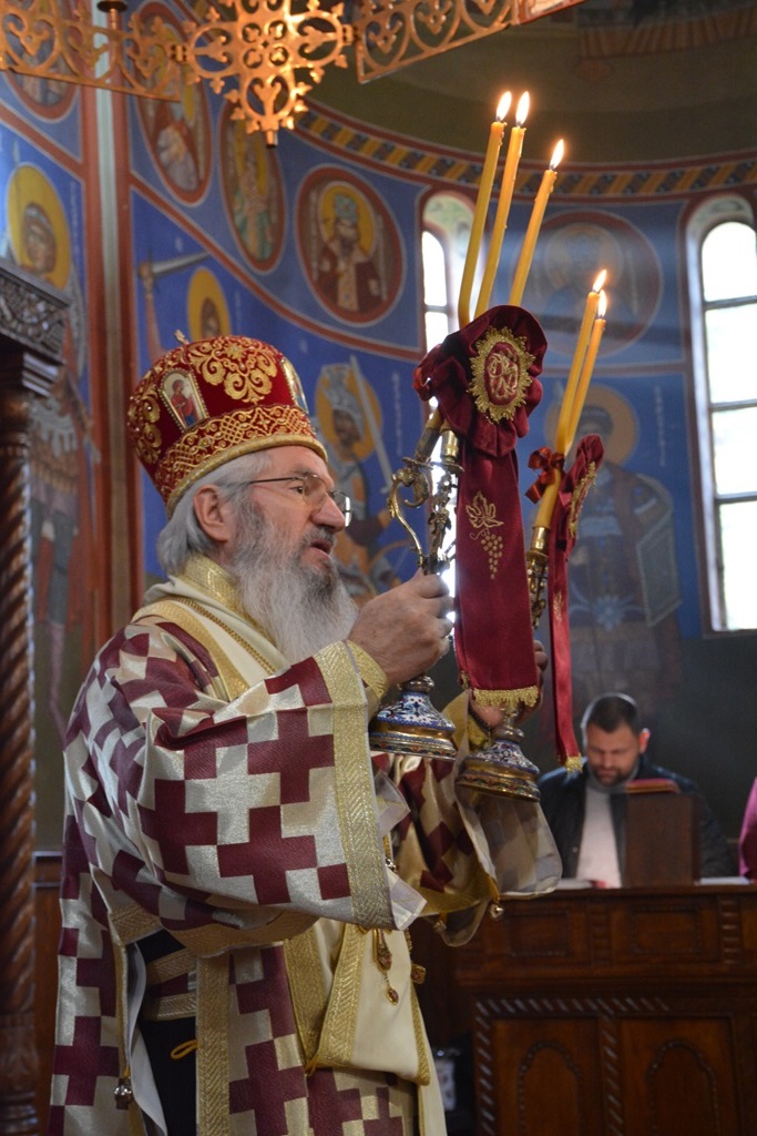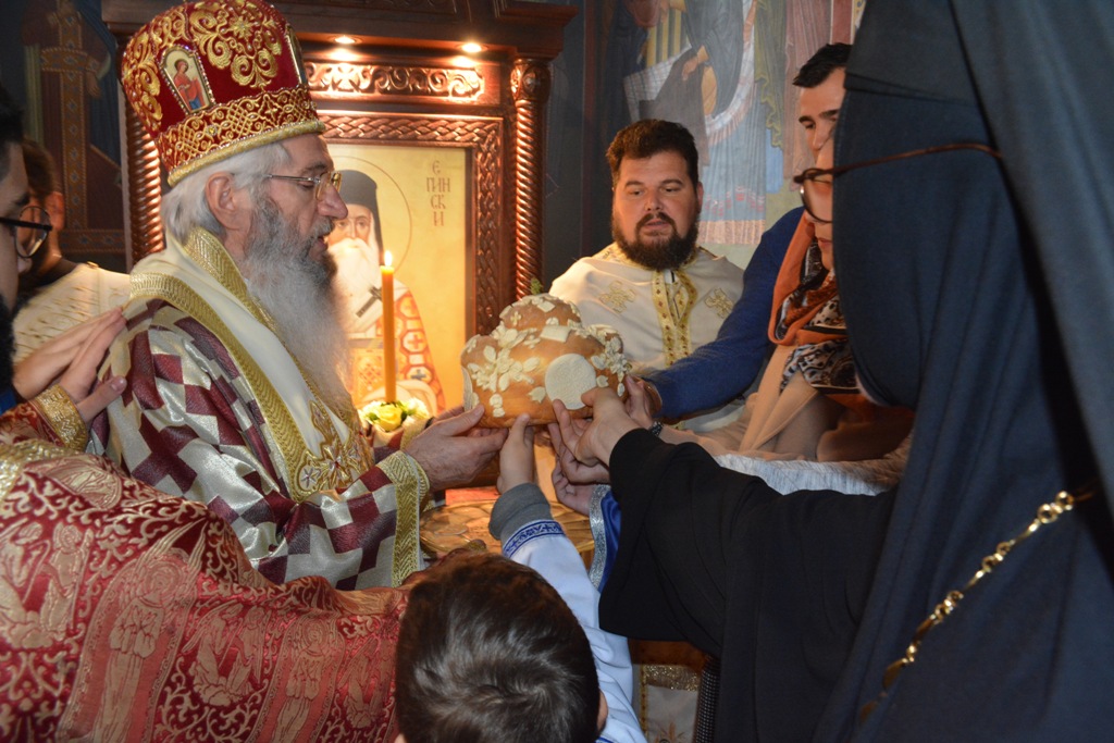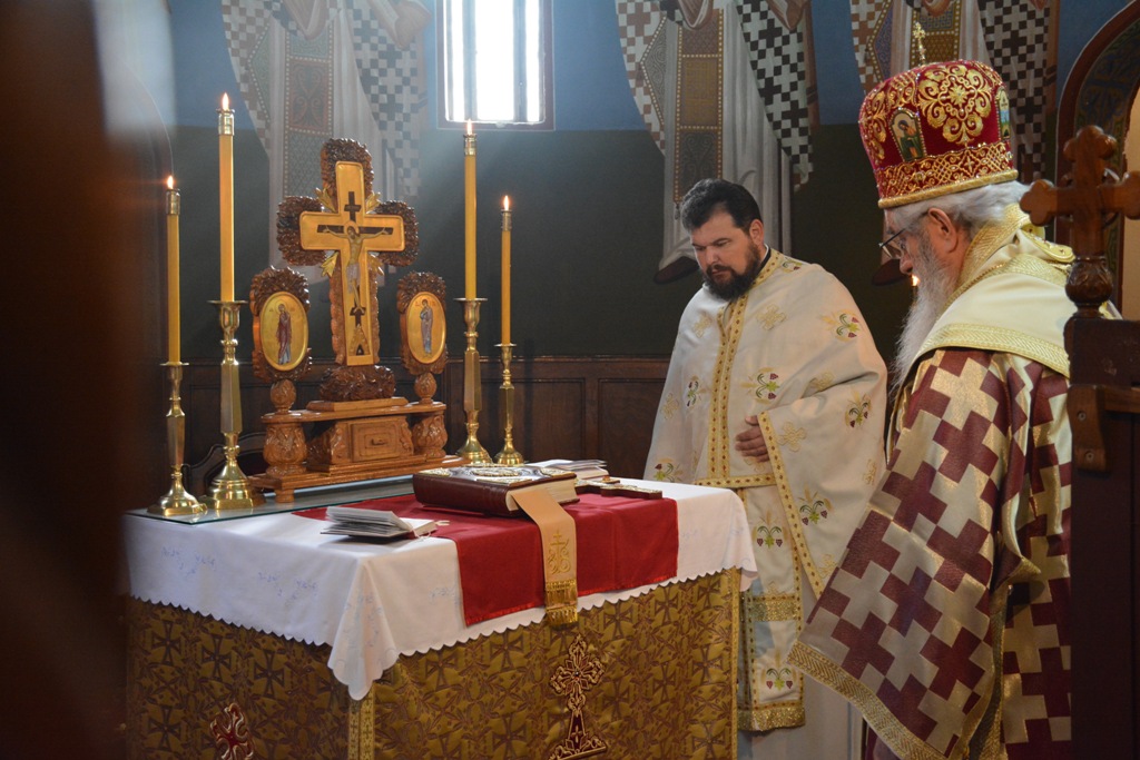 Епископу су саслуживали: протојереј Срђан Тешић и протођакон Иван Гашић.