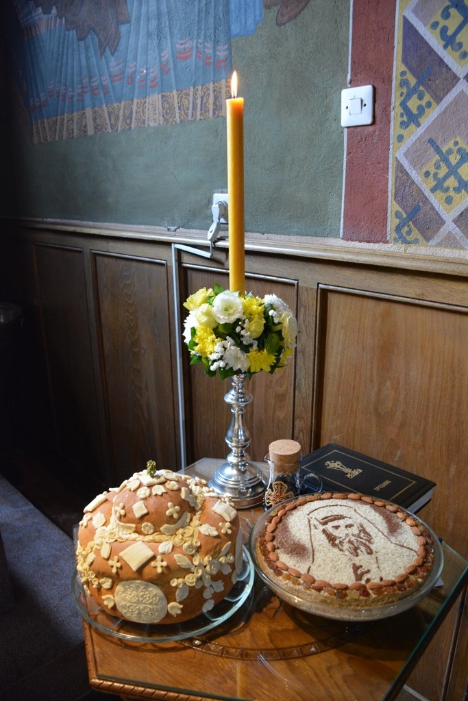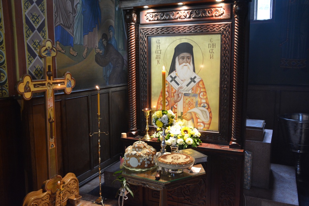 Након Свете Литургије, Епископ Јован је пререзао славски колач поводом данашњег празновања Светог Нектарија, који је припремила породица Глишовић из Крагујевца, а затим је уследила трпеза љубави уготовљена од стране данашњих славара и монаштва манастира, игуманије мати Анастасије и мати Јелисавете.
