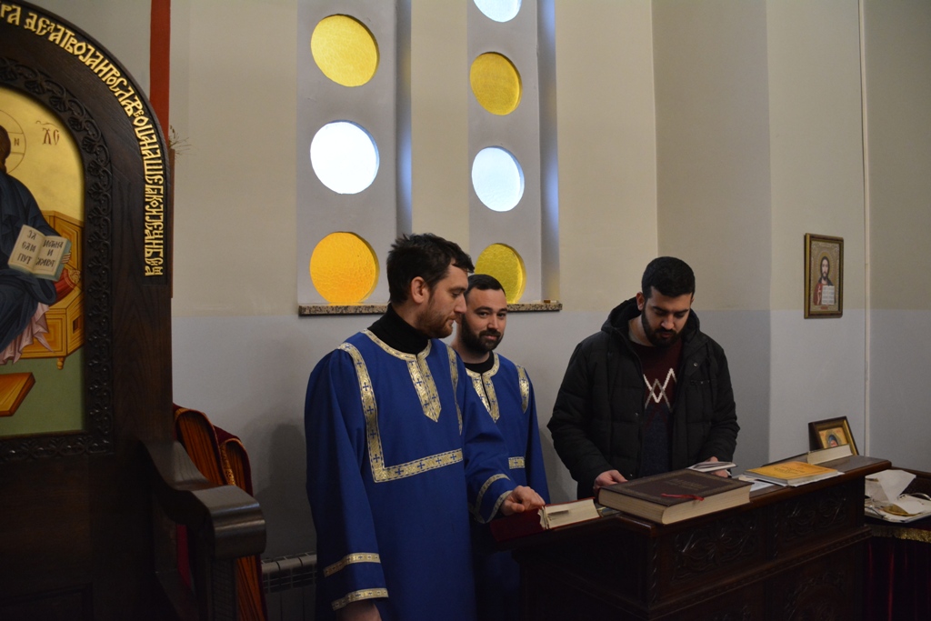 Саслуживали су му свештеници Саша Антонијевић и Милош Ђурић, и уважени ђакон Иван Гашић. Чтецирали су вероучитељи Марко Гаљак и Стефан Радовановић, као и студент теологије Александар Цалић.
