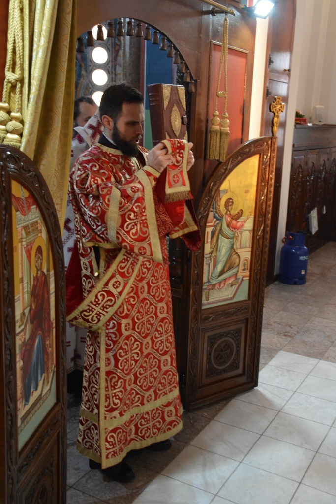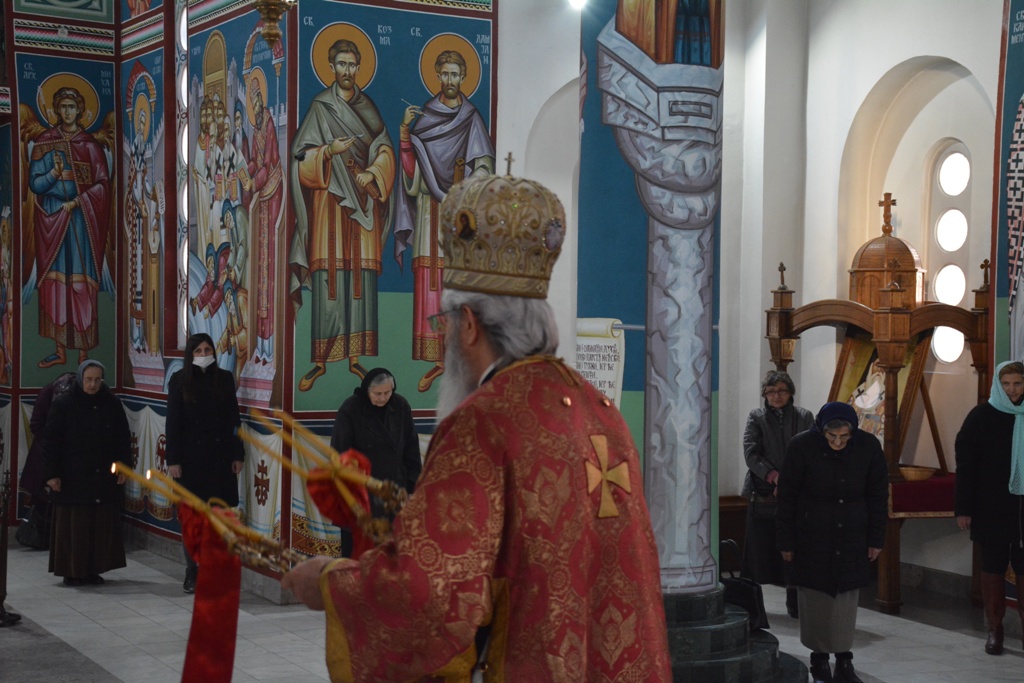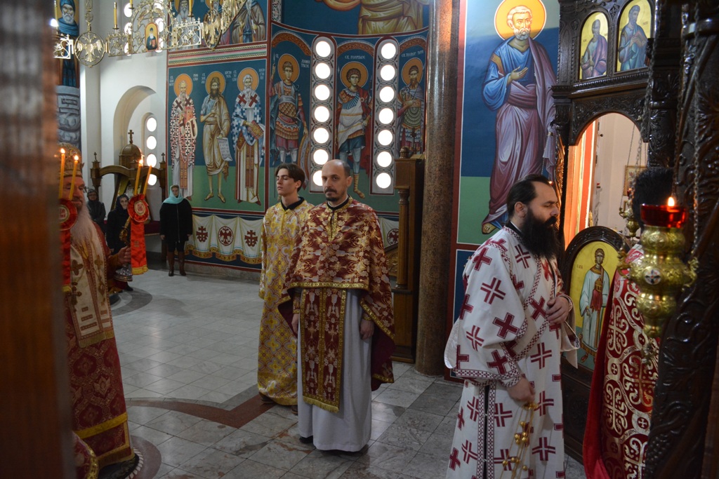 Преосвећеном су саслуживали: архијерејски намесник протојереј-ставрофор мр Рајко Стефановић, протонамесник Бранислав Матић, јерођакон Василије (Старовлах) и ђакон Александар Ђорђевић.