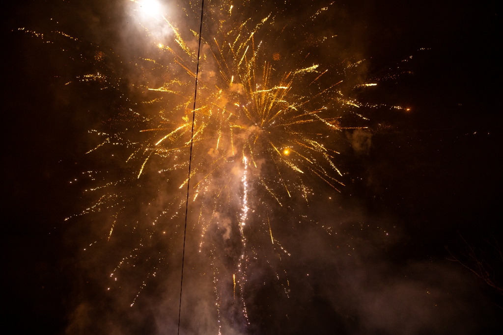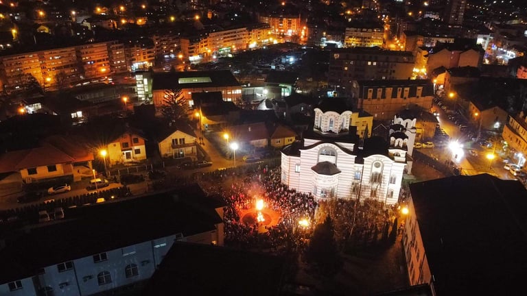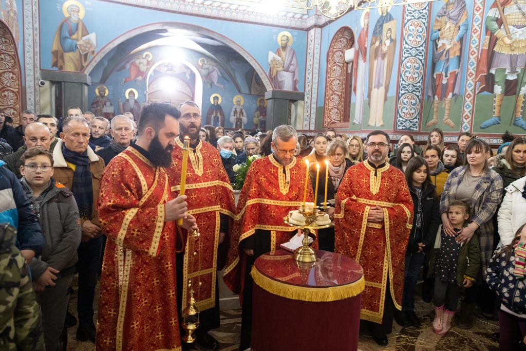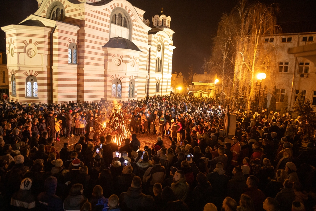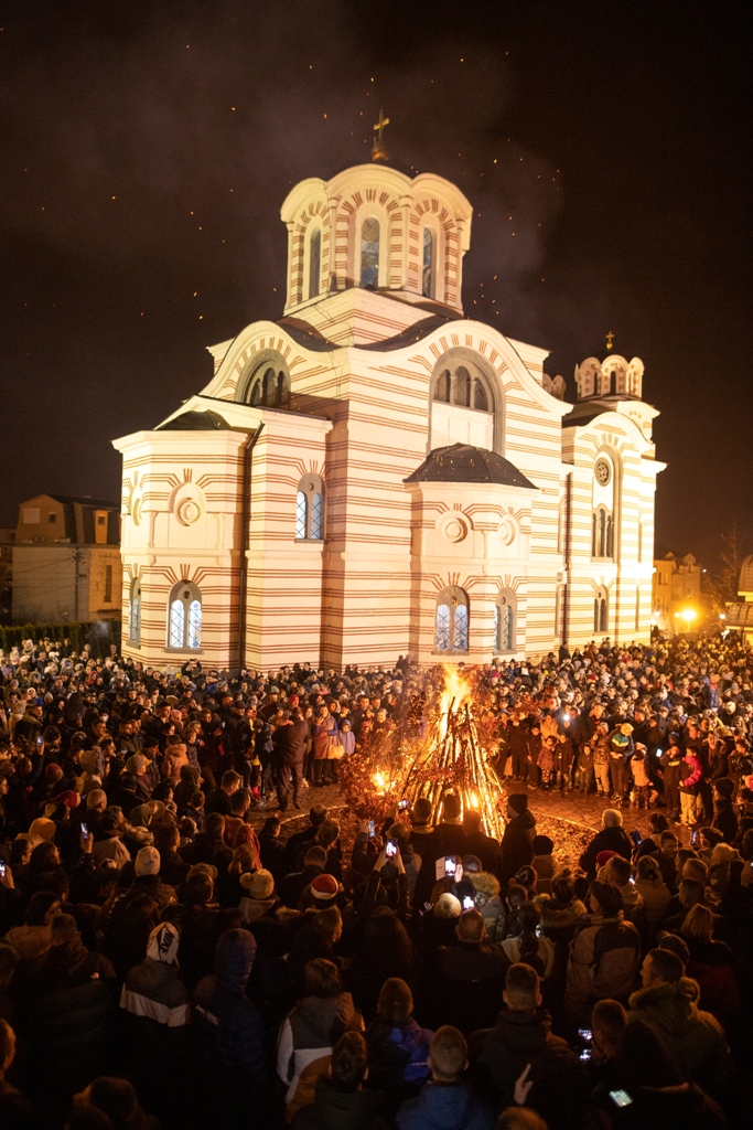 Након богослужења у порти младеновачког Храма обављено је ложење бадњака у присуству незапамћеног броја Младеновчана, а присутни су се окрепили на традиционалном послужењу.